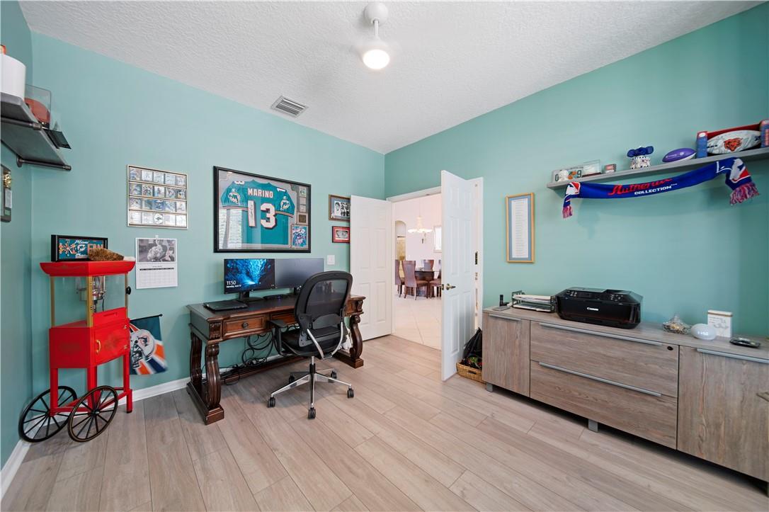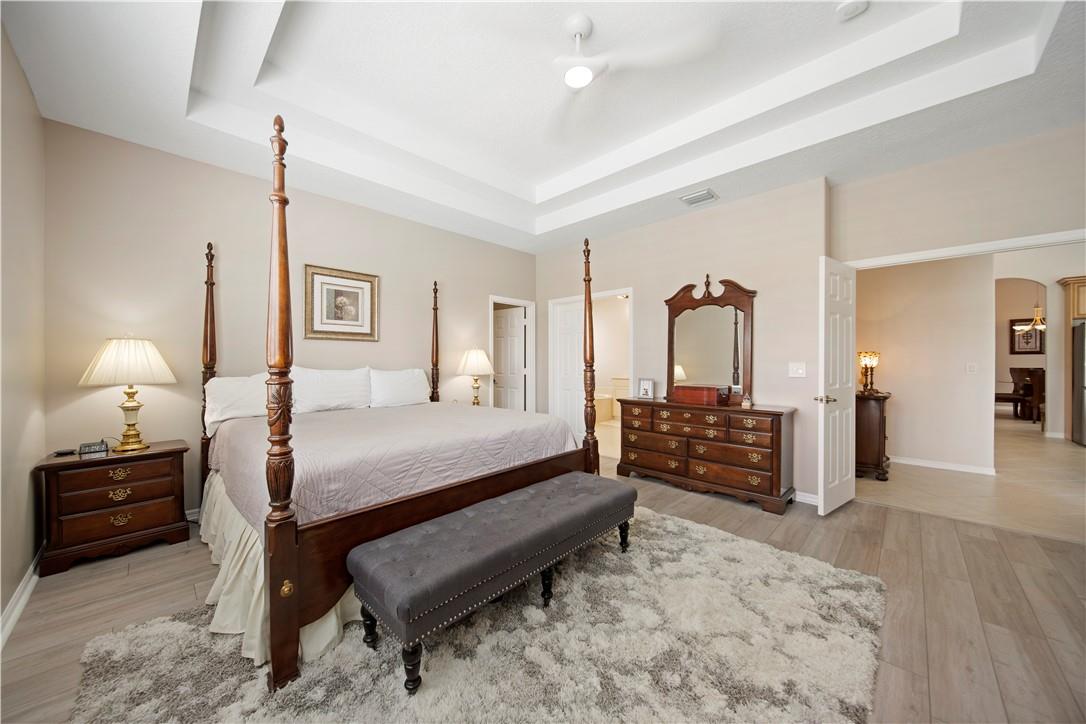 Stunning 3BD/3BA + Office in the exclusive Grand Reserve neighborhood! Guests will be impressed and you will have peace of mind with 24 hour guarded gate access. Your new open concept home has been meticulously cared for and well maintained with Plantation shutters, granite countertops, and NEW stainless steel appliances that adorn the kitchen. Enjoy the private heated pool, custom patio with travertine tile, and scenic waterview. There's even a large side yard with fencing. Access the community lake for kayaking in just steps. Features a 3-car garage with epoxy flooring, new water heater, and remote-controlled ceiling fans. Generator ready, smart home features include Nest smoke detectors, ecobee thermostat, Rainbird sprinkler system, and REME HALO air purification. Don't miss out!