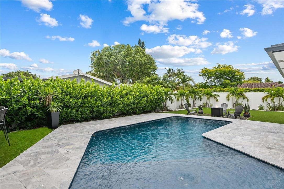 Welcome to your completely renovated, move in ready east Pompano Beach 4 bedroom home! Completely turn-key. Everything from the roof + impact windows, to the interiors, the back yard and the AC, Tankless Water Heater + Electrical have been DONE. The backyard is a dream with newly installed artificial grass for zero maintenance, new no-slip marble pool deck and refinished oversized pool. Screened in Patio overlooking pool. Modern/Transitional interiors are perfect for any taste. Corner Lot, 5 minutes to the beach, 15 min to downtown Fort Lauderdale and to Boca. Generates $350-450$/n on vacation rental websites with 80% occupancy
