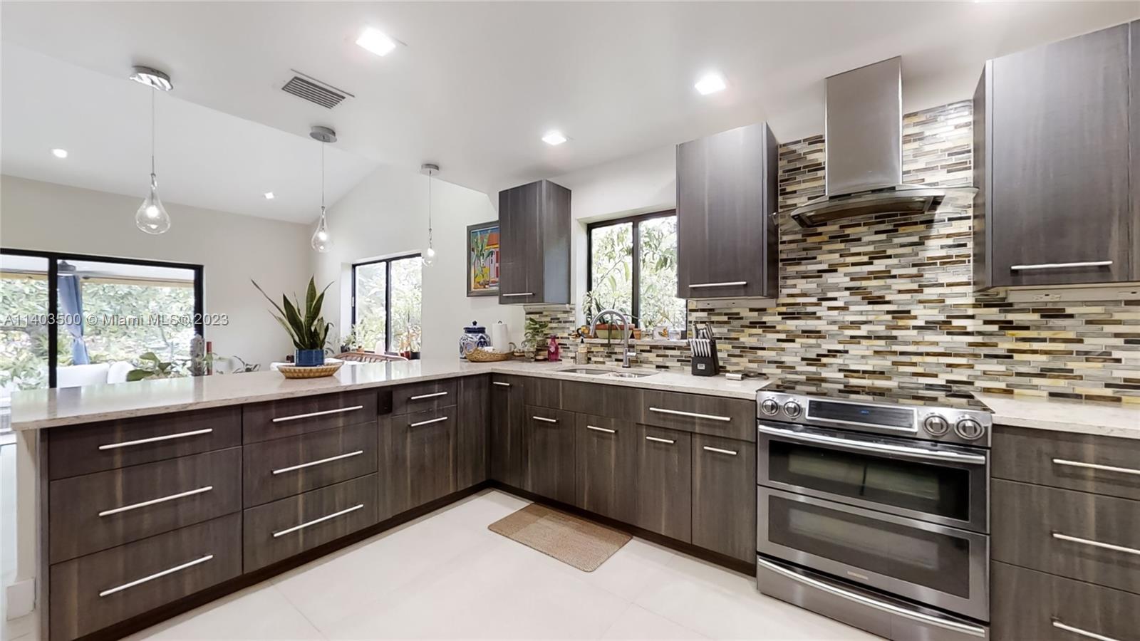 Stunning, Updated, Remodeled & Meticulously maintained 1-Story home in the prestigious Cooper City. 4 Bedrooms/ 2 Baths, Feng Shui designed home. Double lot, Interior completely remodeled in 2018. All new 3x3 Porcelain tile interior, Updated Kitchen, Updated Baths, 5 years old roof, Icyneen foam insolation, Hurricane impact garage door, Hurricane impact windows, doors & sliding doors, New driveway and walkways with Travertine 2x2 pavers on concrete, Open terrace with pool & garden view, updated pool, jacuzzi & deck, LED lights In/Outside, New AC unit Oct 2022, Designed side fence doors, Landscaping designed with native plants, tropical fruit trees, flowering plants with irrigation system, Styled back yard sitting areas. Perfect for family and entertaining Inside & Out!!Amazing Sunset Views