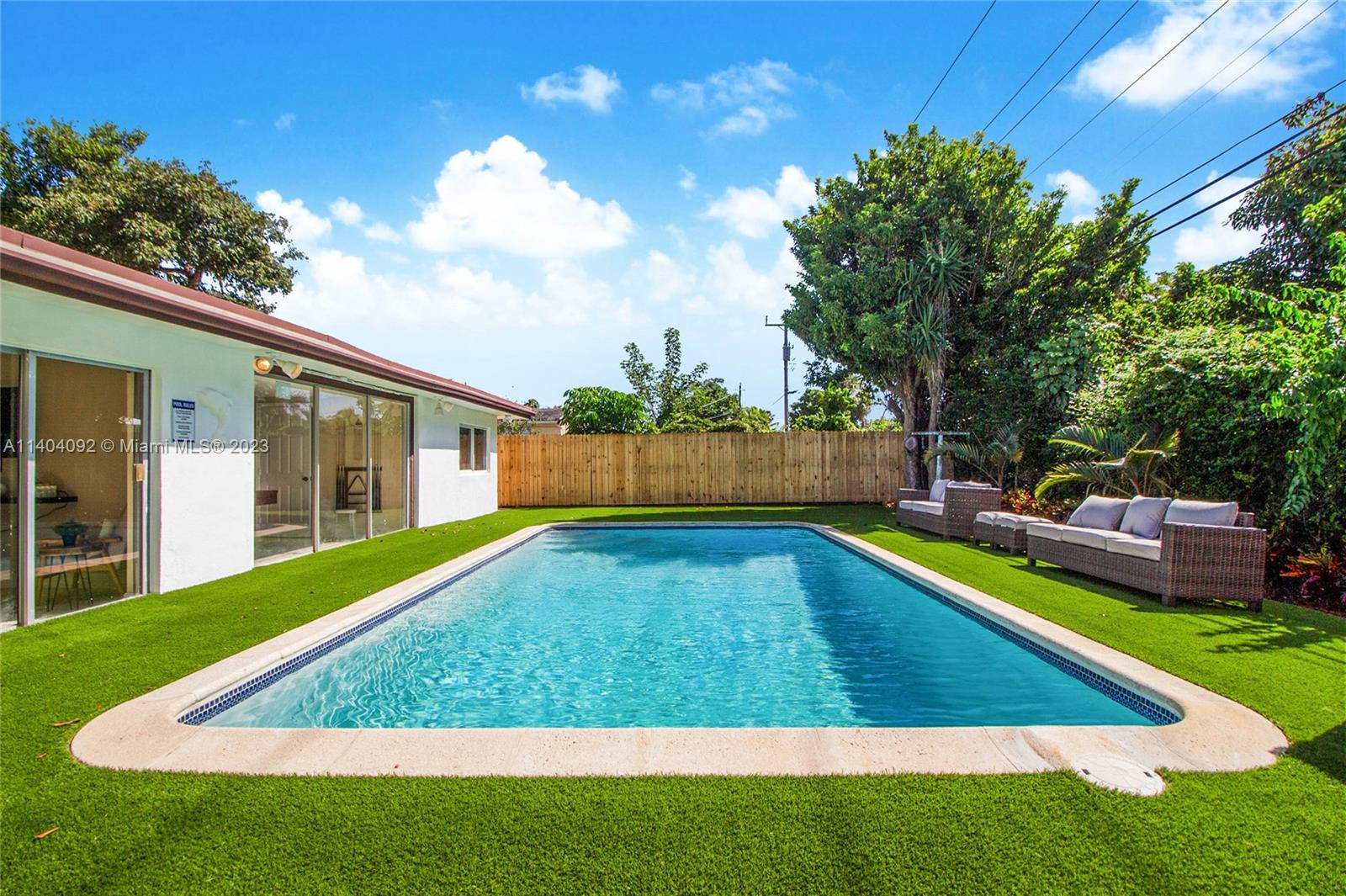 LUXURIOUS AND UPDATED, 4 BEDROOMS, 2 BATHROOMS, WITH POOL, INCLUDES IN-LAW-QUARTERS WITH BEDROOM AND SEATING AREA AND NEWLY CONSTRUCTED BATHROOM. NEW ROOF IN 2021. NEW KITCHEN CABINETS WITH GRANITE COUNTER TOPS AND STAINLESS STEEL APPLIANCES, CENTRAL A/C, IMPACT FRONT WINDOWS AND FRONT DOOR. THE EXPANSIVE BACKYARD INCLUDES A SPARKLING POOL AND VERDANT SURROUNDINGS. GREAT STRUCTURE AND BONES. CIRCULAR DRIVEWAY, FENCED. WONDERFUL OPPORTUNITY!