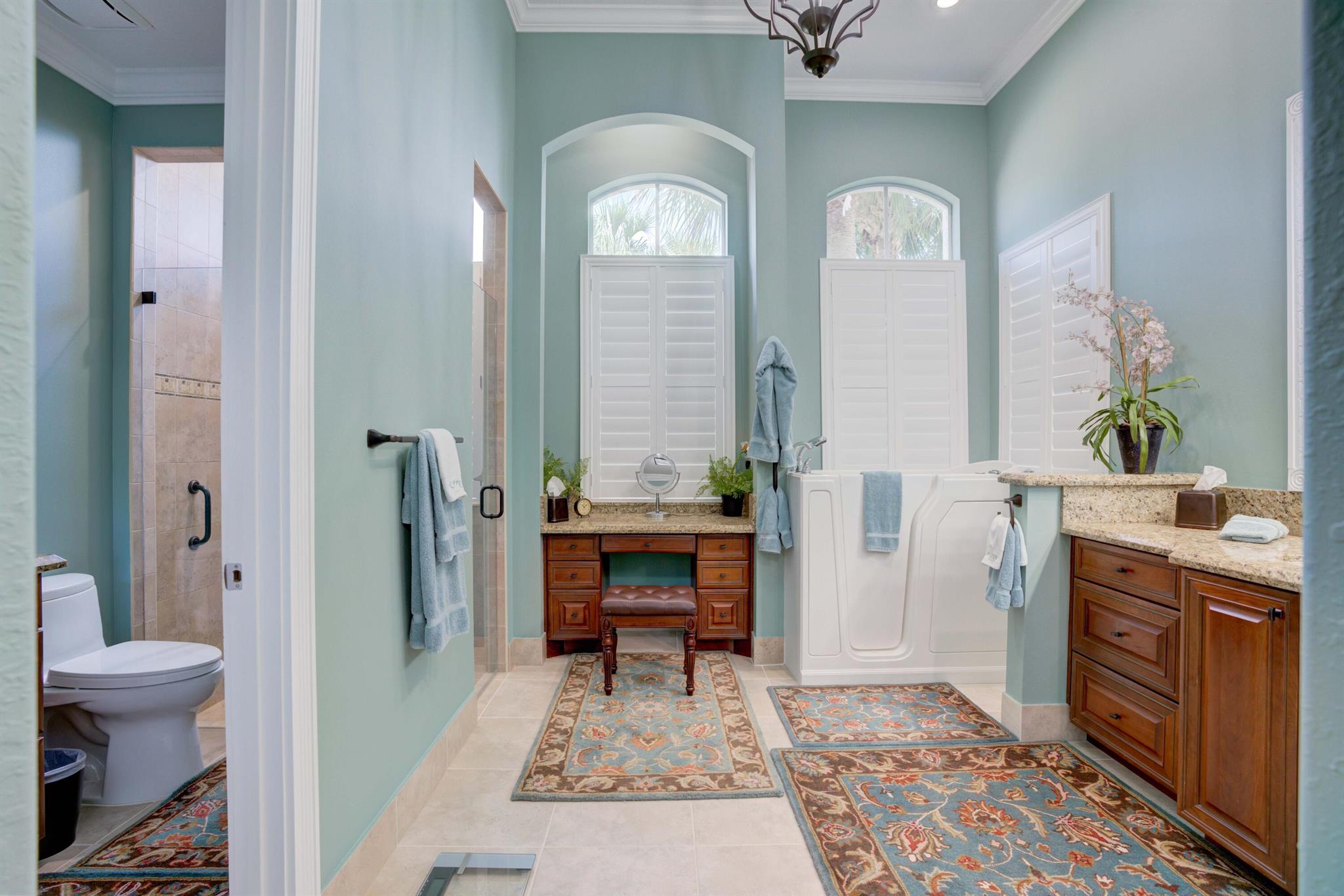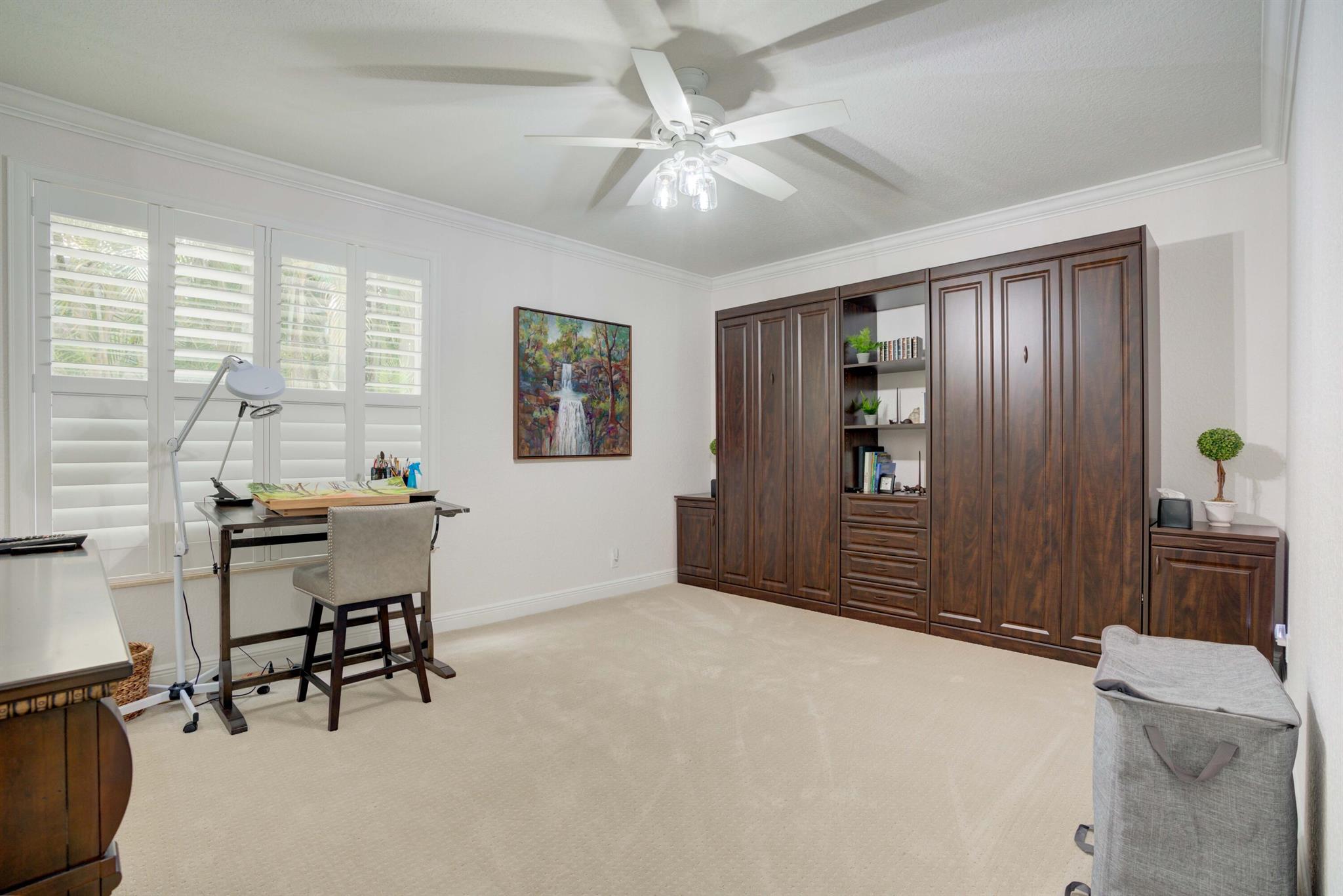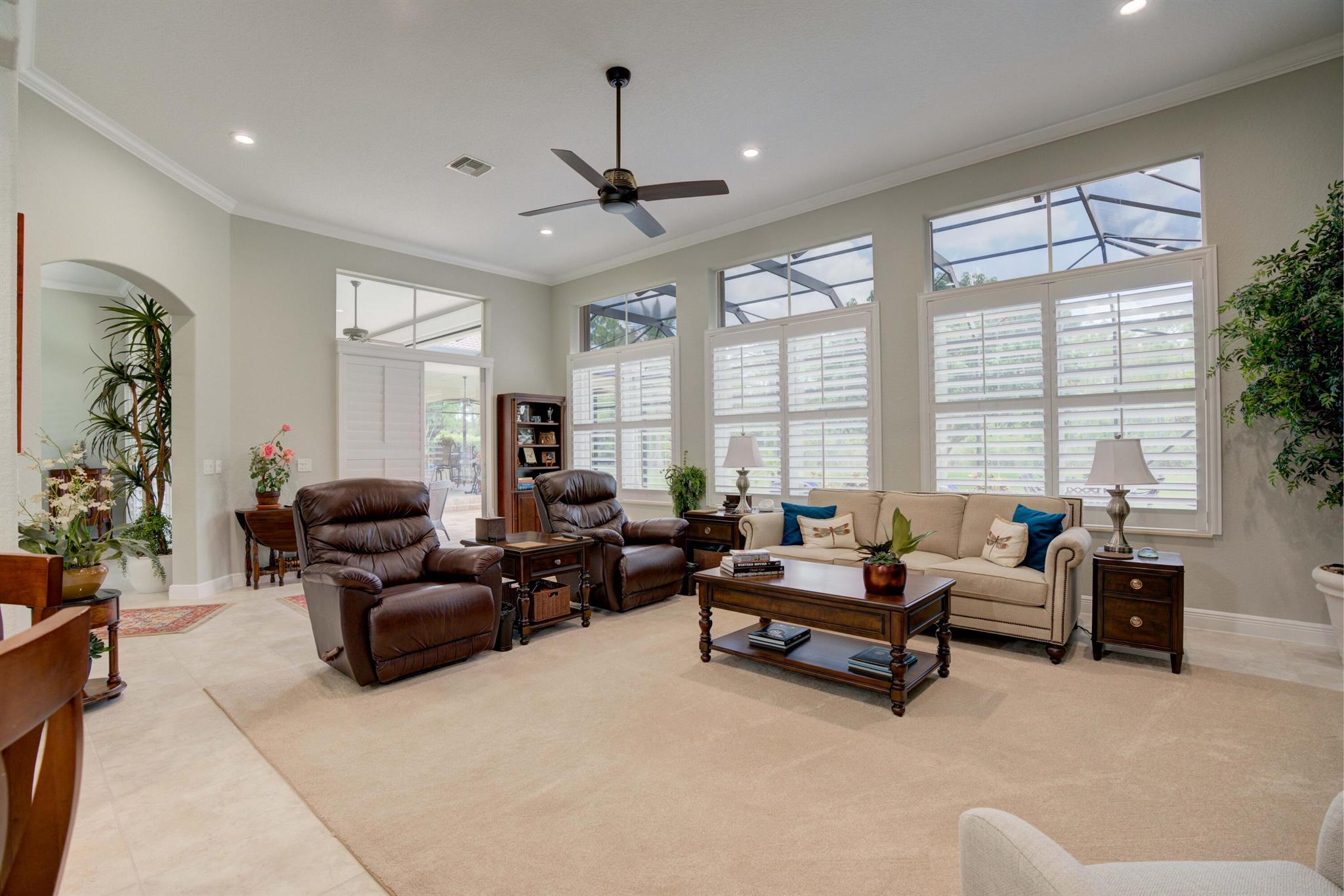 Move in Ready Prestine home in gated non mandatory golf course community. Highly sought immaculate 3bd, 3.5 bath, Plus office. New Roof, New whole house generator, 500 gallon Propane tank, New electric pool heater, New electric water Heater, New Hurricane Accordion Shutters, New Plantation Shutters, New Kitchen Appliances, NEW GAS Cooktop, Updated Irrigation System, New Custom Landscaping, New Lighting throughout, New Toilets & bathroom hardware, New fresh paint Ext. & Interior. New Outdoor built in grill. Enter through double doors into a grand foyer and formal living room with 12' ceilings, crown moulding. The gourmet kitchen is spacious , light & bright, featuring 42'' wood cabinets w/ all new appliances. Walk in pantry & separate butler's pantry. Large primary Suite w/walk in closets