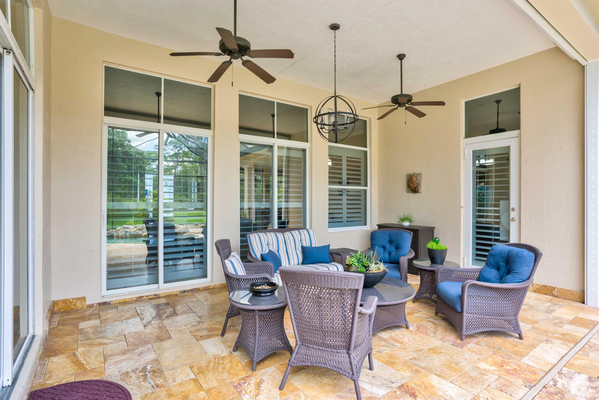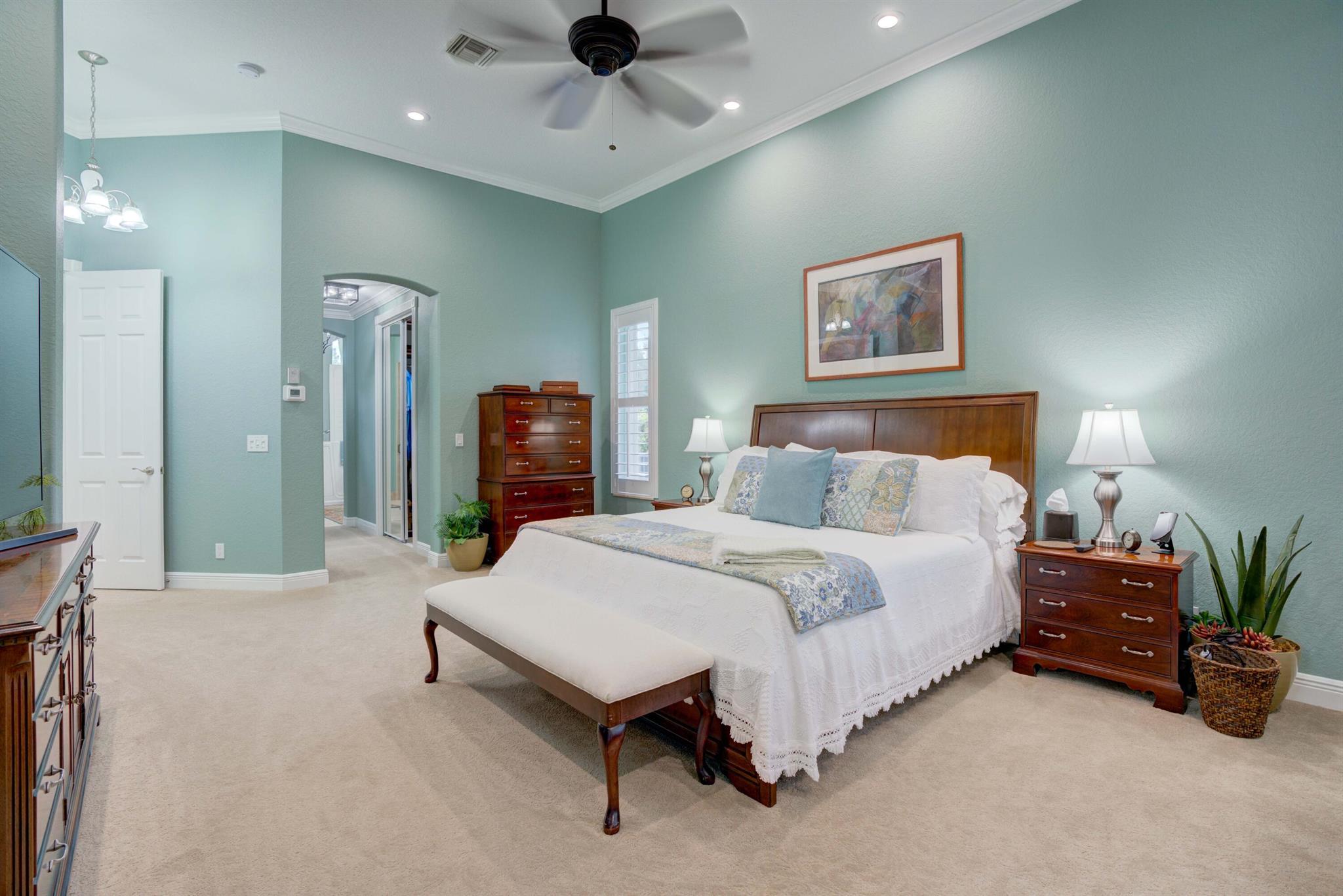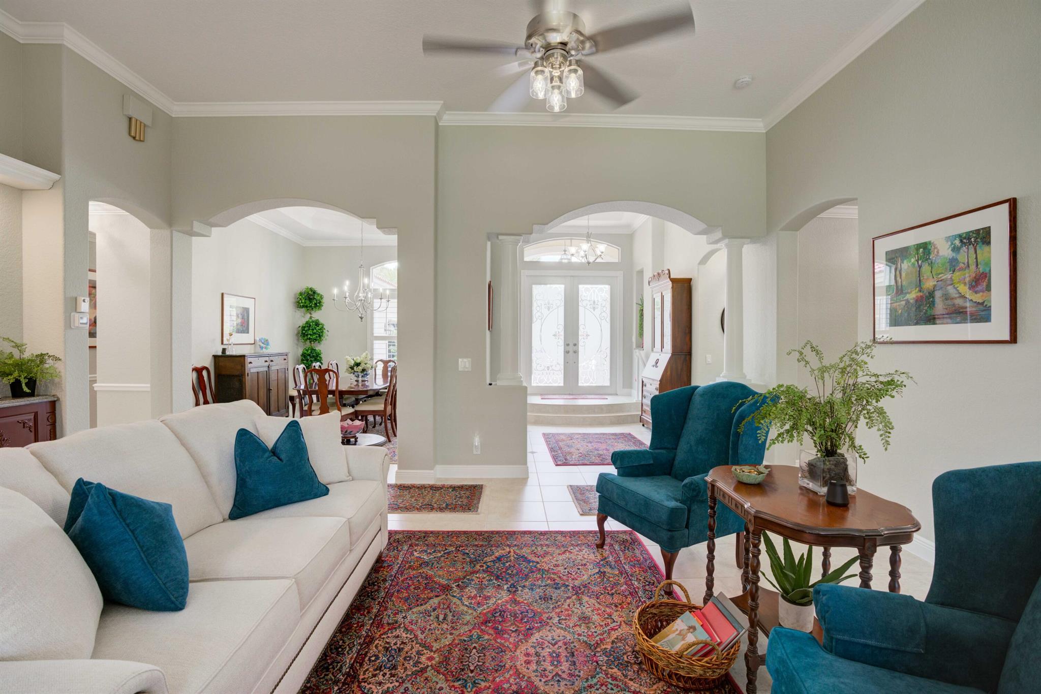 Move in Ready Prestine home in gated non mandatory golf course community. Highly sought immaculate 3bd, 3.5 bath, Plus office. New Roof, New whole house generator, 500 gallon Propane tank, New electric pool heater, New electric water Heater, New Hurricane Accordion Shutters, New Plantation Shutters, New Kitchen Appliances, NEW GAS Cooktop, Updated Irrigation System, New Custom Landscaping, New Lighting throughout, New Toilets & bathroom hardware, New fresh paint Ext. & Interior. New Outdoor built in grill. Enter through double doors into a grand foyer and formal living room with 12' ceilings, crown moulding. The gourmet kitchen is spacious , light & bright, featuring 42'' wood cabinets w/ all new appliances. Walk in pantry & separate butler's pantry. Large primary Suite w/walk in closets