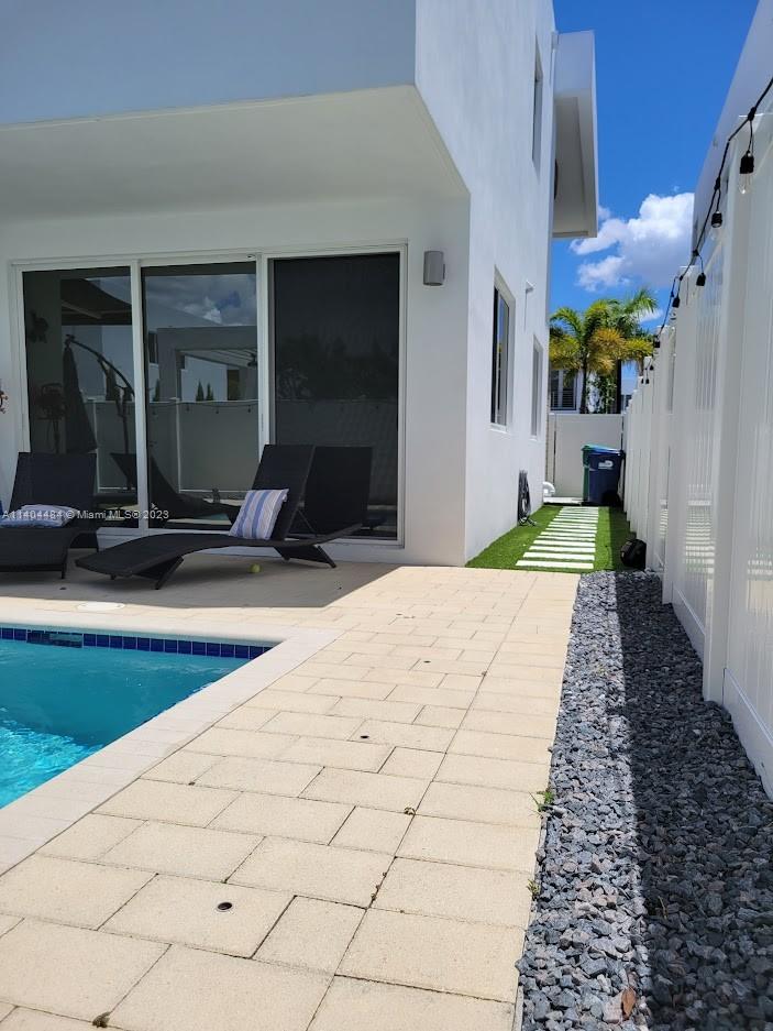 Amazing Single Family with 4 Bedrooms &4 Bathrooms in beautiful gated Community in Modern45 @ Doral. Open living space and large floor plans.2-story. Hurricane impact windows, quartz countertop in kitchen and bathrooms. Porcelain tile in floors. It is centrally located in Doral, minutes away from the Airport, major highways and the International and Dolphin Mall. This house has its own private pool!