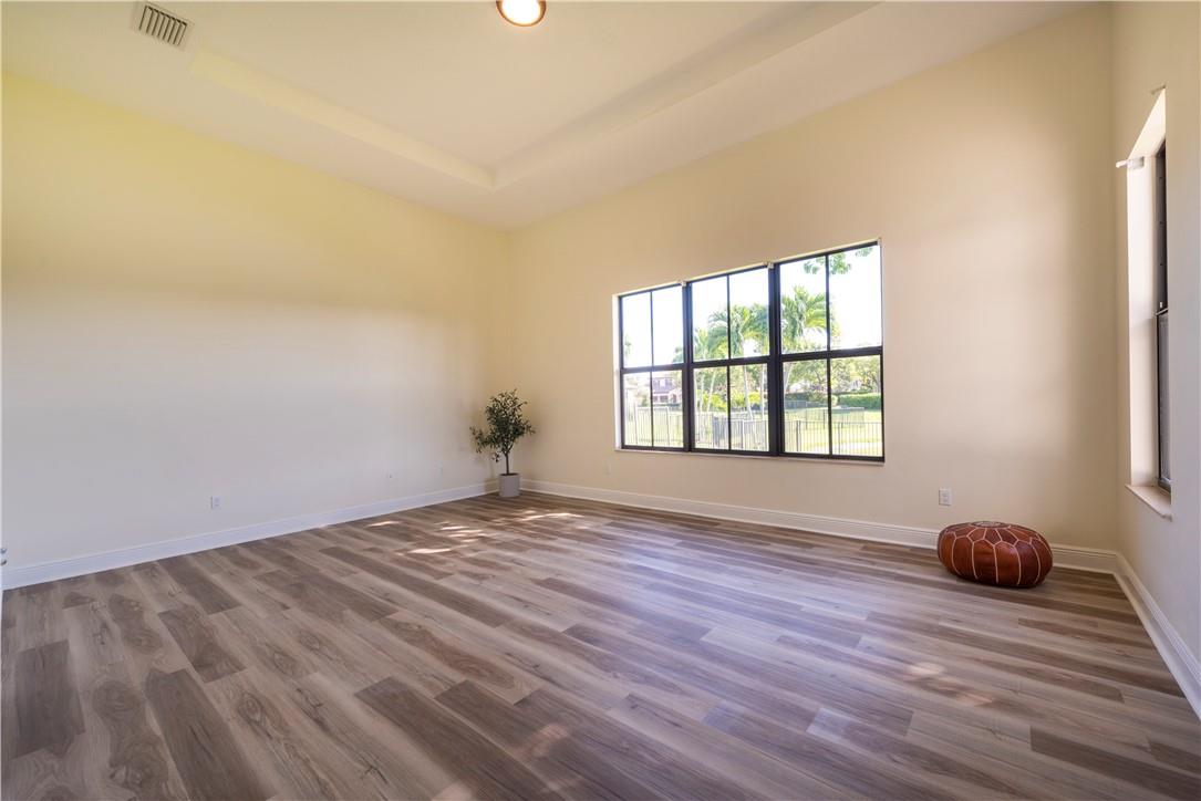 Perfect 1 story home located in the prestigious, gated community of Monterra. This is the Brisbane Model with 4 Bedrooms , 3 full Bathrooms complete with Hurricane Impact windows!!!Spacious 3 car garage where 1 could be converted to home office/ playroom. Brand New bedroom flooring in all bedrooms. Lakefront View completely fenced in with lots of space for a pool. The Monterra community is family friendly neighborhood featuring a 10,000 square foot clubhouse including tennis and basketball court, playgrounds, fitness center, large resort style pool, kiddie pool, BBQ area and patio area perfect for kids as well as dog park. The community is surrounded by beautiful lakes and nature. Walking distance to houses of worship and zoned for A+ school Embassy Creek Elementary .