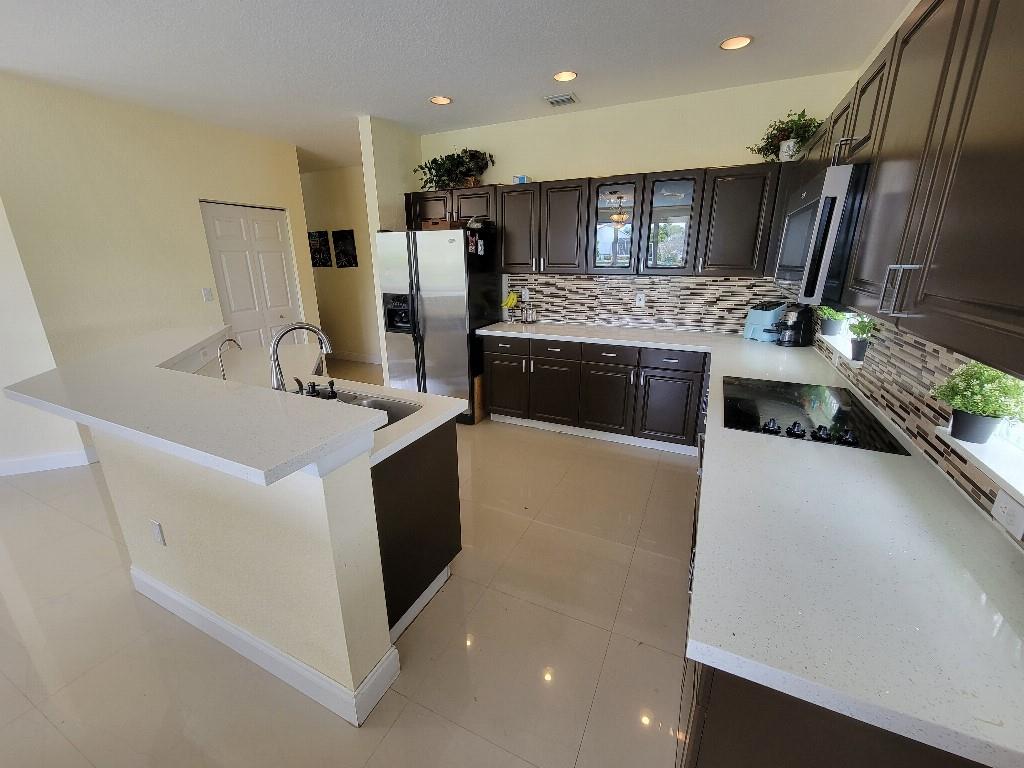 Renovated to perfection! 5/3/3 waterfront, pool home in the sought after community of The Island. This house features: 1st floor bed/bath, updated kitchen with quartz counter-top, SS appliances, new tiles on 1st floor, 2nd floor having new laminates, all bathrooms updated with master bathroom having rain shower, walk in closets, new AC, new sprinkler system, Ring security doorbell, recessed lighting, newly resurfaced pool and pool deck, accordion shutters, and full home Water Filtration System included. Cash offers welcome.