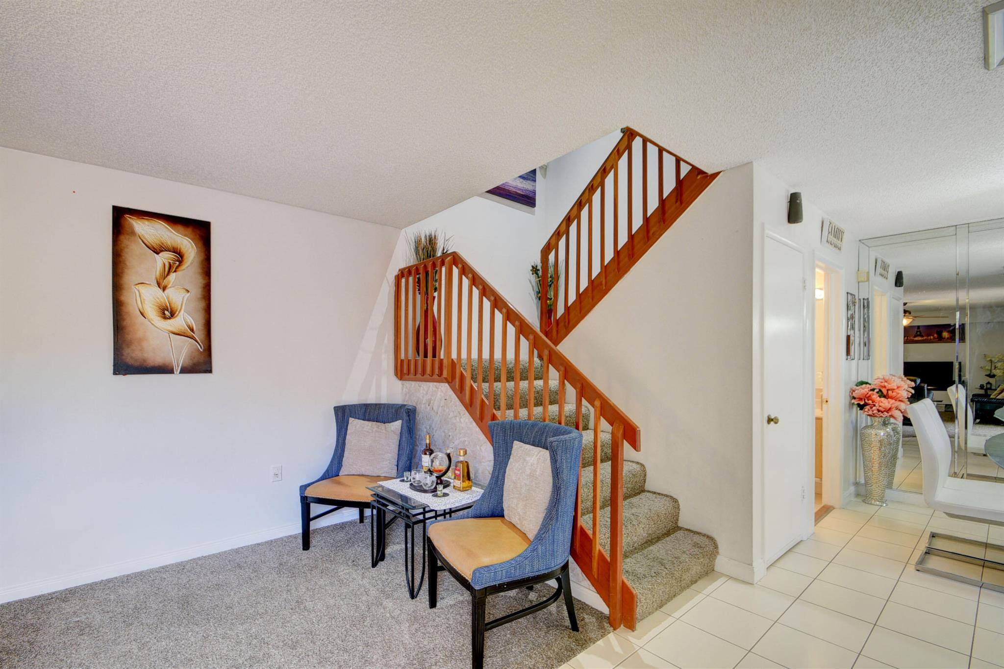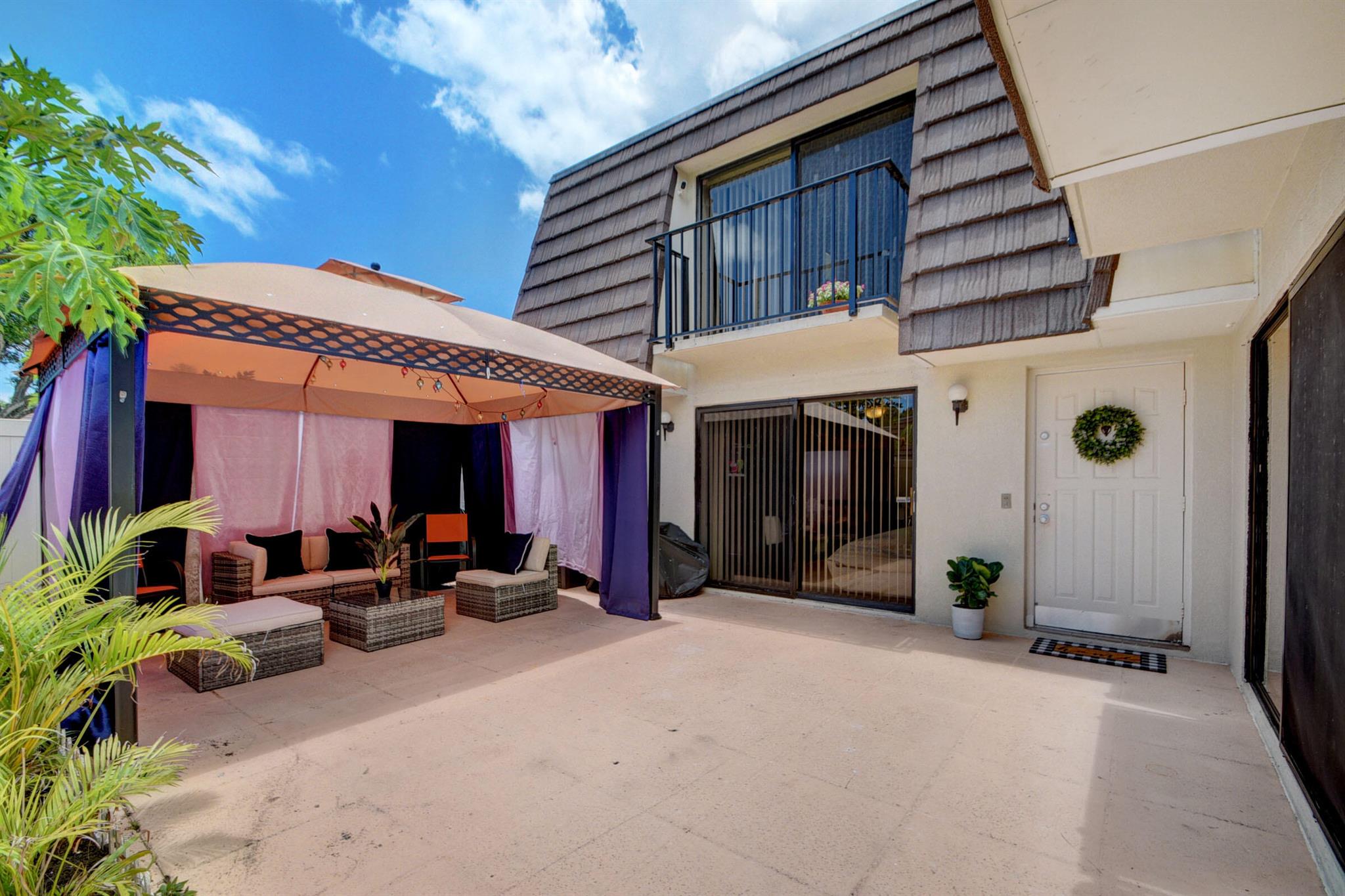 Welcome Home! Very desirable & spacious 2-Bedroom,2.5-Bath Townhouse in prime location:solid concrete construction community by DiVosta.NEW roof (2023), new fence (2022), brand new stove & microwave, refrigerator & dishwasher (2019), washer & dryer (2021), with private fenced patio, 2-assigned parking spots, & half bath on first floor & central vacuum. Most rooms freshly painted. Large sliding glass doors in living area & kitchen open onto the private patio. Each bedroom has its own en-suite bathroom and balcony. HOA includes basic cable, water, roof & building insurance,no special assessments,no rental restrictions,pets ok (<30lbs). This unit is located right across from community pool and within walking distance to tennis courts, walking trails and more.
