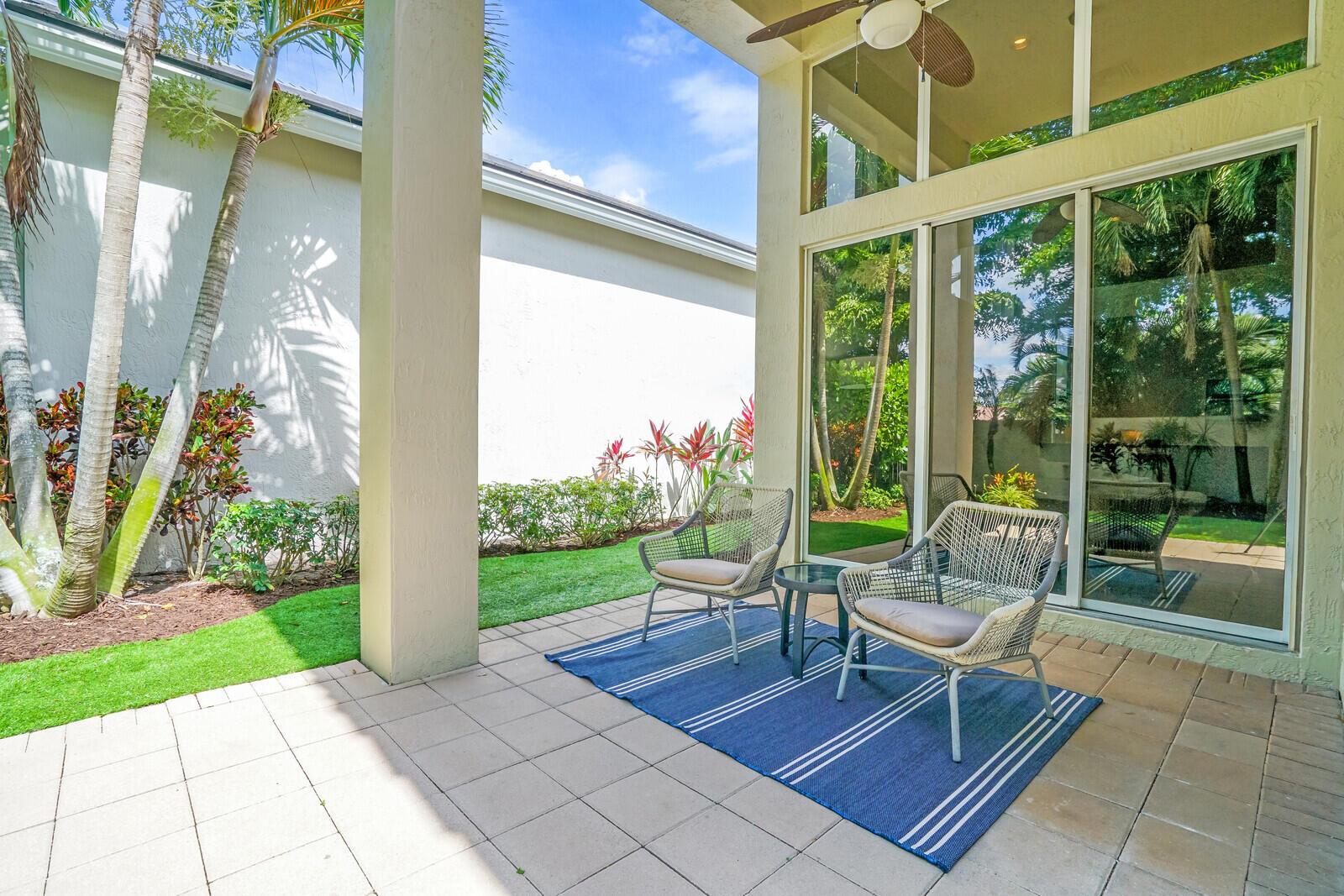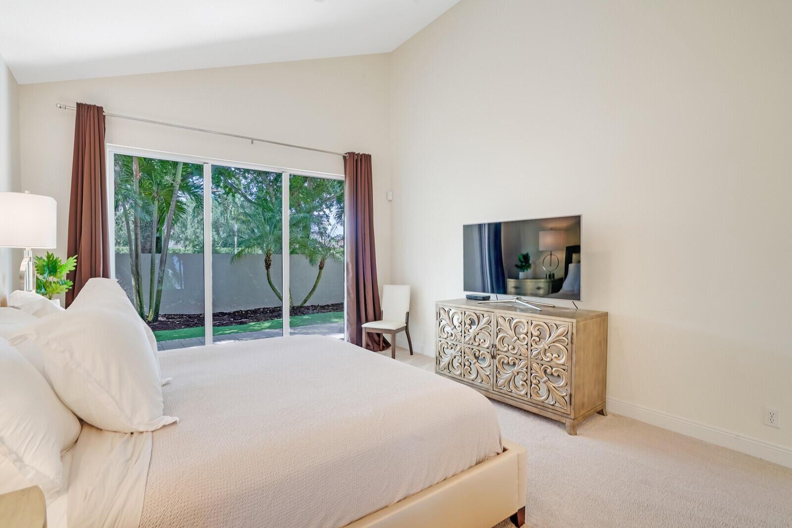 Bright and spacious 3 bedr 3 bath single story in beautiful, amenity filled Woodfield Country Club. This home greets you with high ceilings and walls of windows for fantastic light. The kitchen has white cabinetry and stainless steel appliances, an eat-in dining area, granite counters with a tiled backsplash and a raised bar style seating that opens into the living room. Two spacious living areas and a dining area provide great flowing versatile space for entertainment. Three bedrooms with no shared walls, their own en-suite bathrooms and can fit king size bed sets. The primary suite includes a dual entry closet and a spacious en suite with separate walk in shower and large soaking tub. Covered patio with turf in the backyard and side yard. HOA pool redone in 2022 - 4 minute walk.