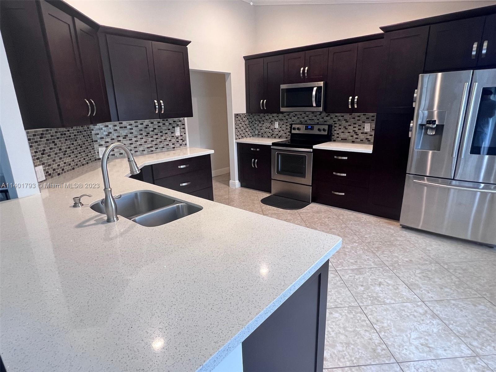 ABSOLUTELY BEAUTIFUL & MOVE-IN READY 3/2 CORNER LOT IN NOB HILL PALMS. Updated Kitchen has a grandiose quartz counter top, counter seating, wood cabinets & with new stainless steel appliances. Large master bedroom, with walk-in closet, master bath that has large shower, vanity space & built-in cabinet. Open floor living/dining room area. Crown molding, tile, plantation shutters. Hurricane impact windows, doors and garage door. Roof is approximate 4 years old. The pool is surrounded by lush landscaping for privacy. Great schools, nearby shopping, highway and parks.