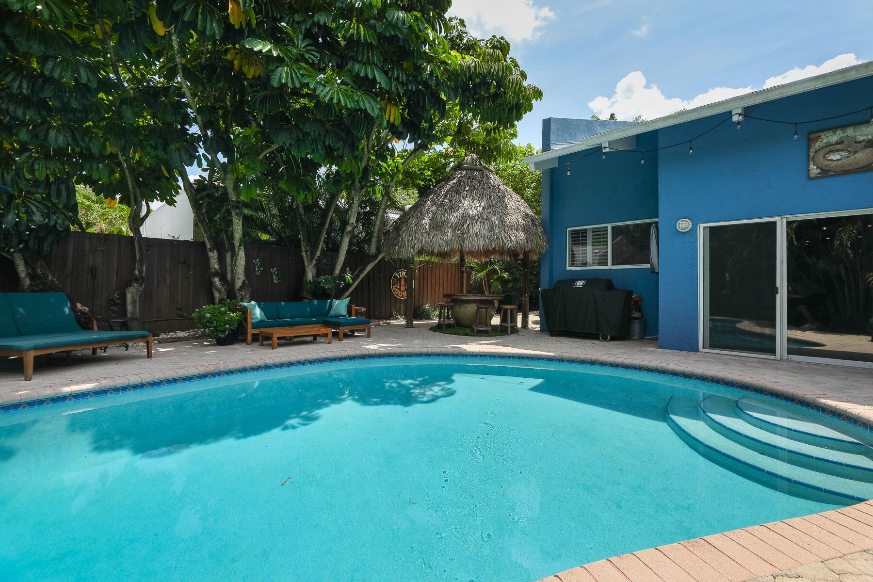 This 2bd/2ba townhome is on the original developer lot, offering exclusivity & privacy, boasting a brand-new roof, new paint, a spacious parking area with newly installed brick pavers & an insulated bamboo woodgrain ceiling. Step outside into the backyard oasis & discover a gorgeous tiki hut & sparkling heated pool, perfect for hosting a summer barbecue or simply unwinding after a long day in solitude. No HOA or rental restrictions, Within walking distance to Las Olas blvd, Ft Lauderdale beach & downtown. Just a short 10-minute drive to Fort Lauderdale Airport, 2 minutes to Brightline. This is truly a unique opportunity to enter the prestigious Victoria Park neighborhood at a relatively low price point, without sacrificing privacy, outdoor living space or features like a private pool.