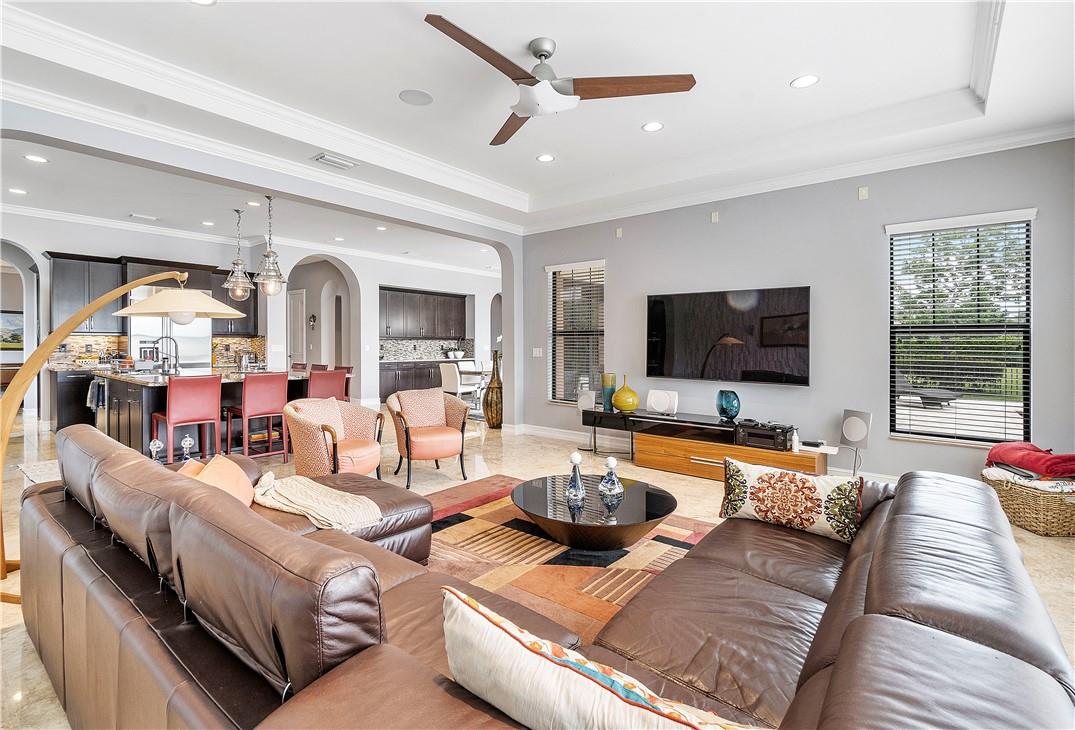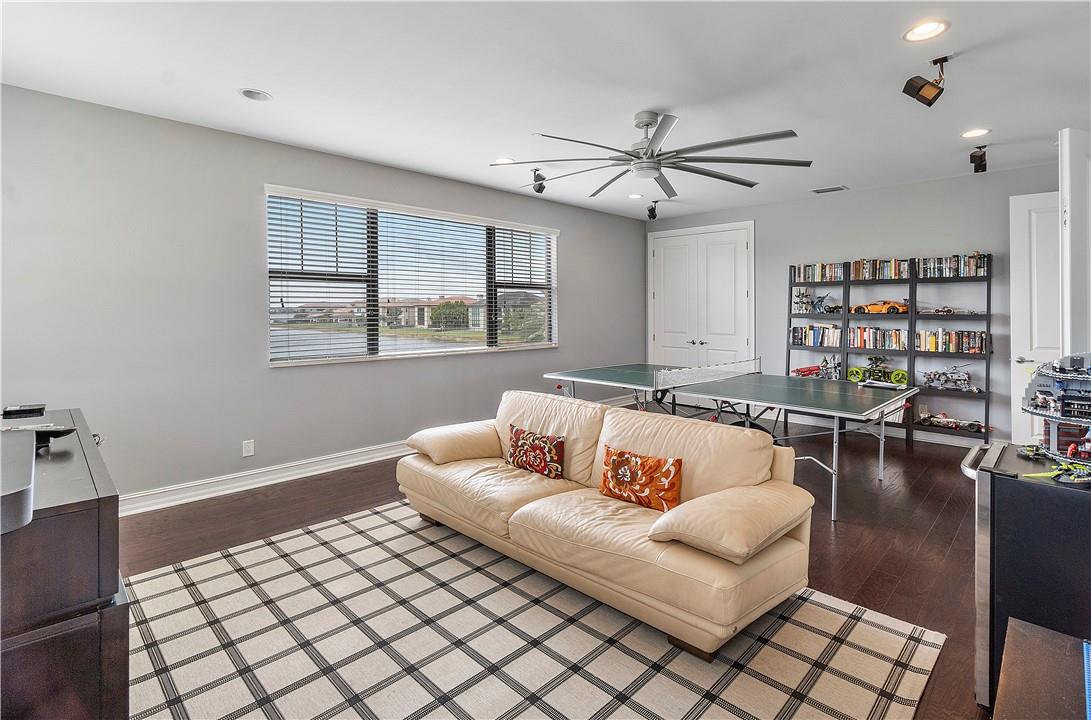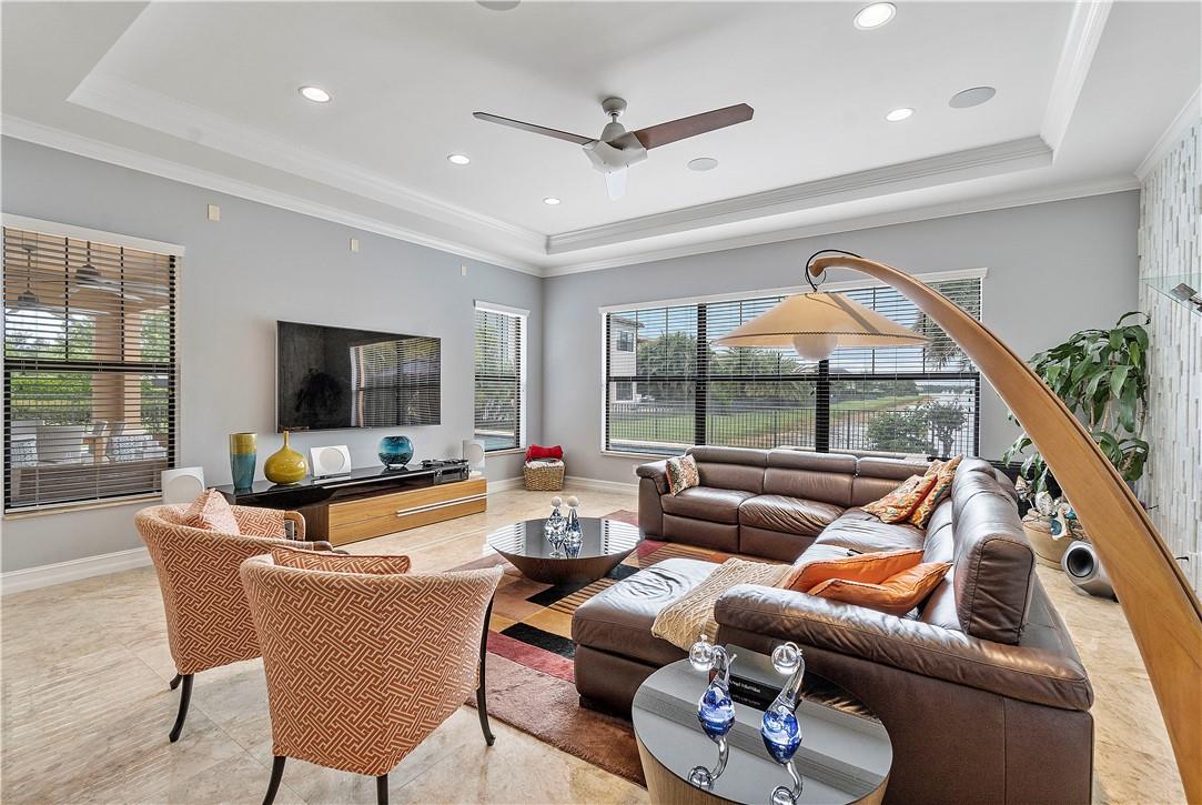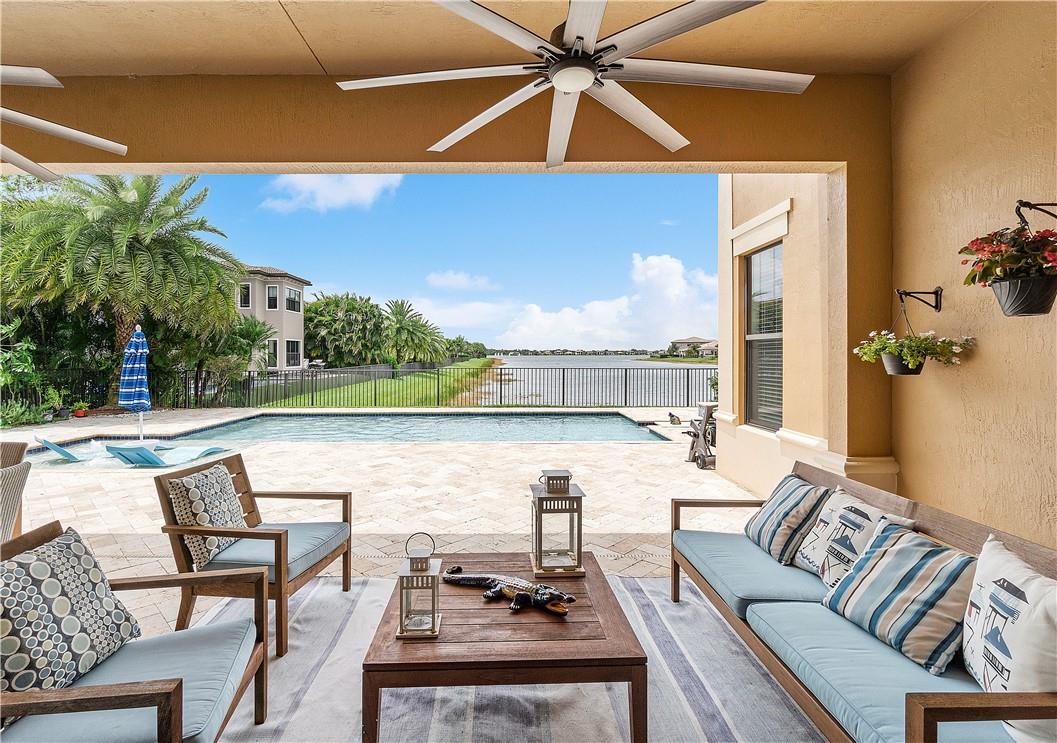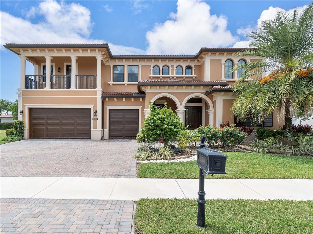 Stunning & spacious 6 bed+office+bonus room, 4.5 bath Barrington model w/3 car garage, 1/2 acre corner yard, pool w/spa & spectacular long lake views! This contemporary masterpiece w/ large living areas has over 5300 sq ft. Upgraded & open Kitchen w/ stainless range hood, gas stovetop, oversize fridge, double oven, large center Island & walk in pantry. Custom built-ins in dining room. Upstairs Master Suite w/2 Custom built in walk in closets w/ sitting area. Wood staircase. Marble & wood floors, upgraded fixtures, fans & window treatments plus impact glass throughout. Must see to believe this amazing home w/ volume ceilings, crown moulding, natural gas & fenced backyard, Maintenance includes lawn care. Enjoy amenities including resort pool, clubhouse, gym, tennis & more!