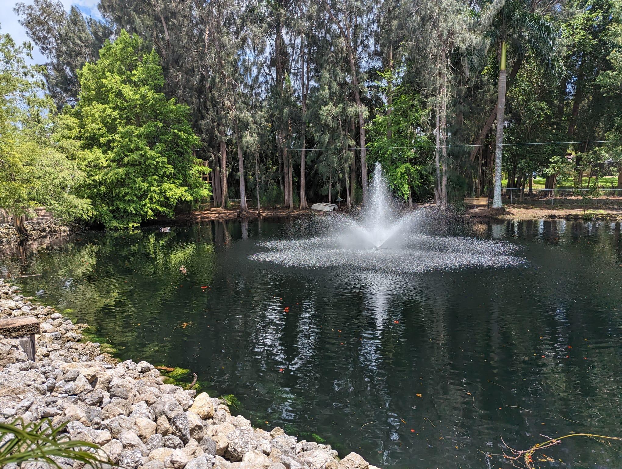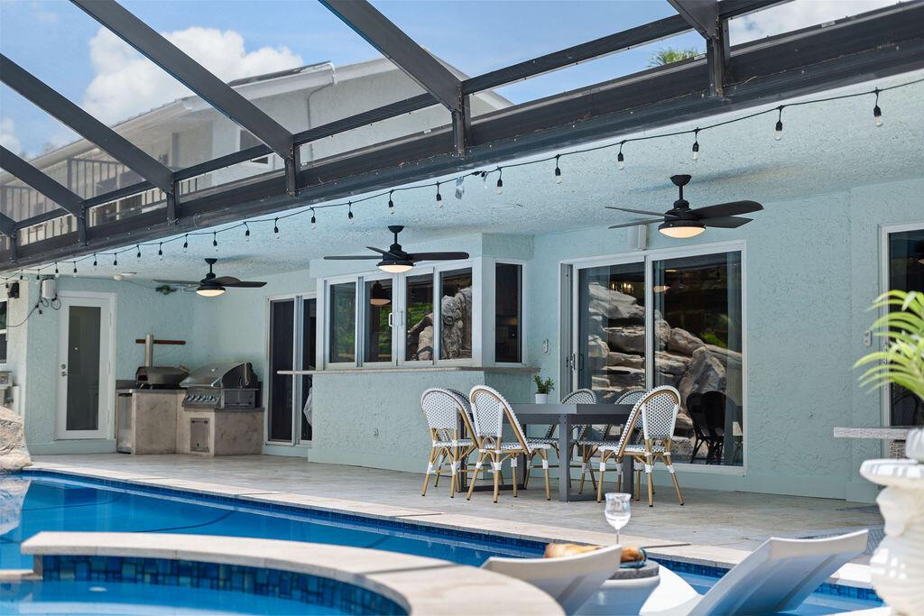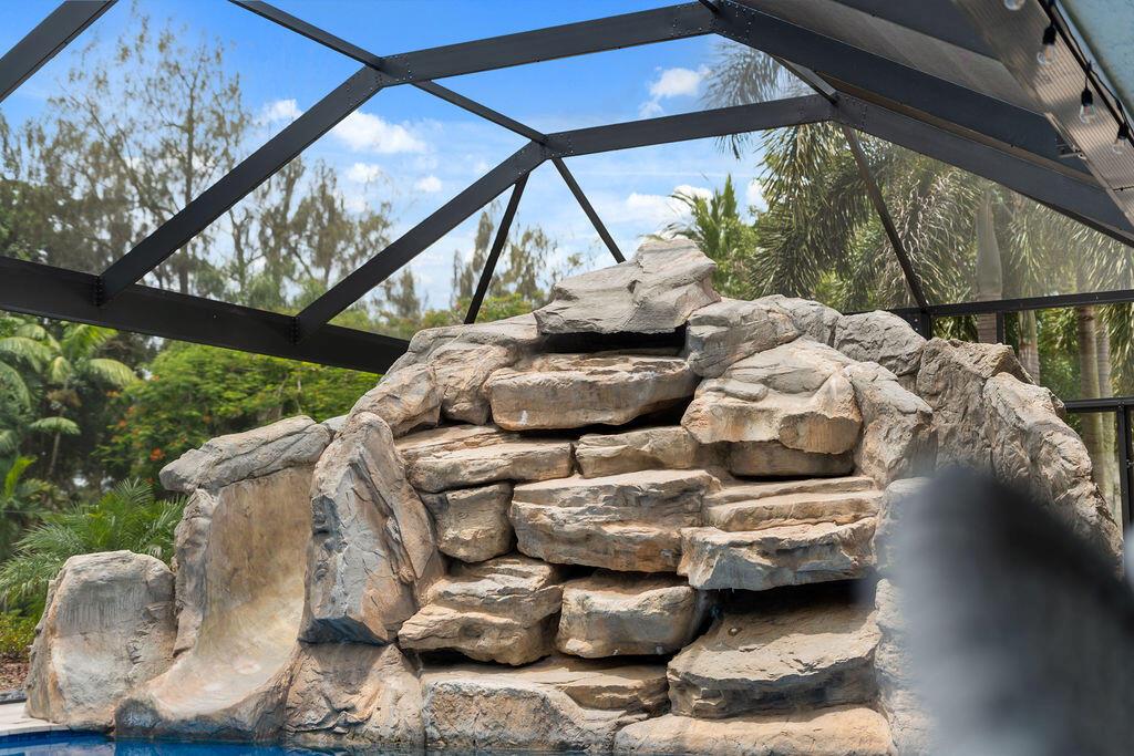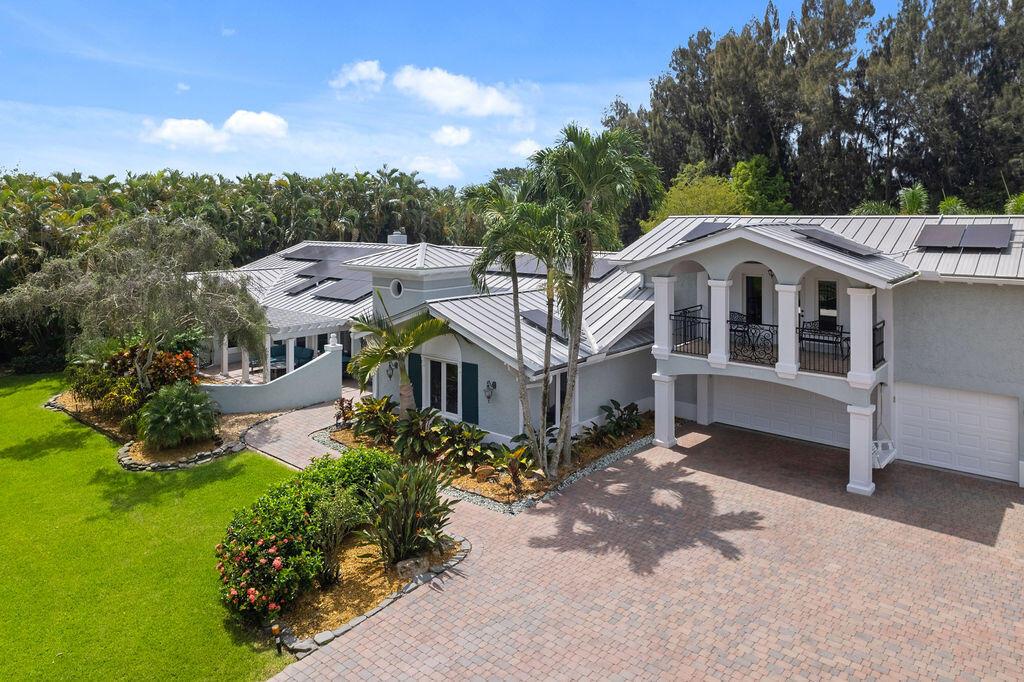 If you are looking for Shangri-La, look no further! Situated on 2.5 Acres of a Tropical Oasis, this home and property truly have it all! The 1/2 Acre filtered pond with fountain is surrounded by beautiful enormous pine trees offering a park like setting with lighted paver walk ways and gorgeous sitting area.There is also a 3 stall barn for horses with feed and adjacent air conditioned tack room/office as well as chicken/hen coops and room for ring and paddock! Features include, Metal Roof, Solar Panels, Newly resurfaced Resort Style Saltwater Pool with new heater, slide and Hot Tub! Outdoor Kitchen, gas fireplace, Complete Impact Glass Windows, Gourmet kitchen with large island, Newer Bosch Induction stove top, Newer Refrigerators, New Bosch dishwasher,