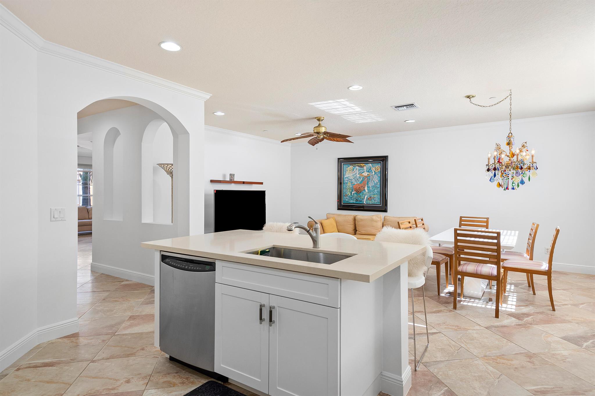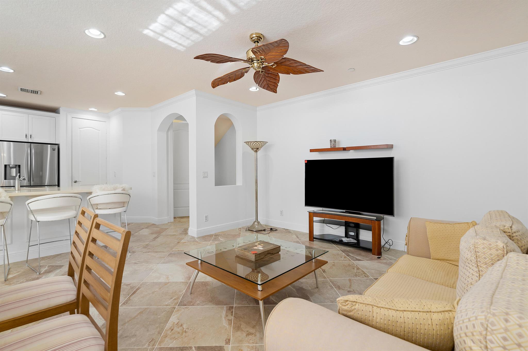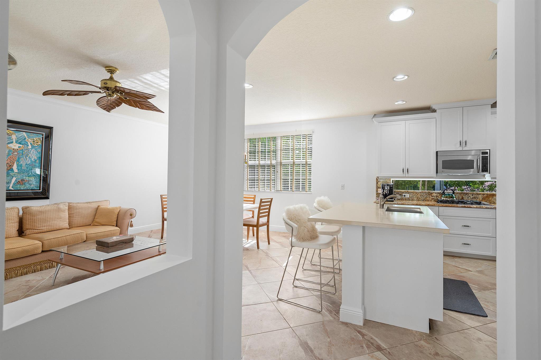 Introducing an exquisite 3-Story townhouse w/elevator that offers a perfect combination of elegance & functionality. Located in a desirable neighborhood w/close proximity to shopping & entertainment. This townhome is a rare find & features 4 beds, 3 full & 2 1/2 baths. Impact glass, newly painted, renovated kitchen, & new carpeting. Enter into the foyer & you will find a private guest suite, full bath & closet. Ascend to the main level which showcases a spacious living room & family room allowing for separate areas to relax & unwind. The renovated kitchen seamlessly connects to the family room & creates perfect space to socialize & host gatherings. With modern appliances, ample counter space, stylish cabinetry, & breakfast bar, this kitchen is a haven for culinary enthusiasts.