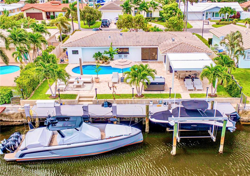 Introducing an exquisite waterfront residence in Pompano Beach's prestigious Harbor Villages. This impeccably remodeled 3-bed, 3-bath property boasts unparalleled elegance. Marvel at the flawless marble flooring, the sleek Quartz countertops, and throughout impact windows that bathe each room in natural light. Step into the backyard oasis adorned with beautiful pavers and the recently installed pergola that adds a touch of charm and provides the perfect setting for entertaining with family and friends. Featuring 80 FT of water frontage, a brand-new dock, sea wall, and boat lift. Newer A/C system, stainless steel appliances, treated Picote coating on the pipes, this home offers perfection in every aspect. Minutes to restaurants, shops, entertainment, golfing, fitness centers and the beach.