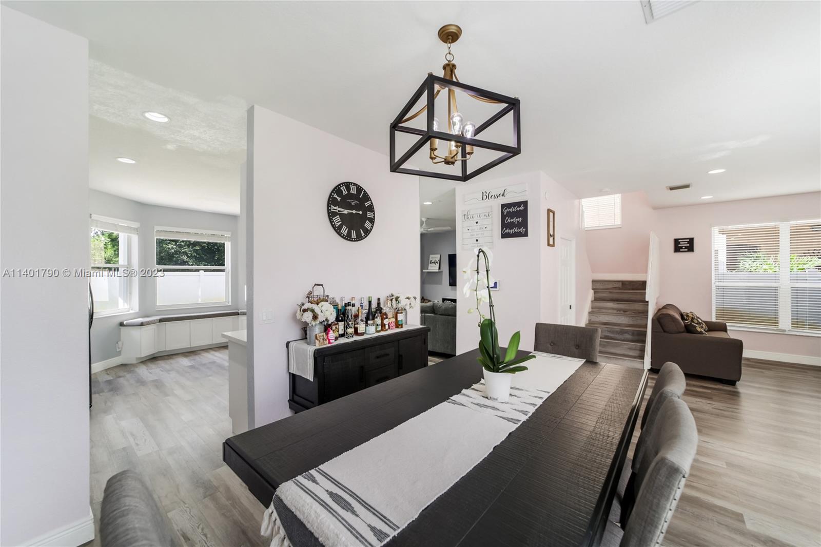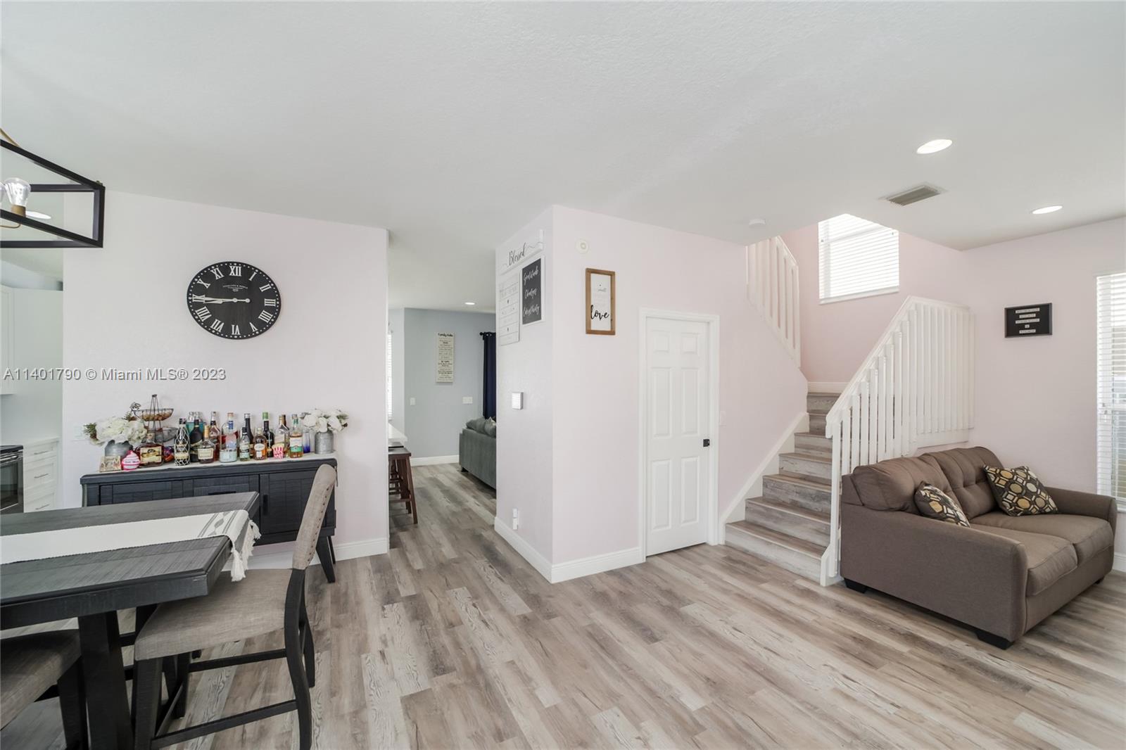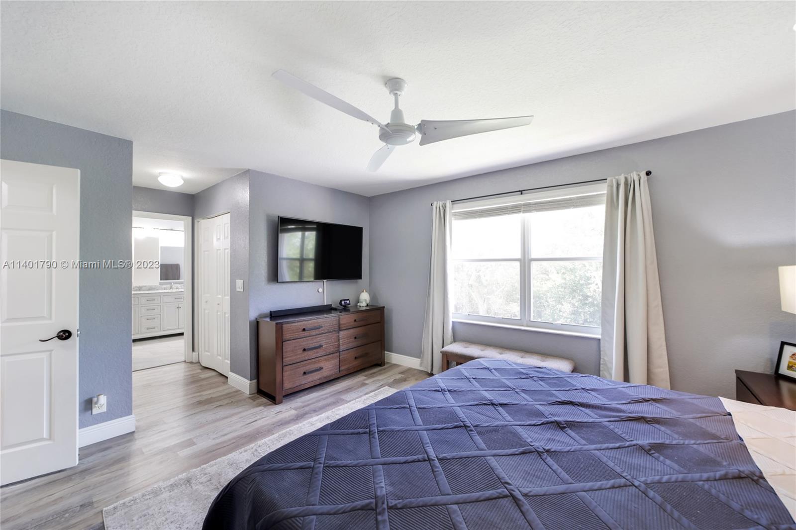 This extraordinarily beautiful two-story home located in the desirable gated community of Silver Shores is nestled in the heart of Miramar. The 3 bedroom and 2.5 bath residence mesmerizes with gorgeous Mediterranean architecture, an openly flowing floor plan, plenty of natural light, beautiful wood floors, and a spacious living room. Entertainment friendly, the upgraded open concept gourmet kitchen features stainless-steel appliances, quartz counters, and a farmhouse sink. All bedrooms are generously sized with dedicated custom built closets, while the primary bedroom dazzles with a spa-inspired en suite boasting a soaking tub, dual sinks, and a separate shower. Other features: Two car garage, laundry area in garage, fenced-in backyard with patio, and solar panels to power the entire home.
