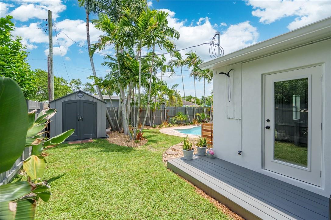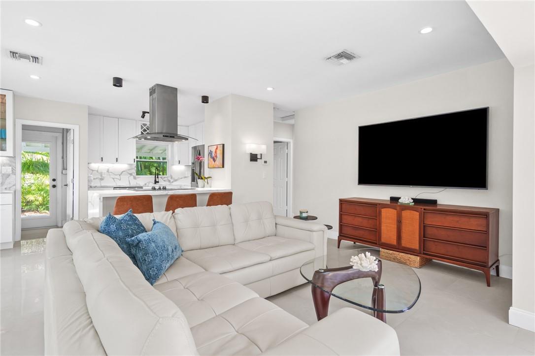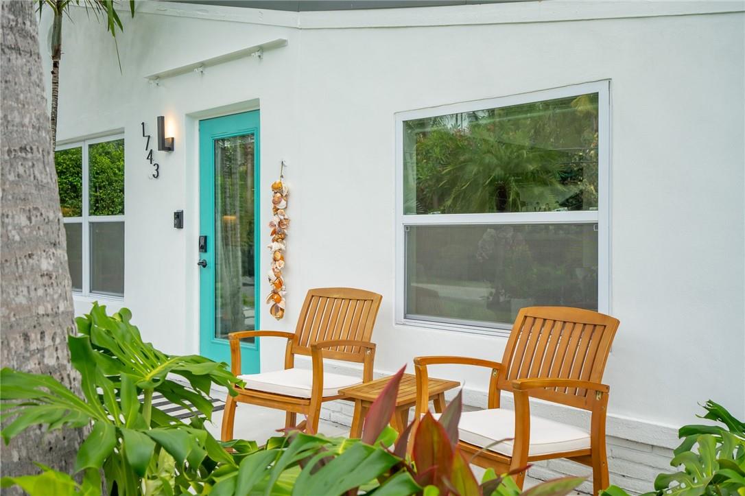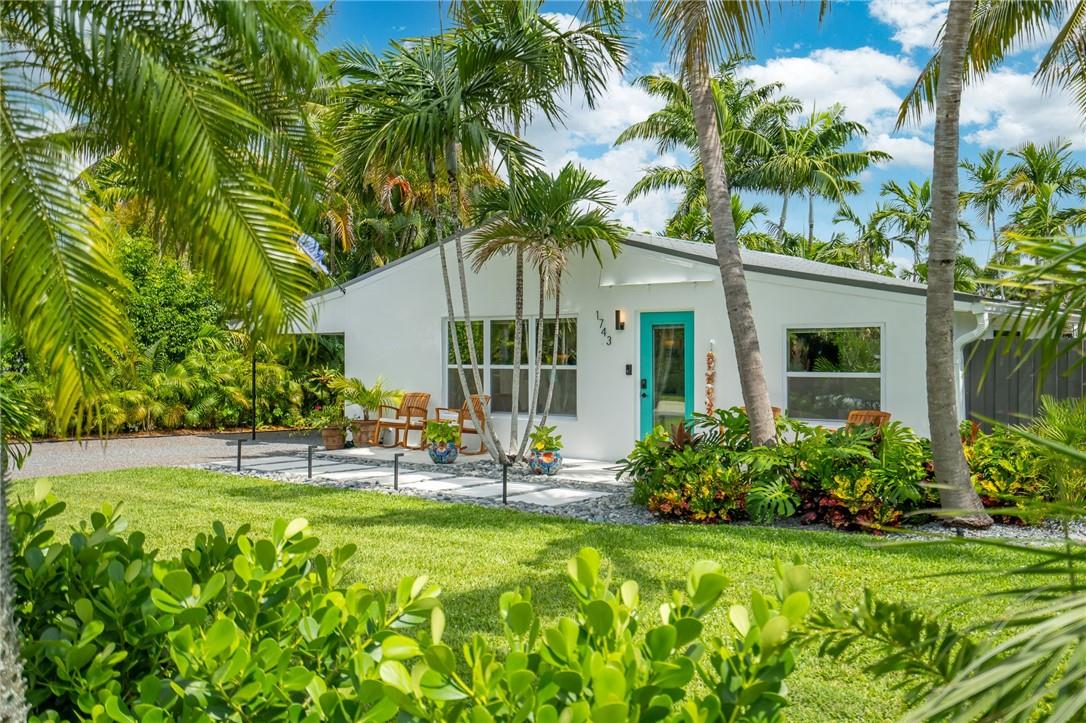 This stunning home nestled on a corner lot in Poinsettia Heights is now available. The front porch is lined with palms and is breathtaking. The house has had extensive renovations including AC, tankless water heater, metal roof, new appliances, Calcutta quartz countertops with waterfall edge, separate bar and beverage center. The owner’s bedroom boasts a custom closet and glass slider. The second bedroom comes with a Murphy bed, custom closet and a glass door to the outside shower. Your private fenced in tropical oasis is stunning with outdoor dining for 8 and huge outdoor sectional all underneath an oversized aluminum cabana. The freeform pool wraps nicely around the backyard with a hot tub tucked up against the house. See all details of updates in the supplemental section of MLS.
