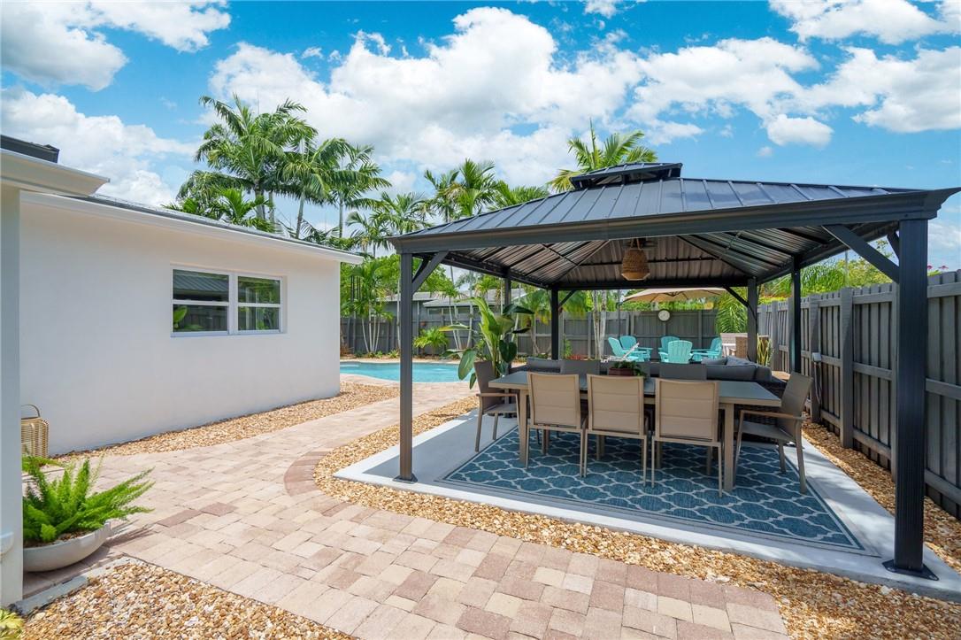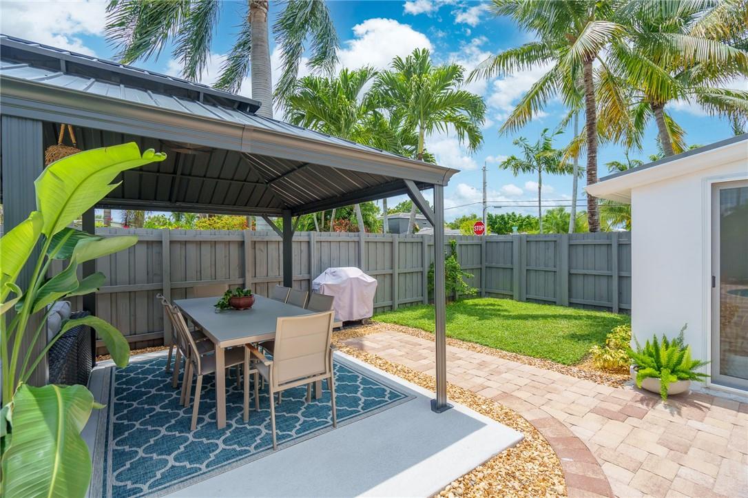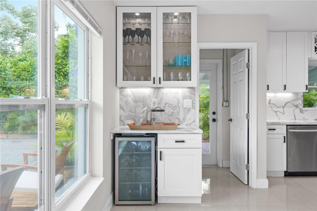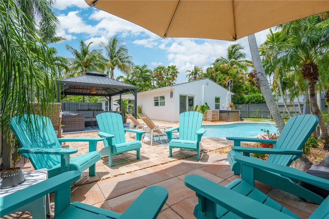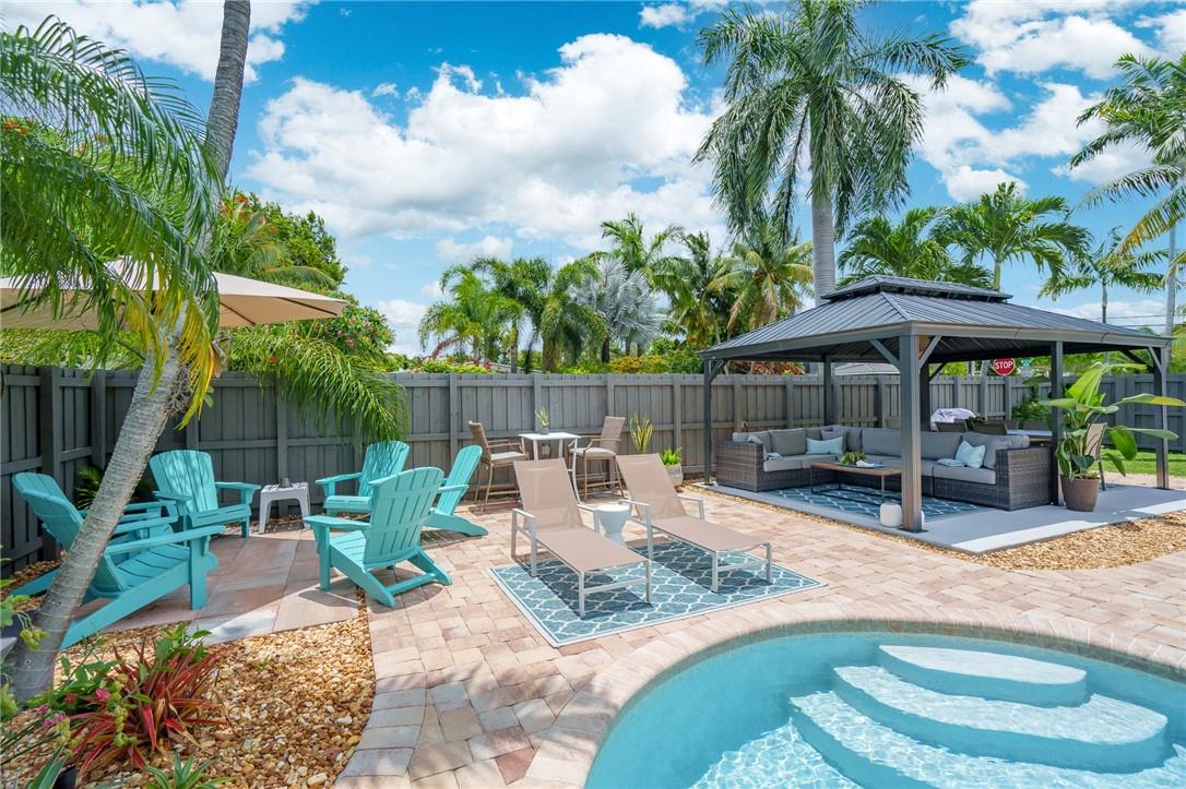 This stunning home nestled on a corner lot in Poinsettia Heights is now available. The front porch is lined with palms and is breathtaking. The house has had extensive renovations including AC, tankless water heater, metal roof, new appliances, Calcutta quartz countertops with waterfall edge, separate bar and beverage center. The owner’s bedroom boasts a custom closet and glass slider. The second bedroom comes with a Murphy bed, custom closet and a glass door to the outside shower. Your private fenced in tropical oasis is stunning with outdoor dining for 8 and huge outdoor sectional all underneath an oversized aluminum cabana. The freeform pool wraps nicely around the backyard with a hot tub tucked up against the house. See all details of updates in the supplemental section of MLS.