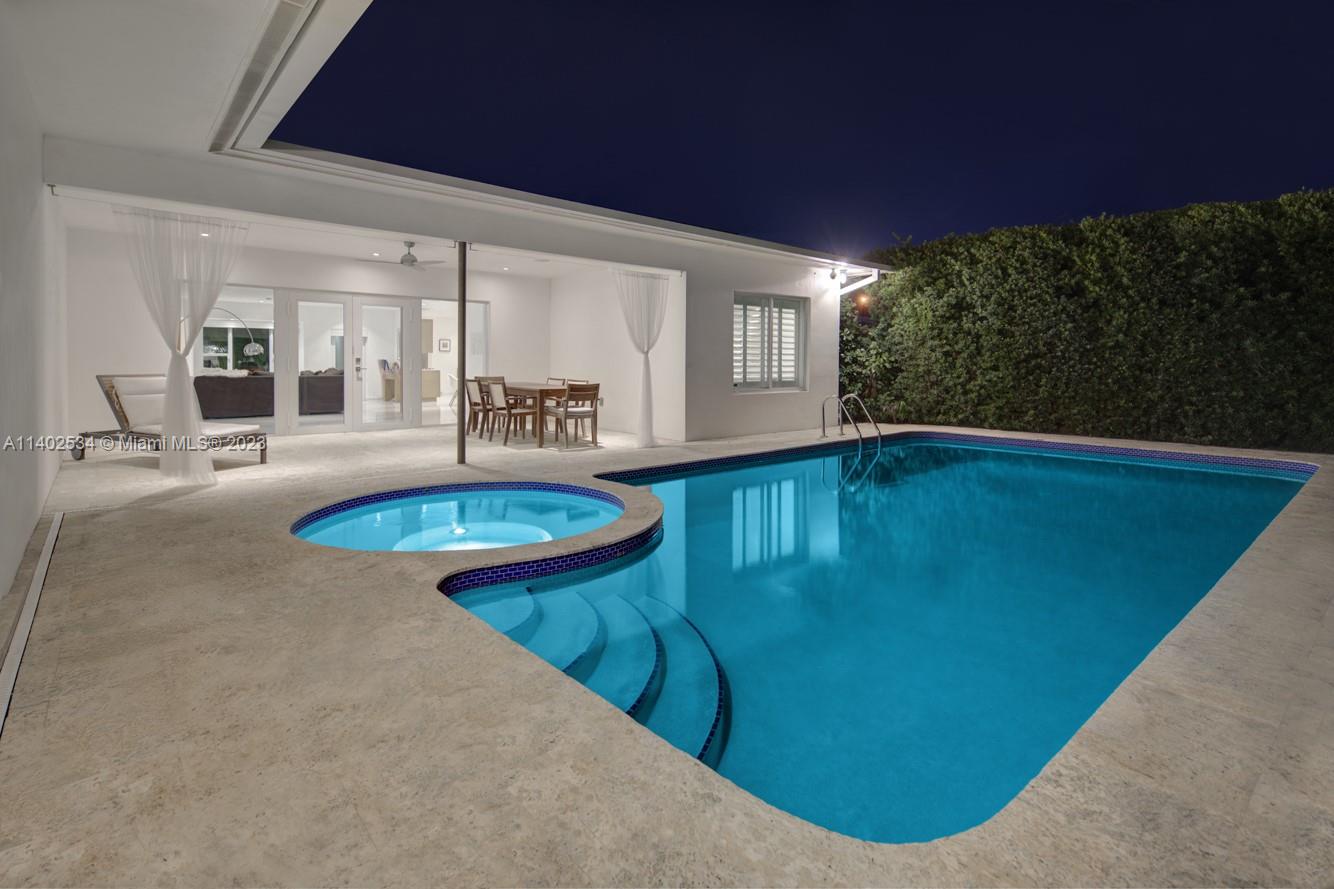 Stunning newly renovated mid-century modern home with a spacious sun-filled floor plan. The open living space leads to a fully covered lanai for entertaining, relaxing hedged backyard and large heated pool. Updated finishes in all bathrooms and kitchen with KitchenAid chef's appliances, a luxurious master suite with walk in closet and extensive storage space. Features include brand new roof, tankless water heater, impact glass windows and doors, Nest thermostats and in-ceiling Sonos sound system indoors and outdoors. Located in one of Miami Beach's most desirable Mid Beach neighborhoods just minutes away from the beach, nearby gyms, restaurants and retail in Sunset Harbour and within walking distance to houses of worship.