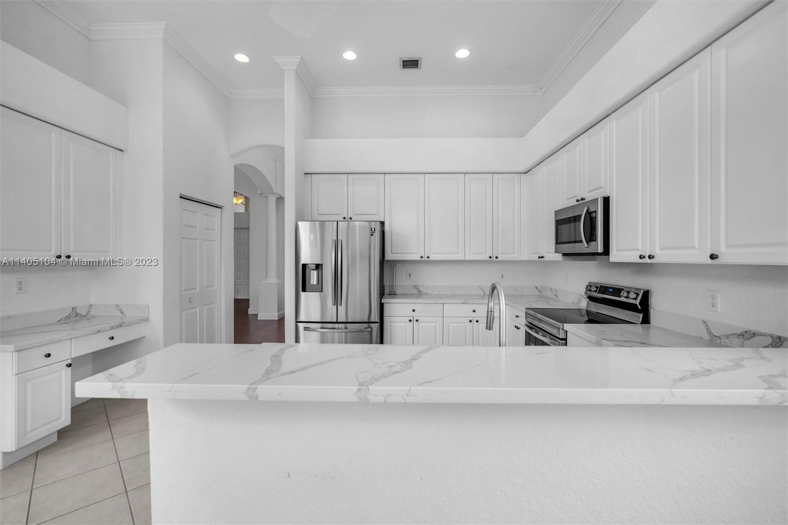 Come check this stunning house in desirable Silver Lakes - Pelican Sound site, a gated community! One story home fully and completely renovated bathrooms. The 42" kitchen cabinets come with new Quartz counter-top and Stainless-Steel Appliances. Amazing wood-colored tiles. Its high ceilings provide lots of nature light from every area in the house. Custom lightings in living room for luxurious lifestyle. 8" Crown Moulding. Tripple split floor plan four bedrooms with 3 full baths. Laundry room inside the house and 2 car garage. Large patio area with room for a private pool. Completely fence home offers some fruits trees and privacy. Fantastic location, near hospitals, grade A schools and easy access to highways. Do not miss out on this unique opportunity! will not last!