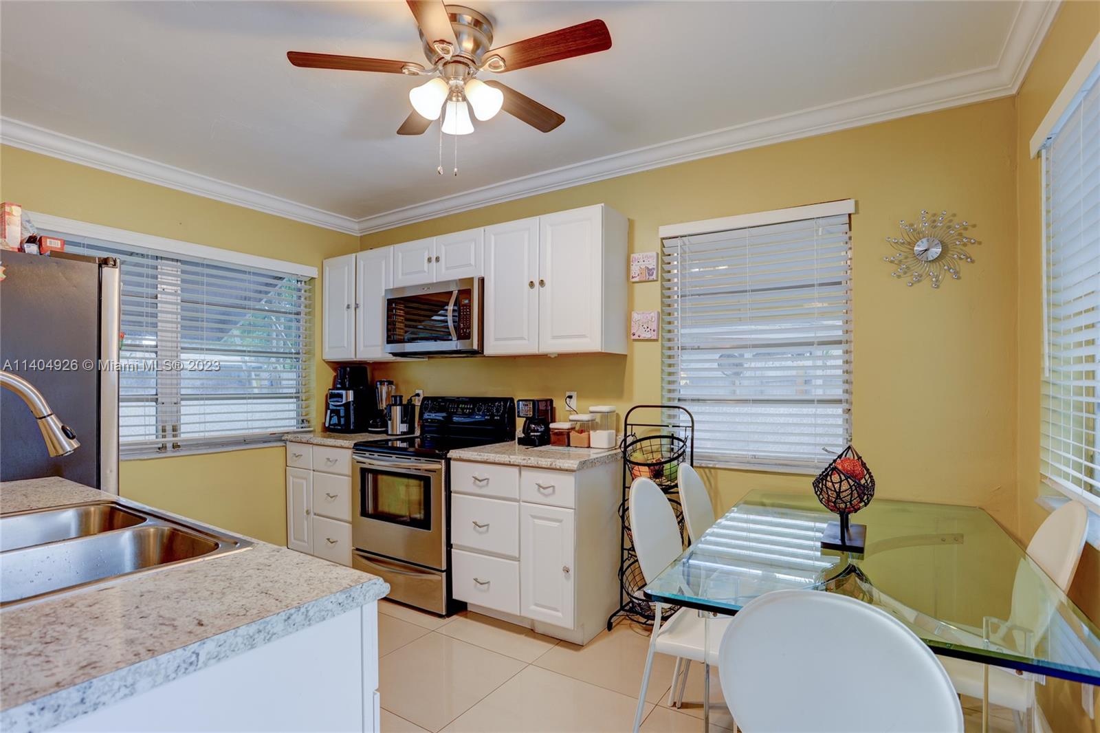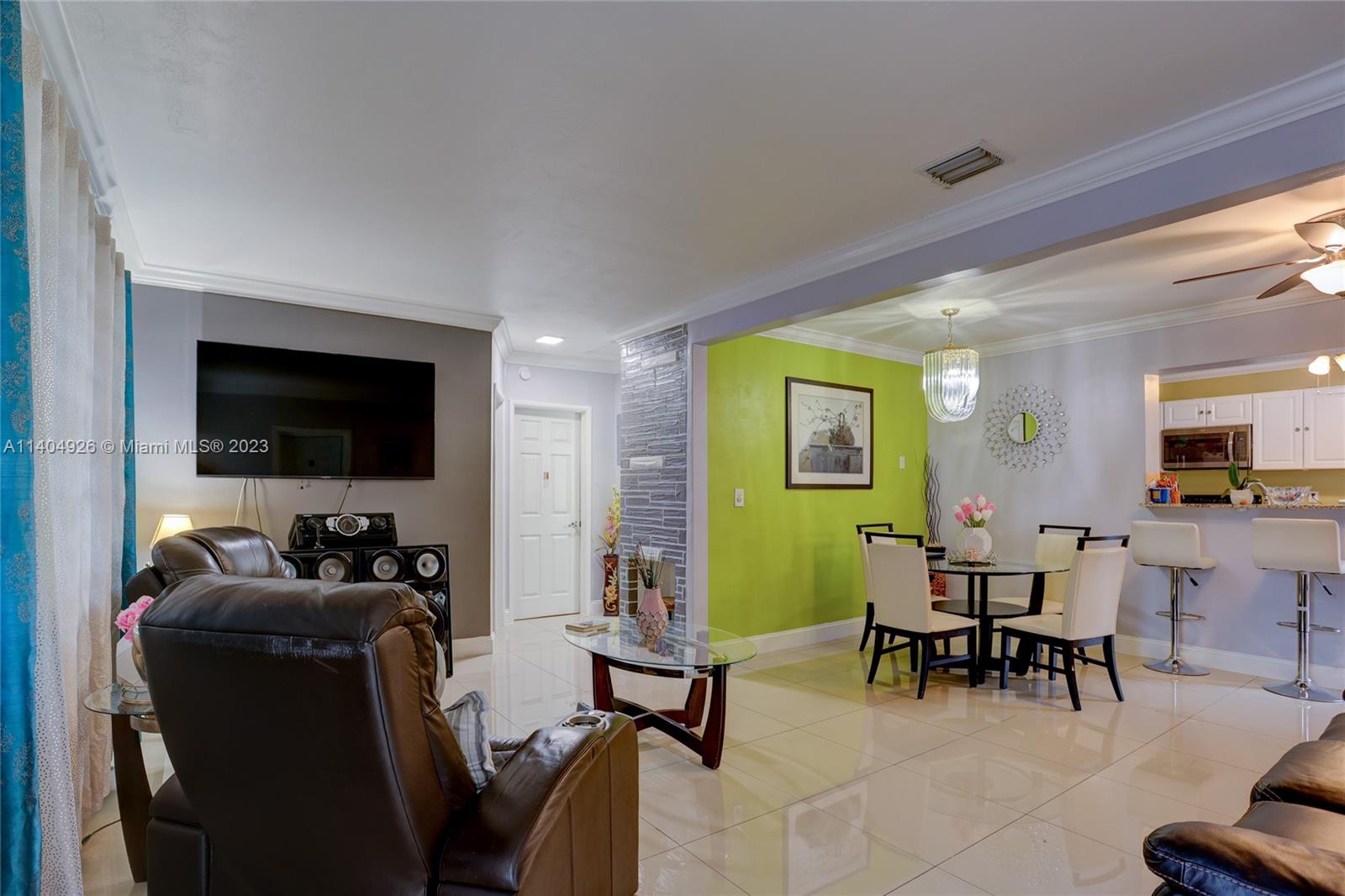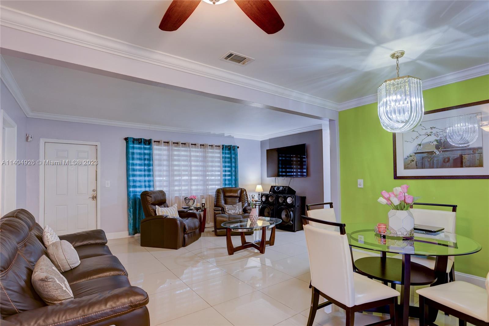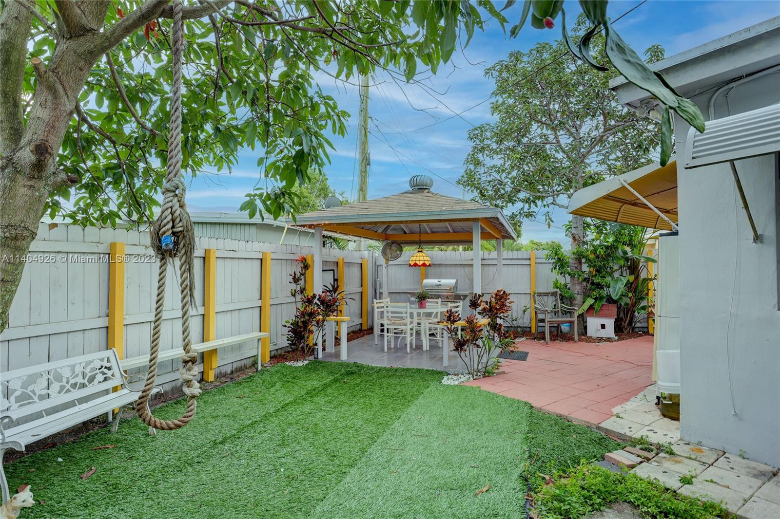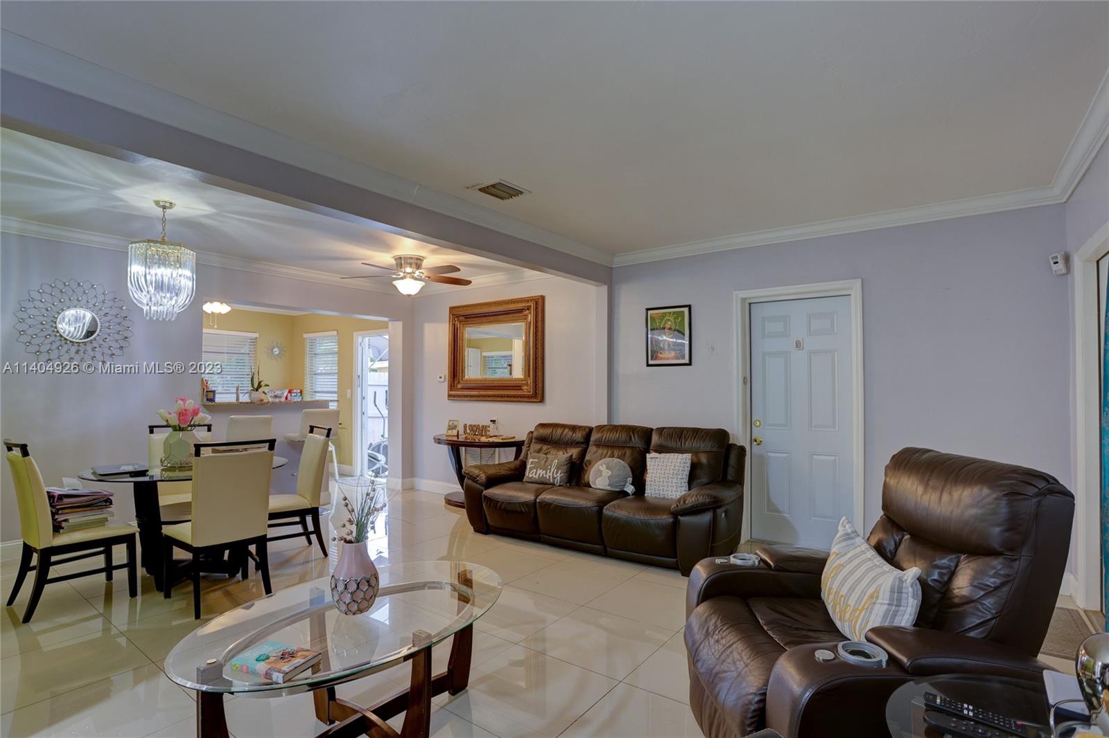 This beautiful home in the heart of Miramar is ready for their next loving homeowner. Sitting on a corner lot with over 7,000 sq. ft., this home features: 2 ample bedrooms, 1 updated bathroom, remodeled open kitchen with stainless steel appliances, tile and laminate flooring throughout, crown molding, separate laundry room, updated AC and tankless water heater and so much more. Outside, enjoy the gazebo area in the large backyard fully enclosed with a privacy fence. Room for a pool. Lots of fruit trees. Centrally located near the turnpike and I95. No HOA!