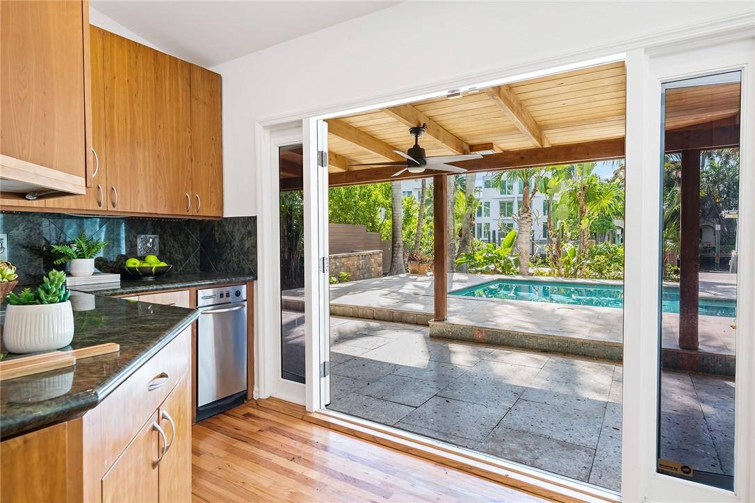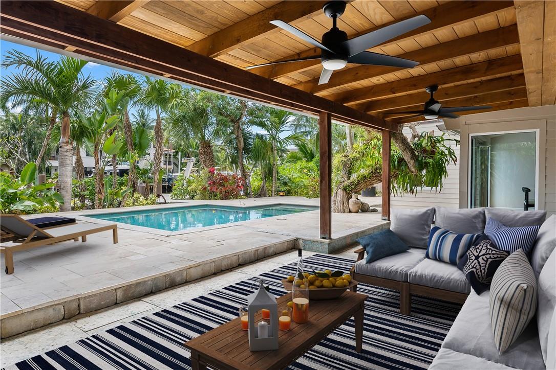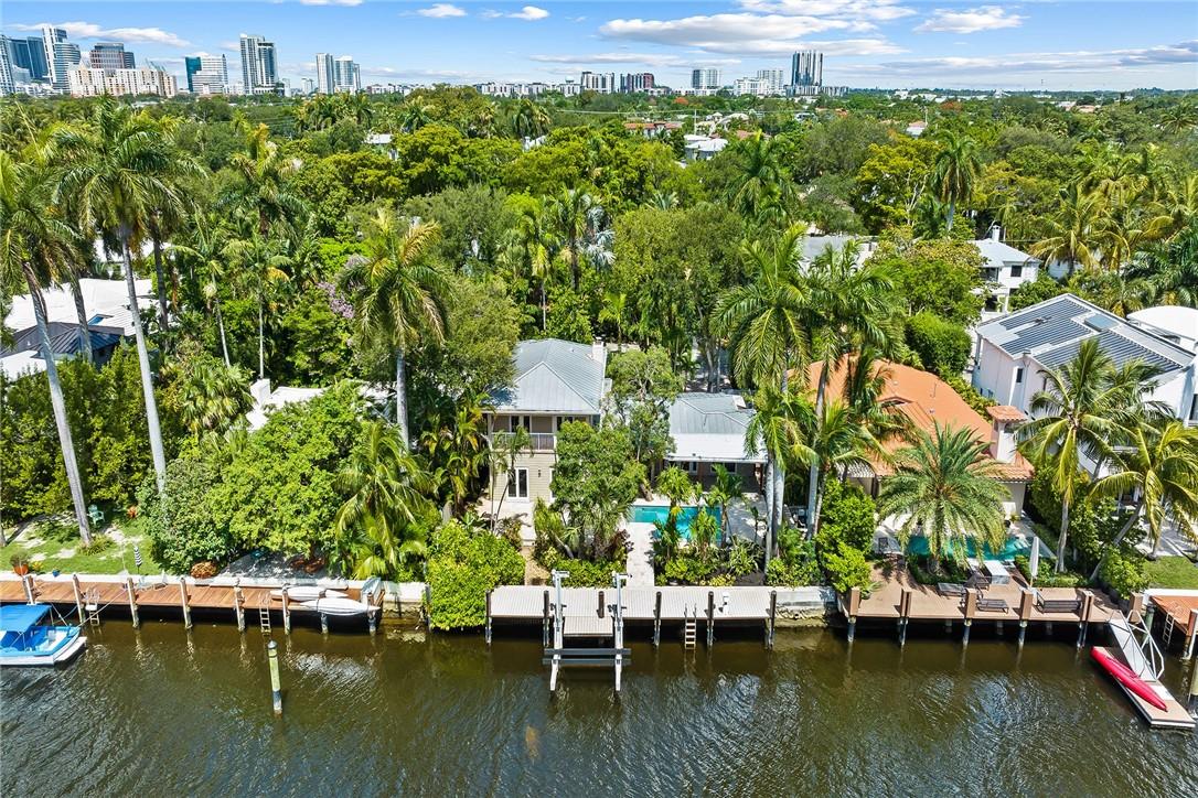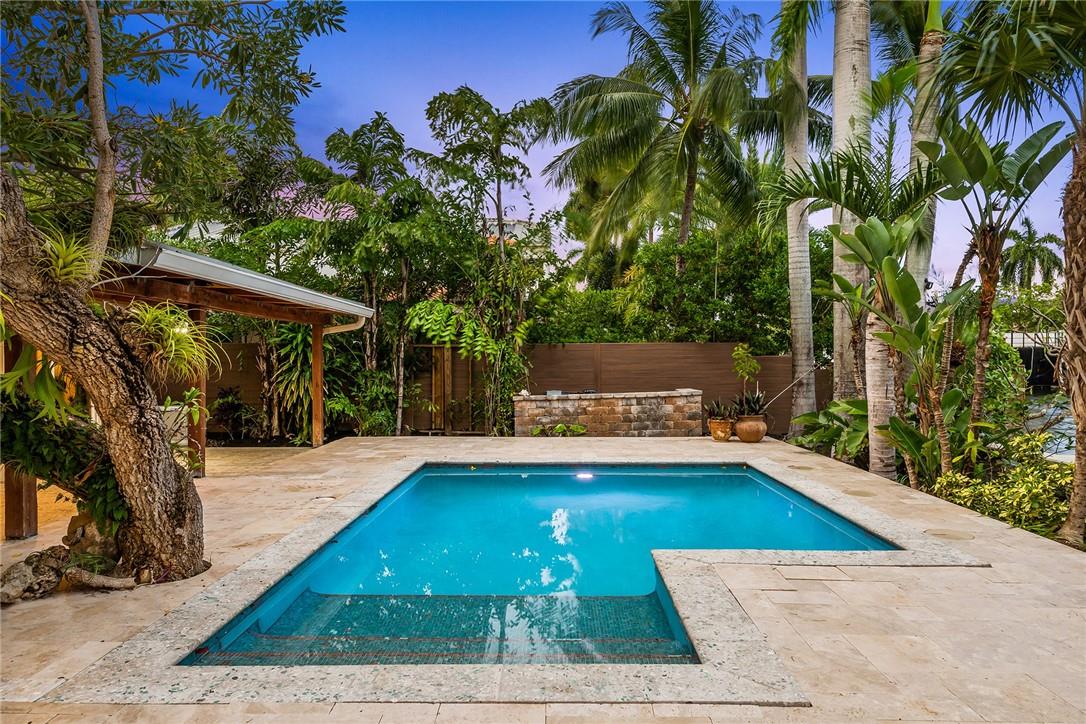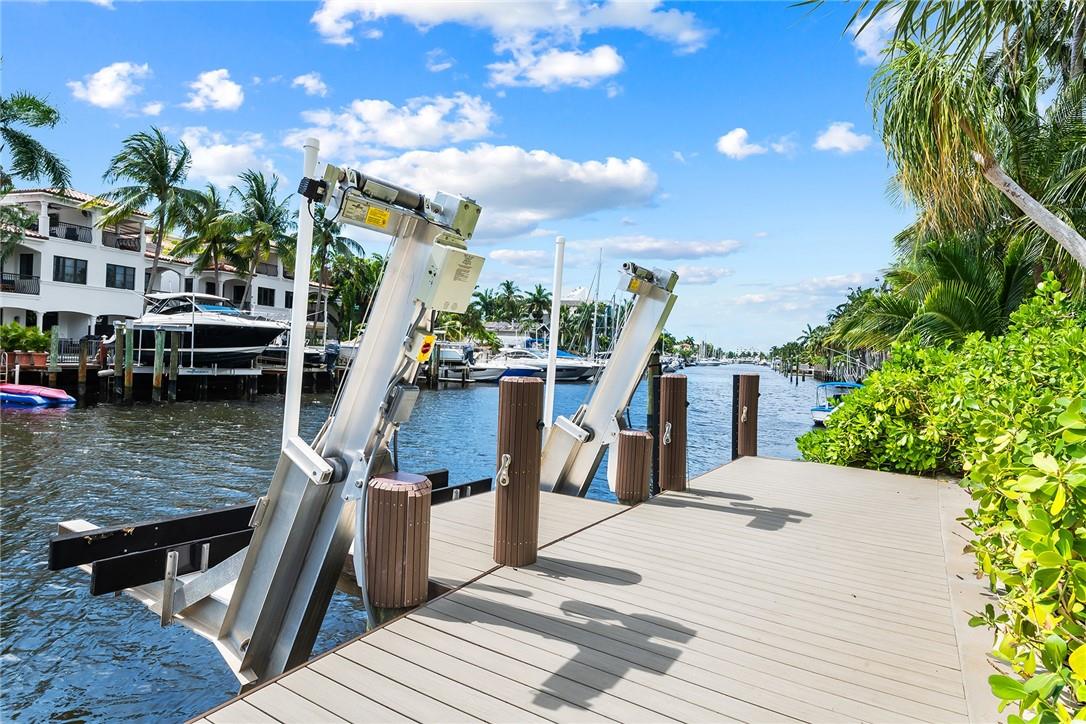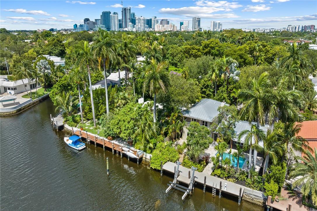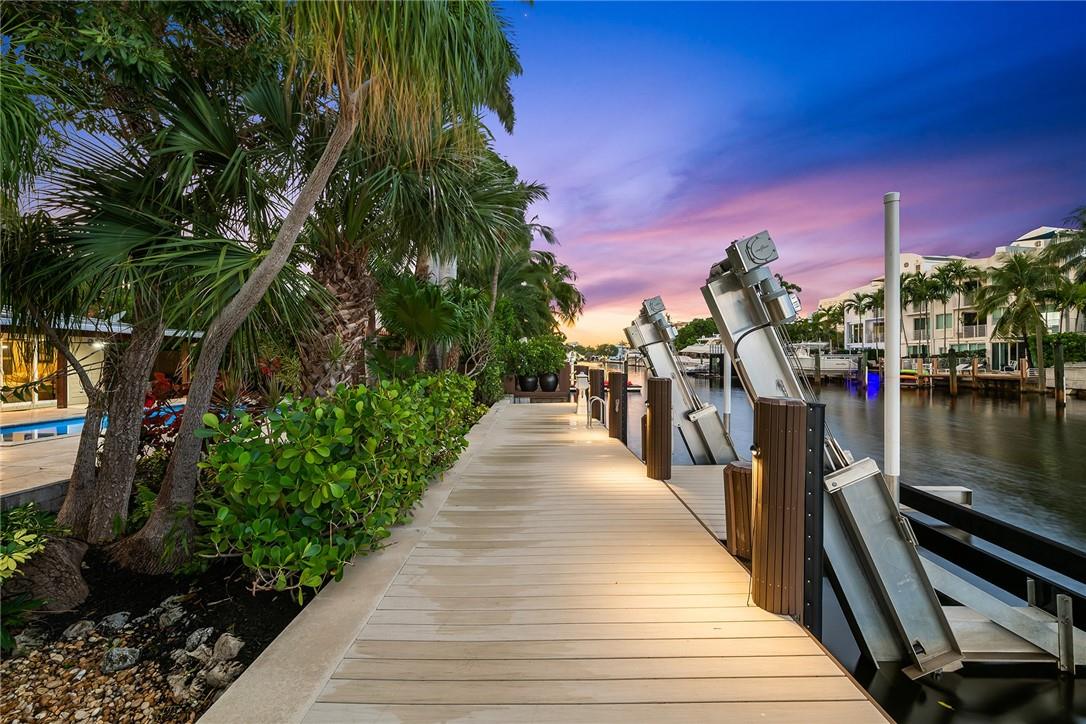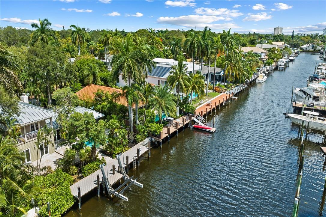Welcome to your waterfront paradise in the desirable Victoria Park neighborhood! Imagine a lush, private property with two gated entrances situated on a quiet cul-de-sac. Picture views of the canal from your backyard oasis featuring an expansive covered area for dining and travertine pavers surrounding the saltwater pool. Have peace of mind with a newly raised 75' seawall and 50' Aztec dock with state-of-the-art 20,000 boat lift. With no fixed bridges and deep canal access, you can enjoy carefree boating any time. Inside you'll find an open living room with updated lighting, a wet bar, and a contemporary staircase leading up to the primary suite balcony overlooking this tranquil outdoor space. 16kw whole home generator powered by natural gas. Minutes to the beaches & Las Olas Blvd.