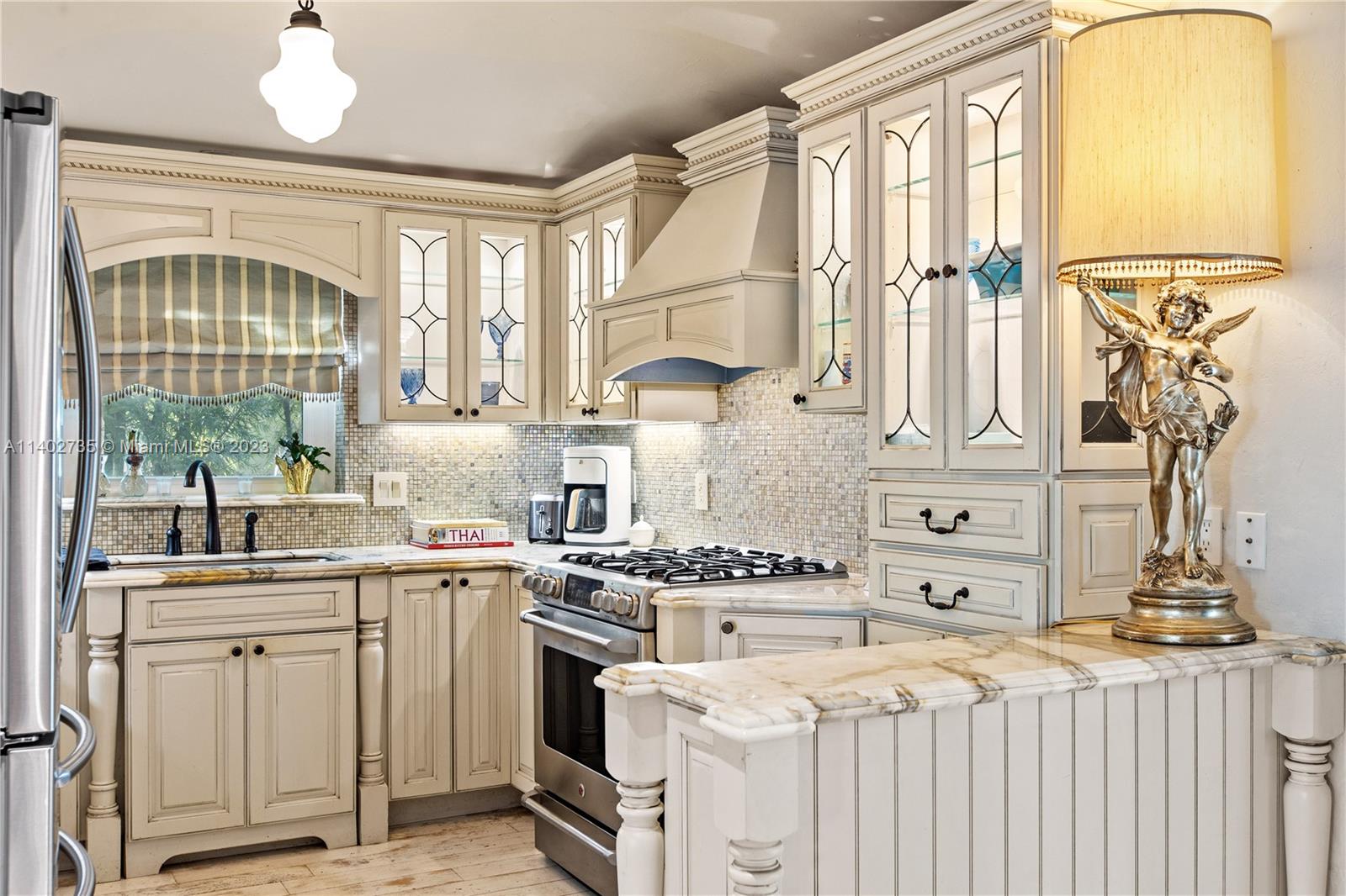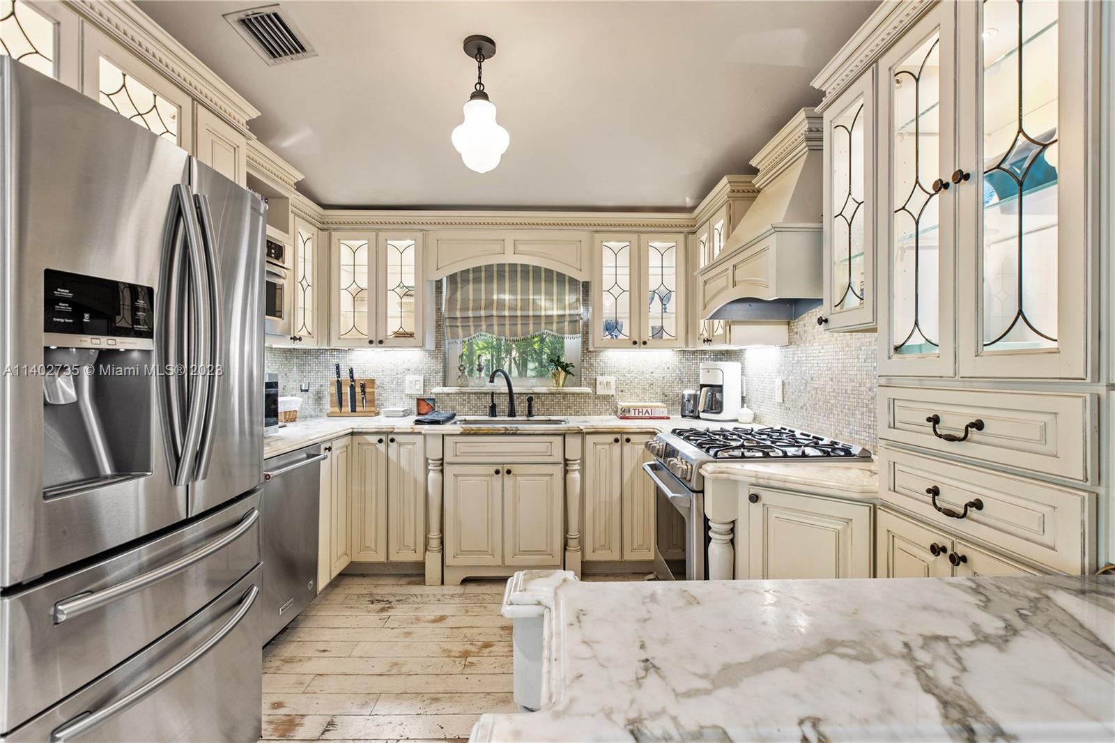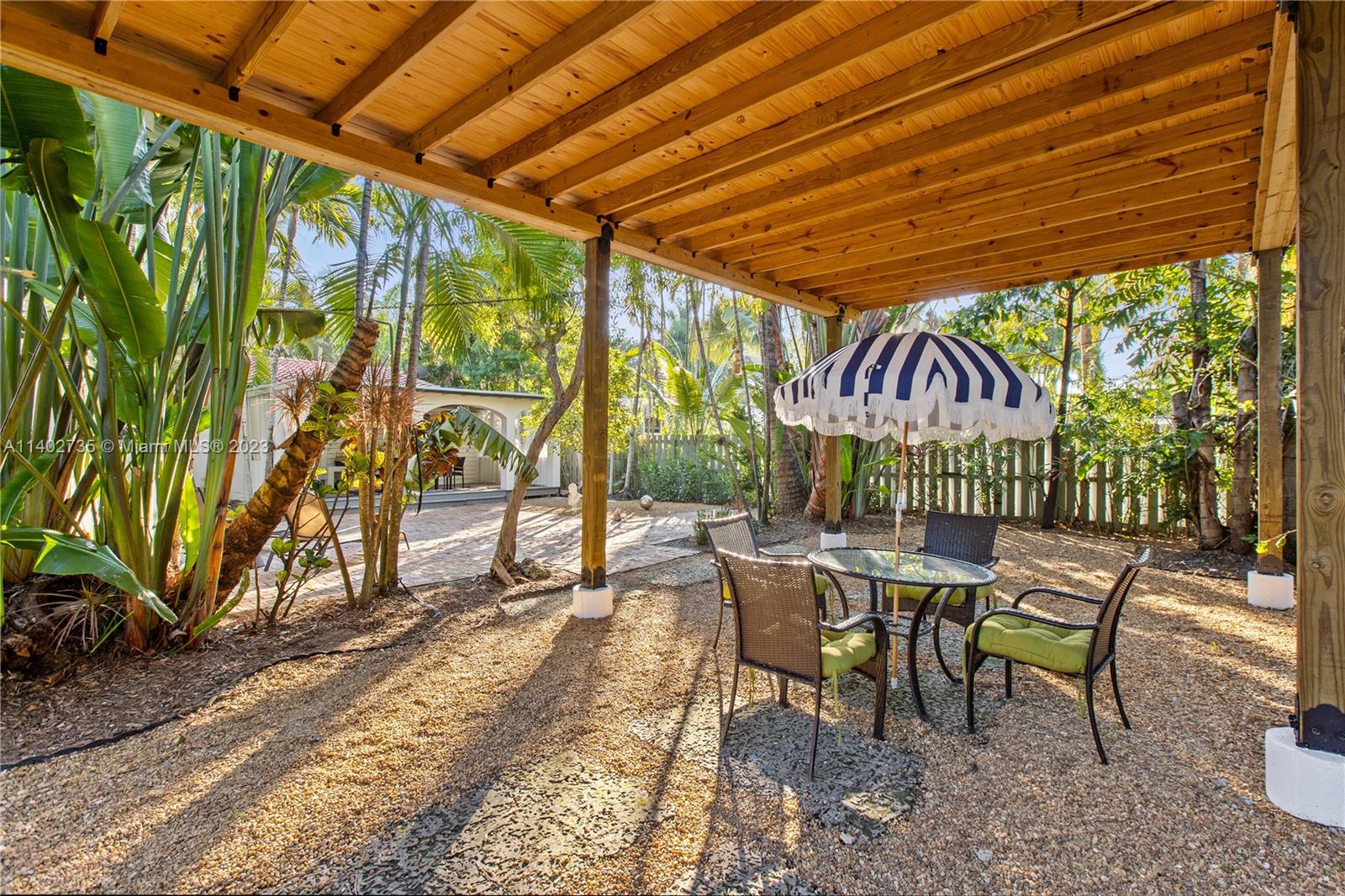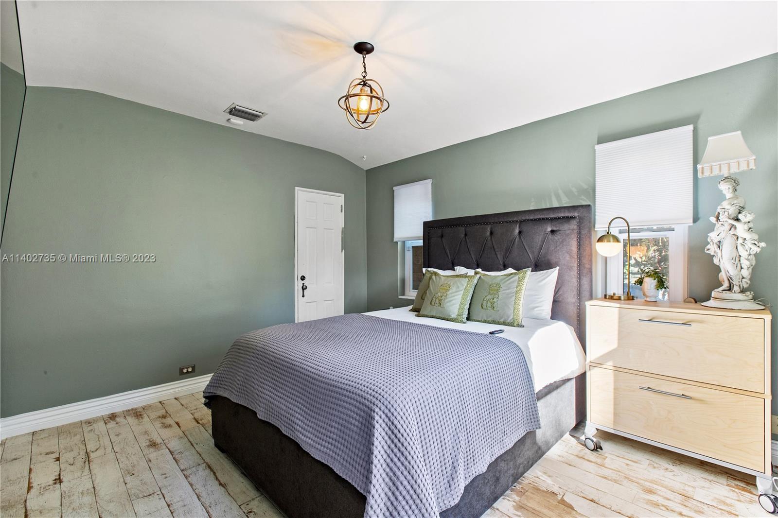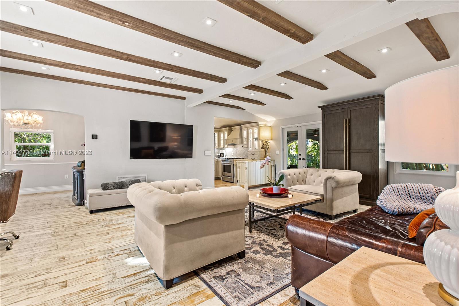 Elegant 2 bedroom / 2 bath home with a lot of character. Tastefully designed interior with a beautiful kitchen featuring a professional gas stove, ss appliances, and custom cabinetry. Wood flooring, exposed wood beams and fireplace. One bath has a unique claw bottom tub and the other is an oversized primary bath. New impact windows/doors. Your private tropical oasis awaits. Enjoy your private fenced resort-inspired backyard w deck & jacuzzi/spa and two under cover outdoor living spaces great for entertaining. Chicago brick surrounding the home plus a coral retaining wall. Incredible location, 1 1/2 blocks from Southlake, approximately 1 mile from the beach and Downtown Hollywood. Some furnishings available for sale. Chandelier in foyer does not convey/will be replaced.