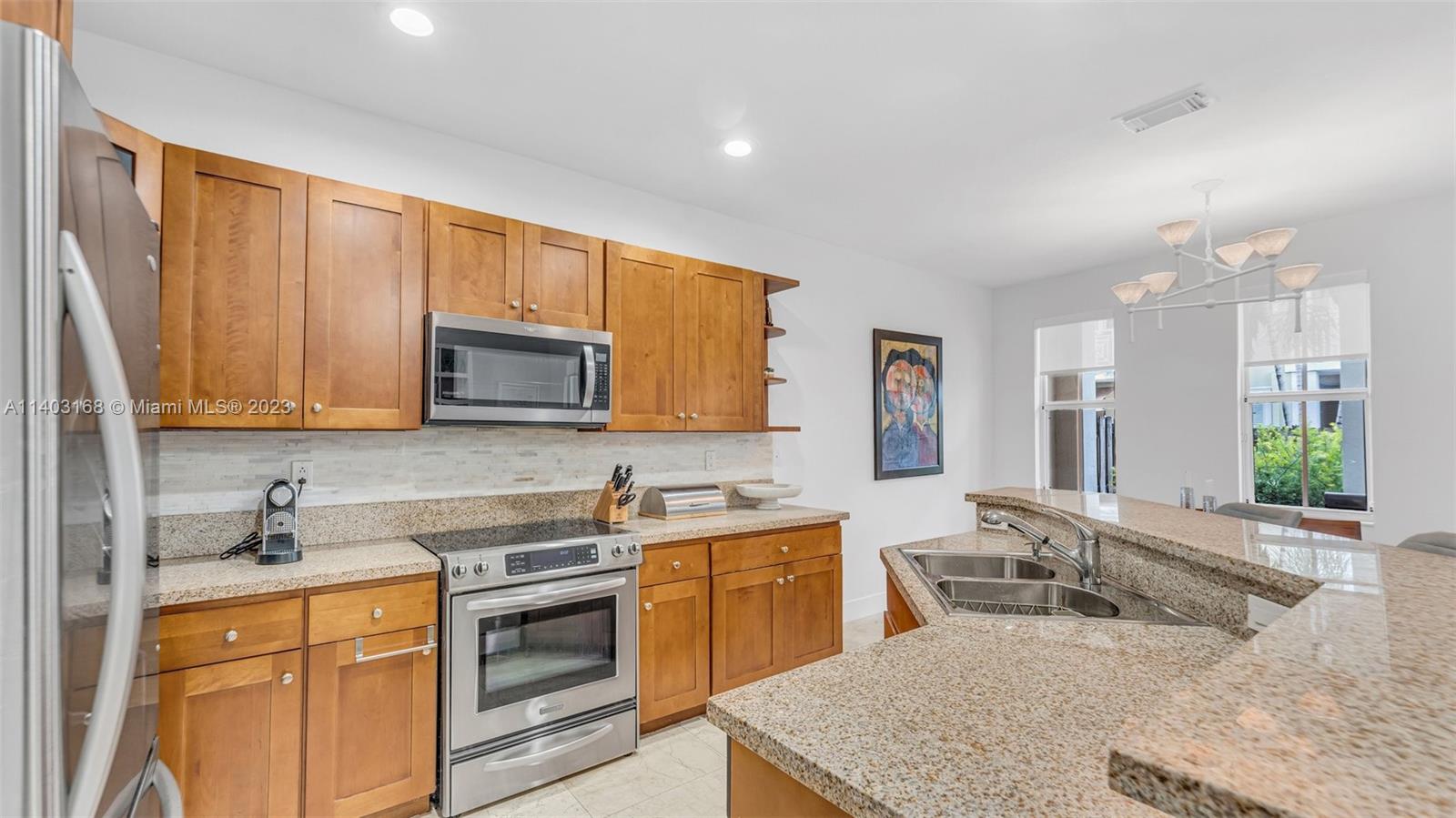 Welcome to your dream townhouse in the heart of Doral! This stunning 3 bed 3 bath gem perfectly blends modern elegance with practicality. Situated on a quiet street with no neighbors in the front, this home features an open layout that seamlessly connects the living, dining, and kitchen areas. Marble floors on the first level and wood look tile on the second level offer a warm and inviting atmosphere. Spacious yard with ample space for entertainment, built-in electric awning provides shade and comfort on those sunny South Florida days. Upgraded kitchen with top of the line appliances. This townhouse is perfectly situated near renowned schools, world-class shopping, and fine dining. Enjoy the convenience of nearby parks, golf courses, and many entertainment options. Schedule a tour today!