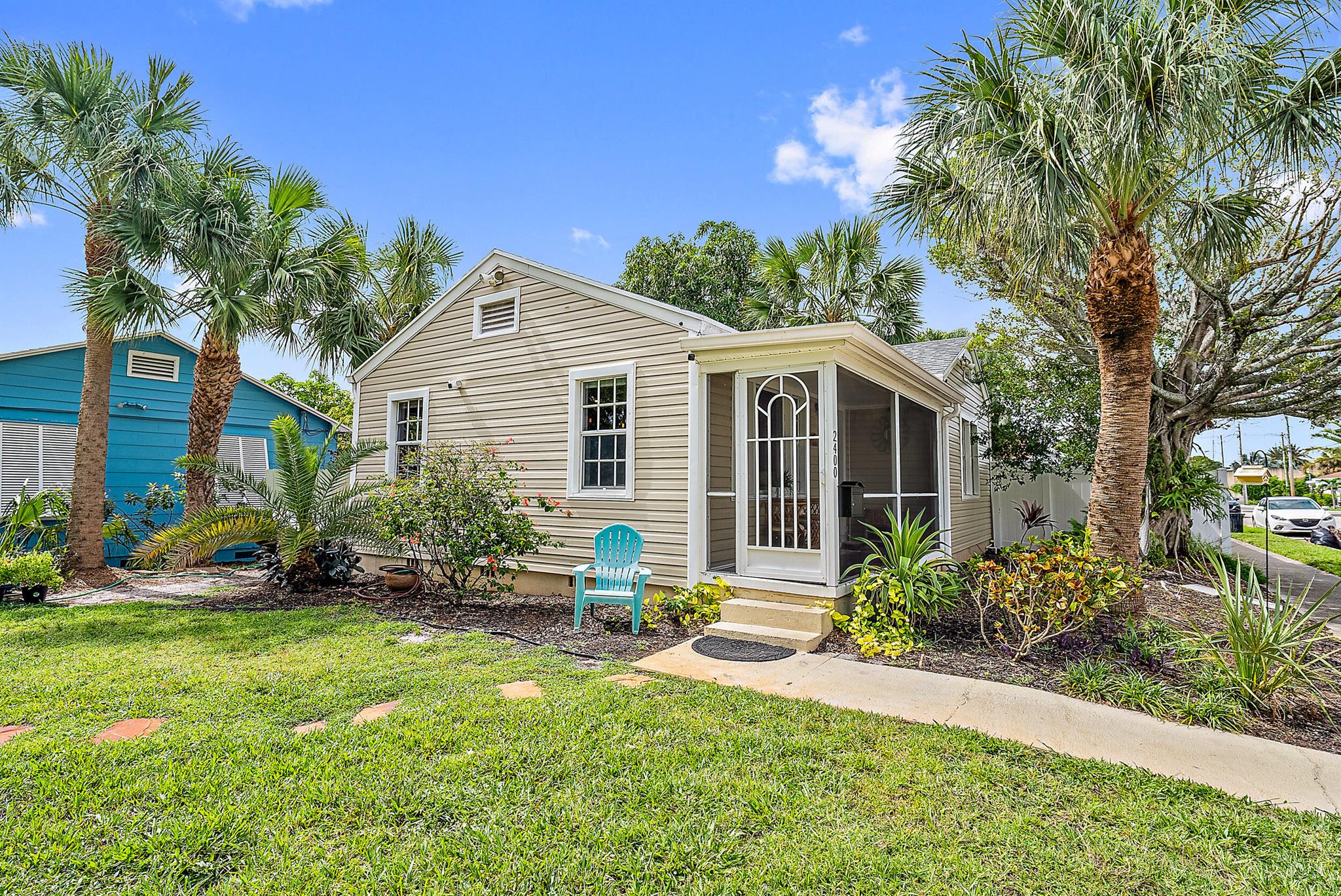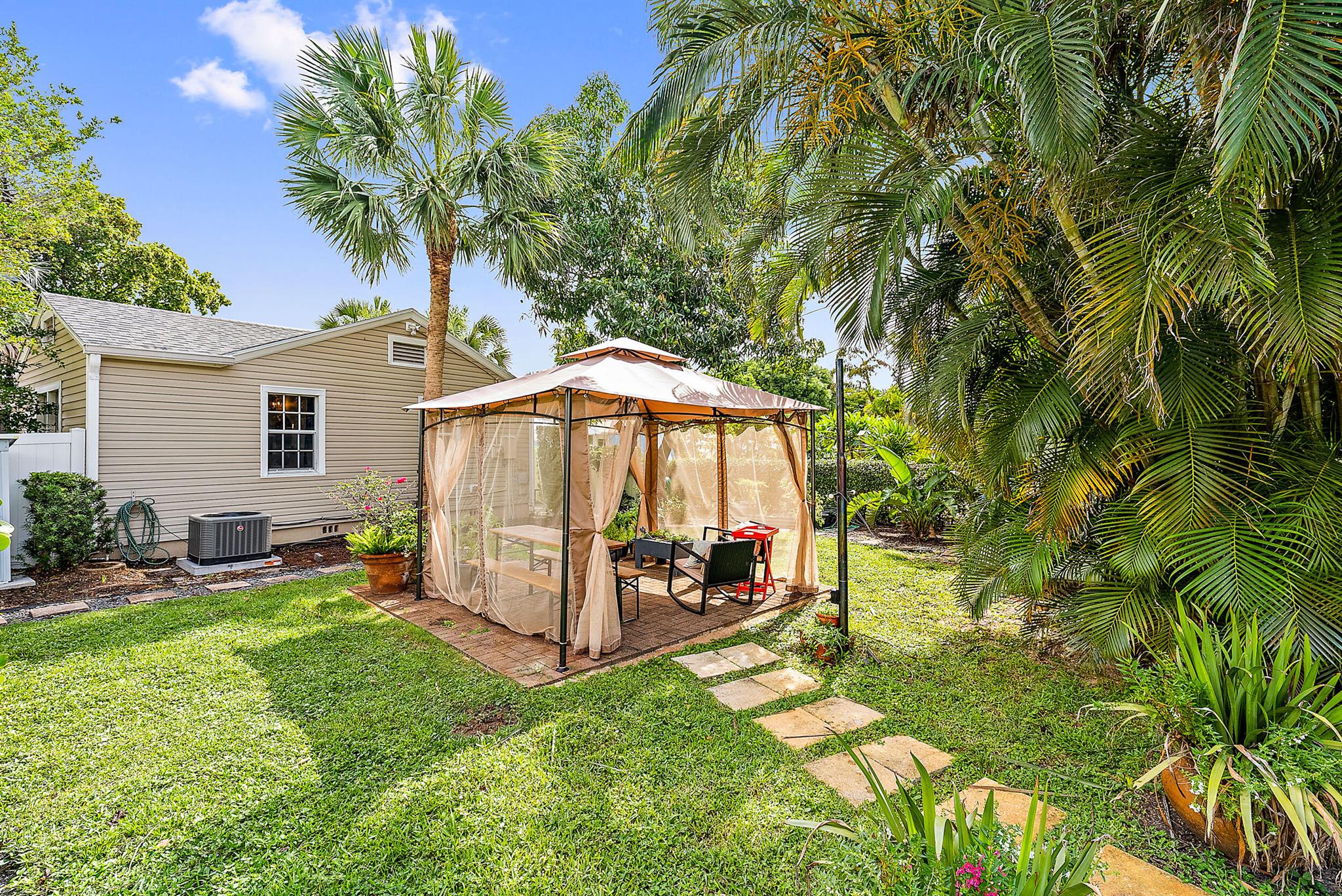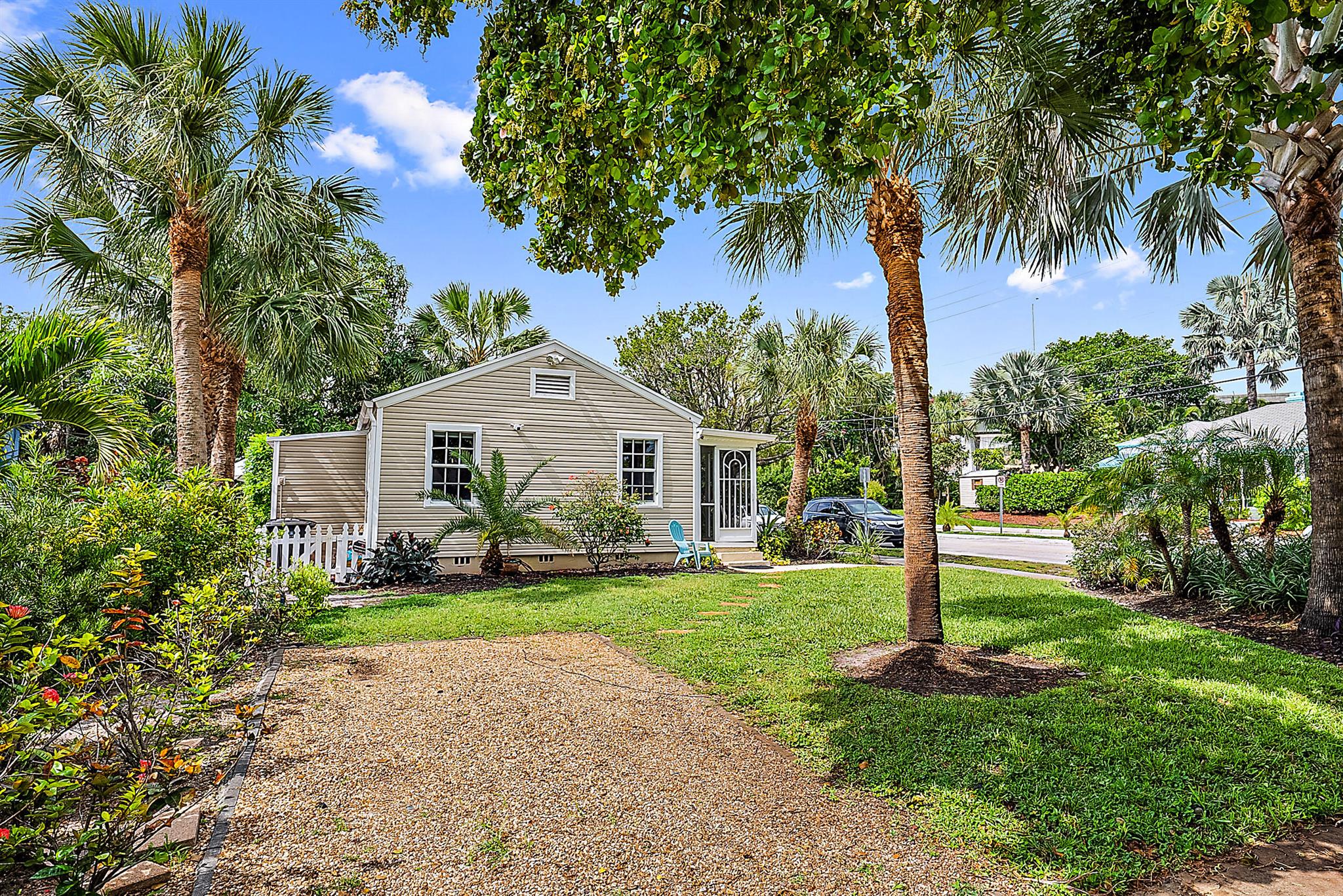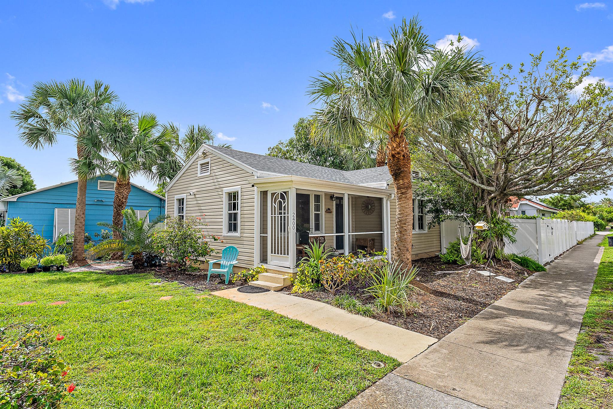 This charming home located in Pineapple Park is a rare find. Brand New AC 2023 and roof (November 2022). The home has an open floor plan with two bedrooms one bathroom. The kitchen is recently updated with pendant lighting, wine fridge, quartz & large butcher block island. Tons of original Old Florida charm with Dade Co. pine hardwood floors and beautiful tropical landscaping. The fenced in back yard is expansive and private, perfect for entertaining.This location is less than a mile from Rosemary Square and PBI airport. Its a short walk to Grandview Market, numerous restaurants, Howard Park, and all that Rosemary Square has to offer. Zoned for Palm Beach Elementary School District.