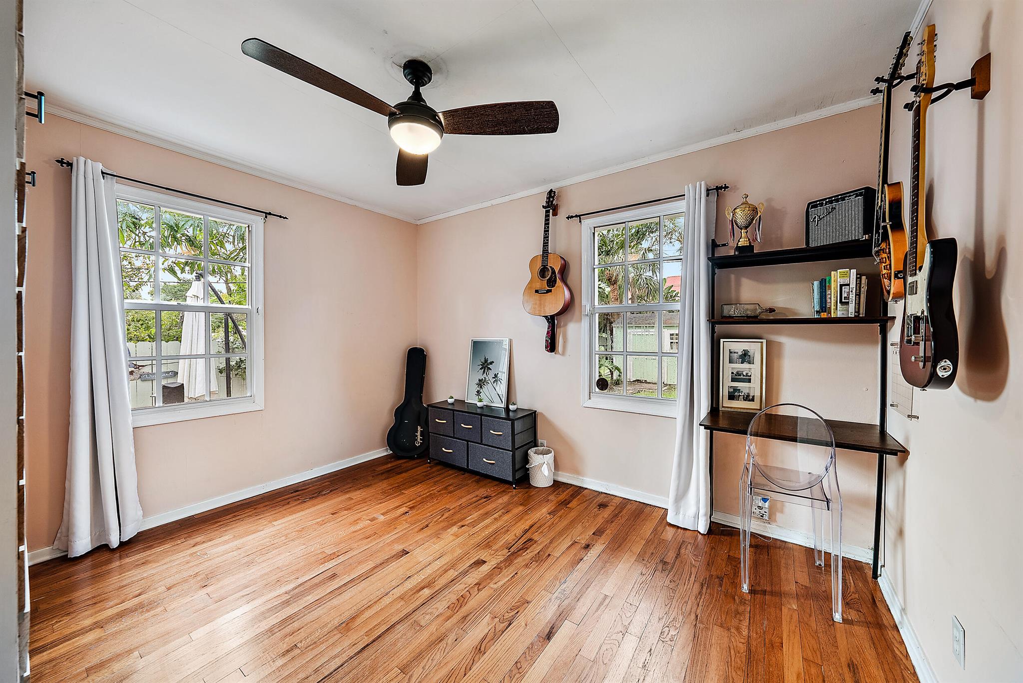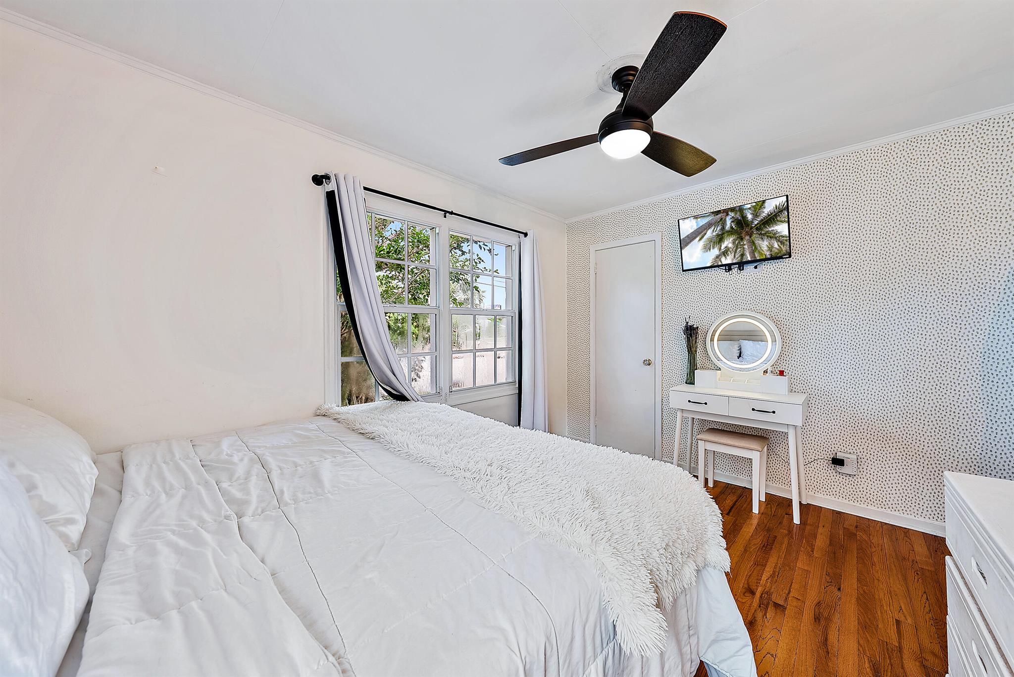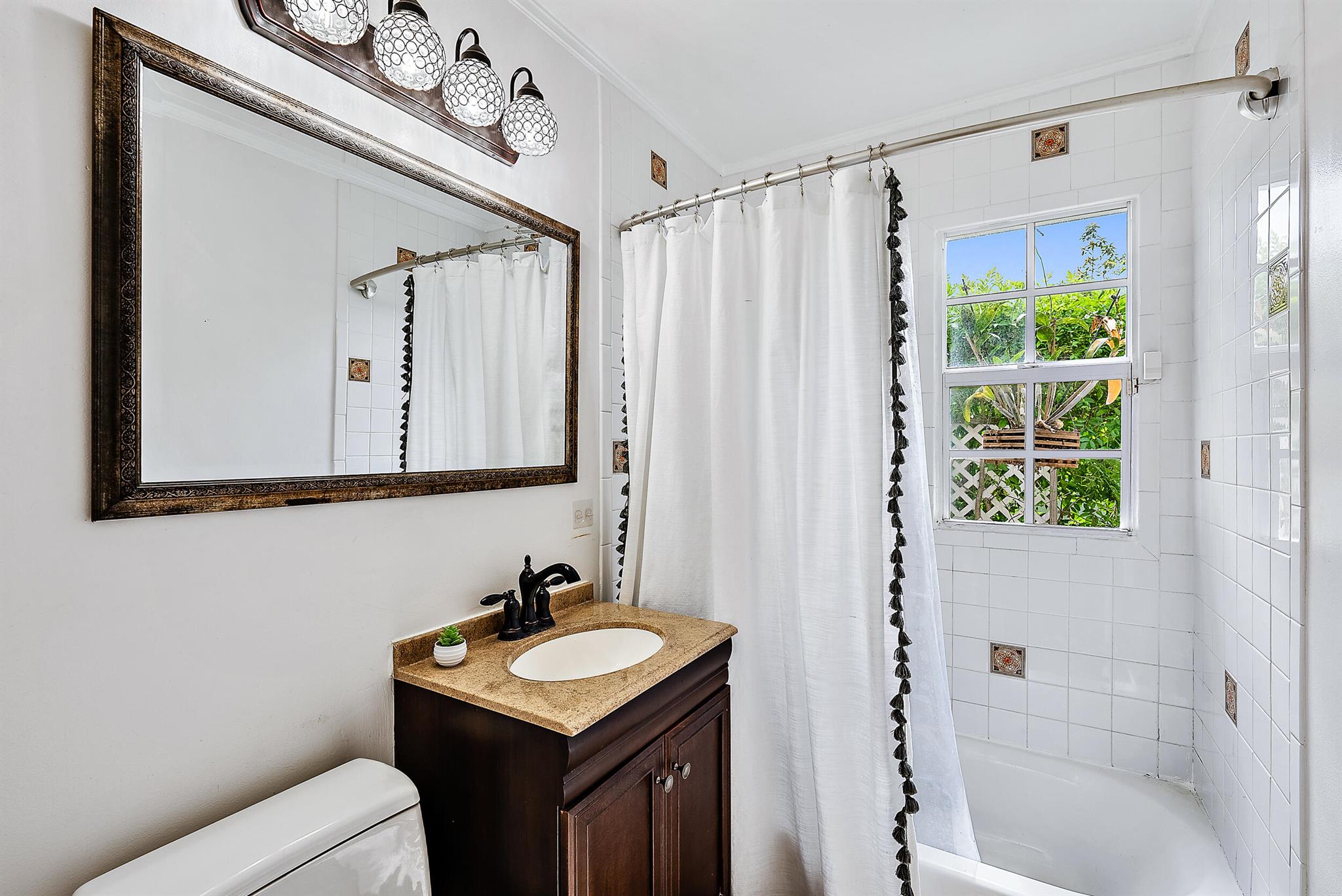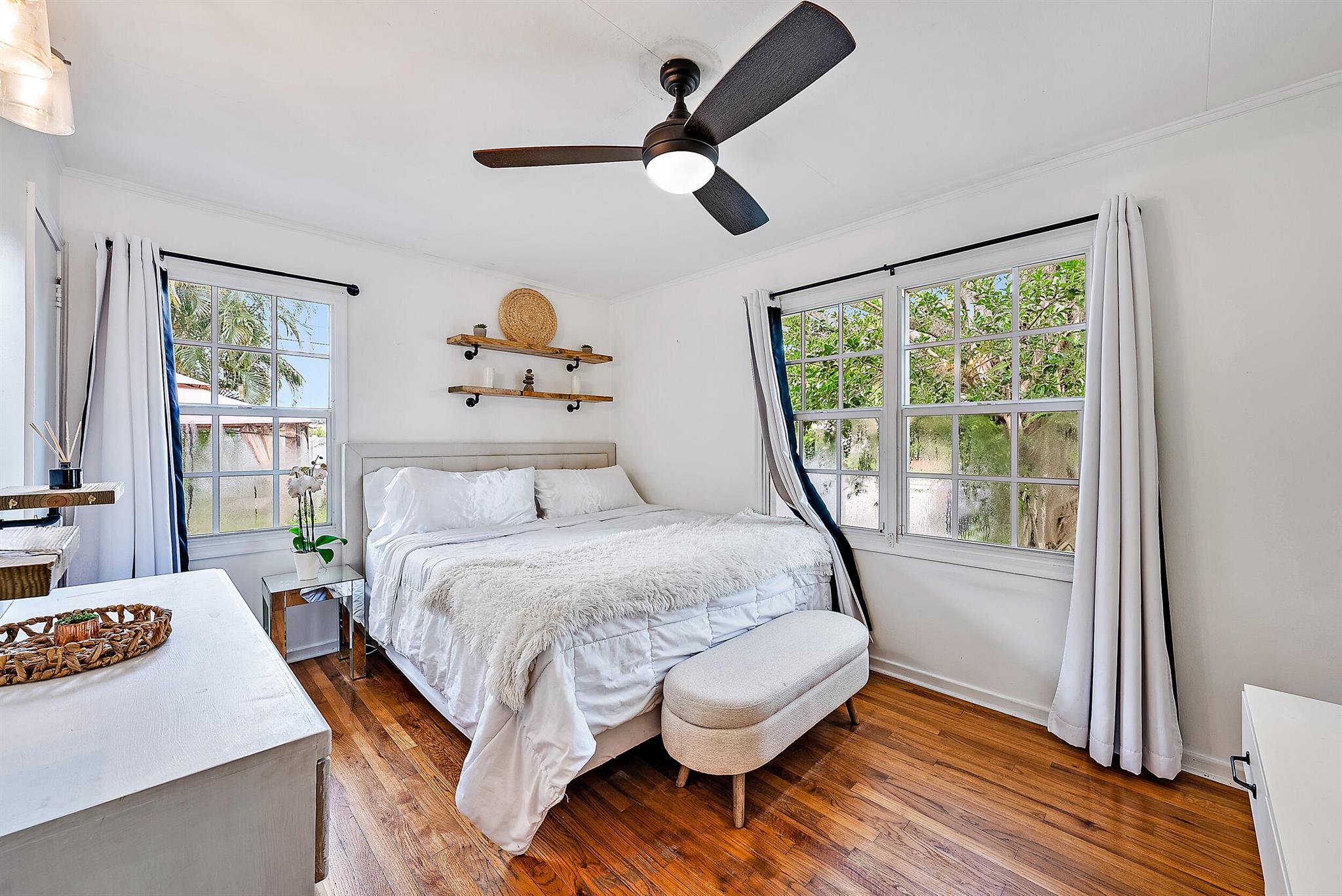 This charming home located in Pineapple Park is a rare find. Brand New AC 2023 and roof (November 2022). The home has an open floor plan with two bedrooms one bathroom. The kitchen is recently updated with pendant lighting, wine fridge, quartz & large butcher block island. Tons of original Old Florida charm with Dade Co. pine hardwood floors and beautiful tropical landscaping. The fenced in back yard is expansive and private, perfect for entertaining.This location is less than a mile from Rosemary Square and PBI airport. Its a short walk to Grandview Market, numerous restaurants, Howard Park, and all that Rosemary Square has to offer. Zoned for Palm Beach Elementary School District.