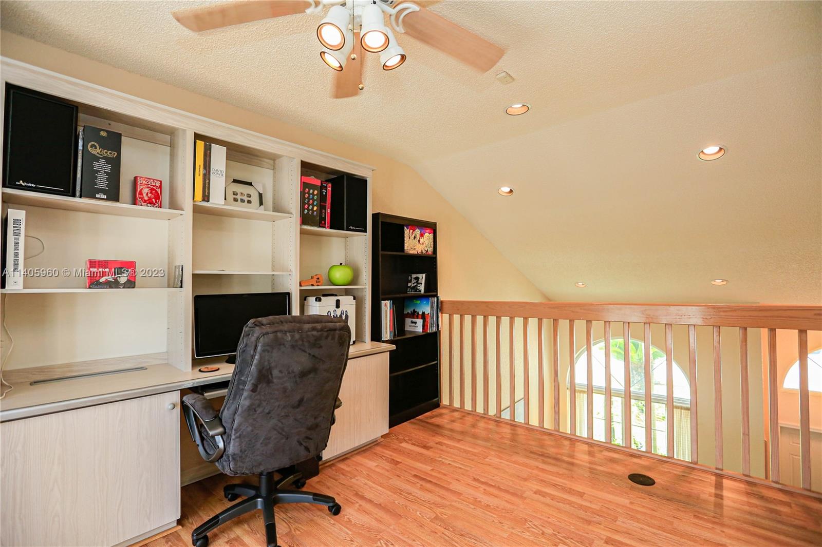Pleasure meets comfort in this pristine condition 2-story home. Well-lit interior features upgraded kitchen and baths. Unique feature-originally built with extended roof and second story concrete block, impact glass windows and doors and wood-stained stairs. Classy wood cabinets and shelves afford additional storage space. Enjoy the warm South Florida sunsets under the veranda w/ retractable awning; or host barbecue nights out back on the covered paved patio. Stamped concrete driveway, walkway and newer roof. Located in a cozy, but charming West Pines neighborhood that offers the good life to all its residents. Please Note that 4th Bedroom was taken as open Loft option. (Kindly refer to the attached Floor Plan or call me for further information).
