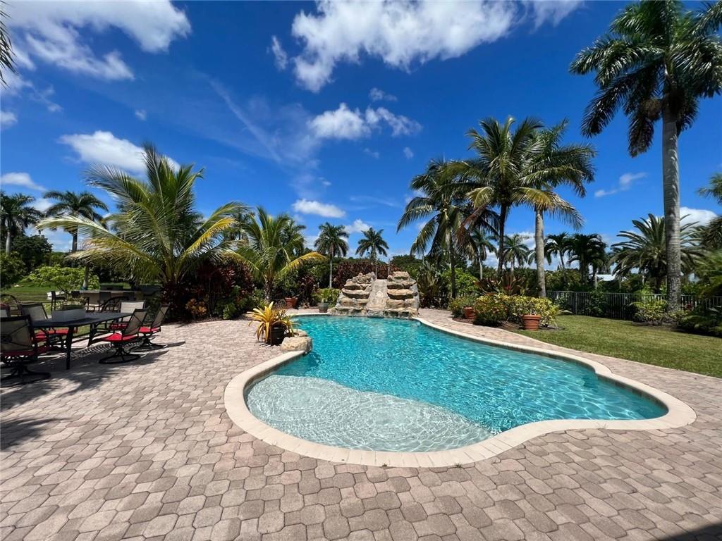 Experience Country's Glen's beauty this is where you would desire to live, a secure neighborhood with a pleasant guard at gate to greet you. One way in and out. As you enter the community there are lakes and waterways that gives you that tranquil feeling. This beautiful home has a Porte-Cochere (covered entry) a lovely landscaped entrance and sits on a one acre lot which is one of the largest lot in the community on water with total privacy with lots of palm trees and the pool area where you will enjoy peace and quiet with water view and no neighbors behind. The home features 4 bed 41/2 bath plus office and 2 patios. Also a wood burning fireplace in the living room. Community offers parks, tennis, basket ball courts and kids play area.