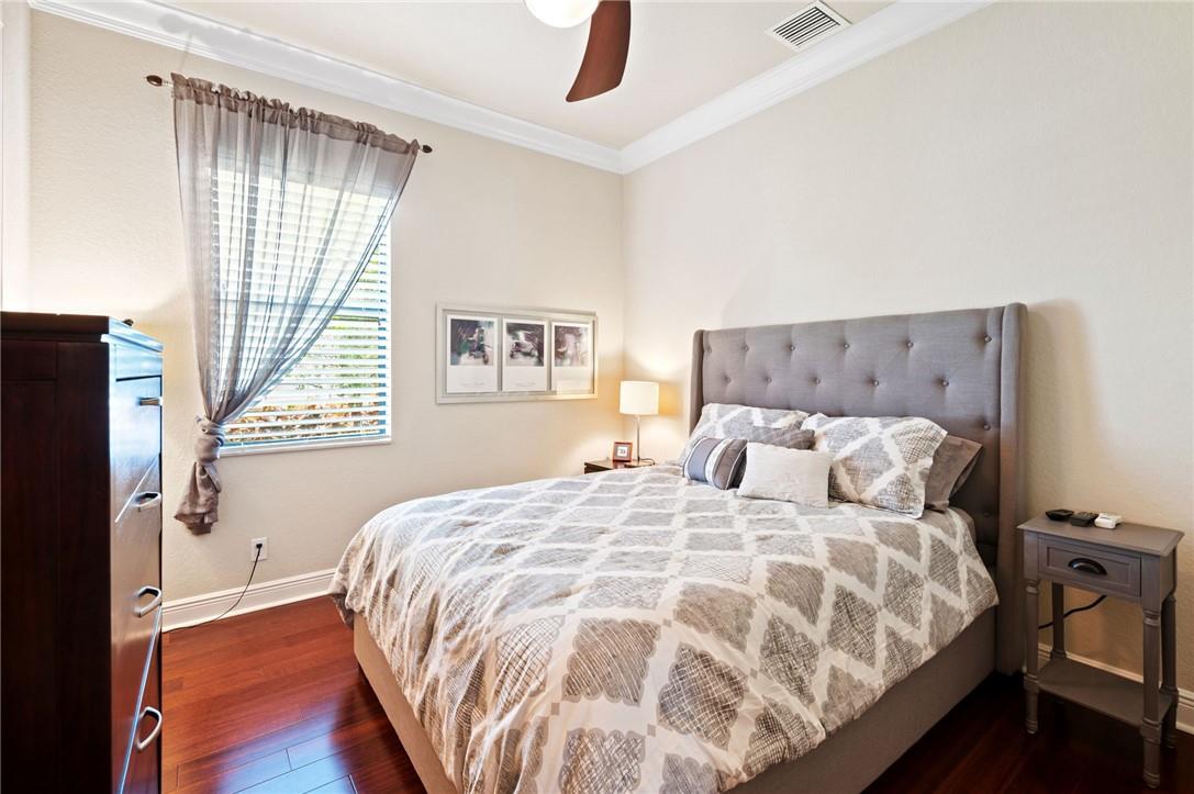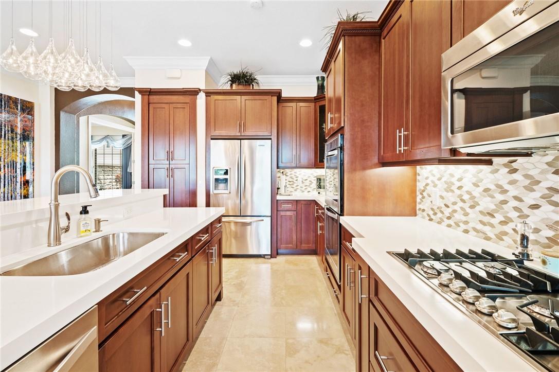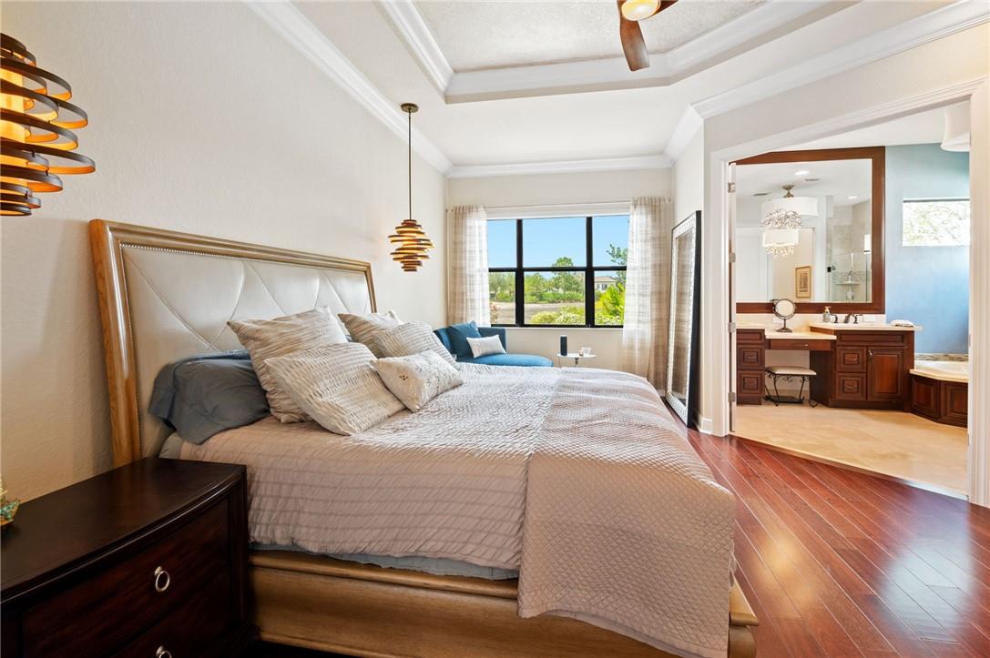 Stunning 2-story, 4 bedroom, 3 bath home located in Parkland Golf and CC. Primary bedroom on 1st floor. 4th bedroom converted to home gym. Water view on the 18th fairway. Recently remodeled gourmet kitchen w/custom wood cabinets, quartz countertops, built in bar w/beverage center & stainless steel appliances, including a double oven. Saturnia marble & engineered hardwood floors. Custom window treatments & impact glass throughout. Custom closets. Whole house generator. Exterior recently painted with new light fixtures. Extra-deep garage with epoxy floor & custom workbench w/built-in cabinetry. Summer kitchen with built-in infrared BBQ & motorized screened-in patio. Best location in Parkland Golf with short walk to amenities. Enjoy access to golf, tennis, pickleball, restaurants, and pools.