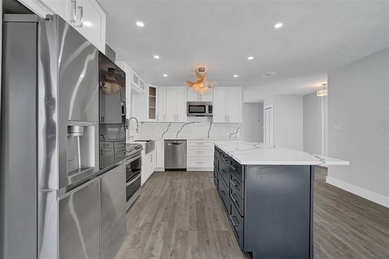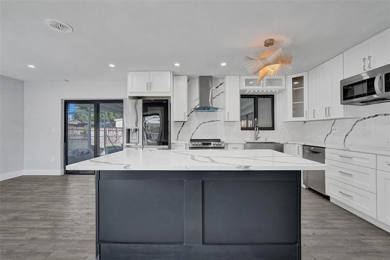 REMODELED HOME with over 1900 sq ft under air. Features: Gourmet kitchen with quartz countertop and backsplash, island with sitting area, high-end stainless steel appliances. Updated bathrooms. Hurricane IMPACT windows and doors. BRAND NEW ROOF. New waterproof vinyl flooring throughout. BRAND NEW Air Conditioner. New washer and dryer. Freshly painted inside and out and adorned with high end finishes. Oversized backyard with enough room for a pool. Too many features to list. No HOA. This is a must see! Please note in the tax role this property states 3 bedrooms however a fourth bedroom was added in the past.