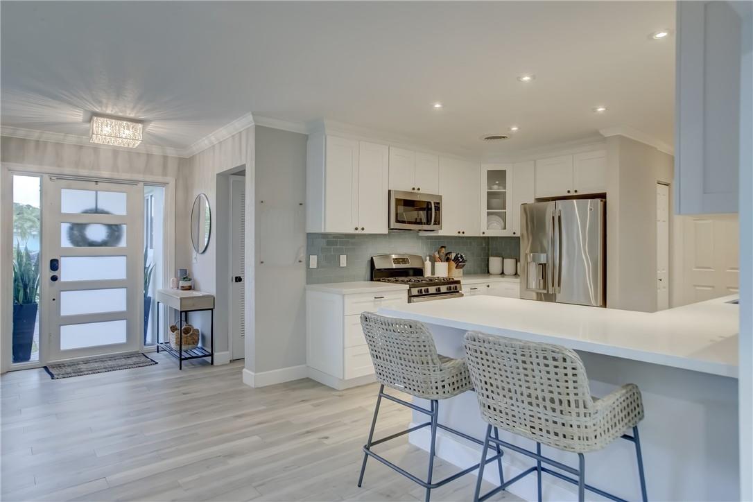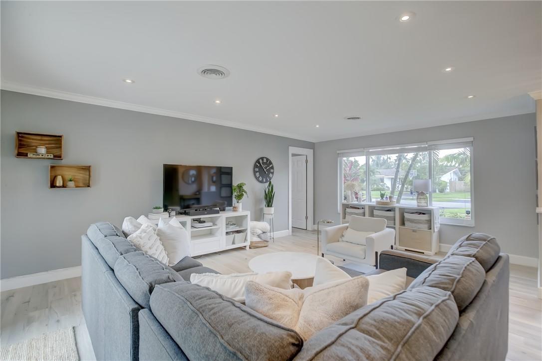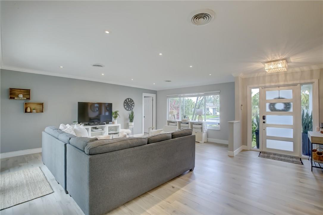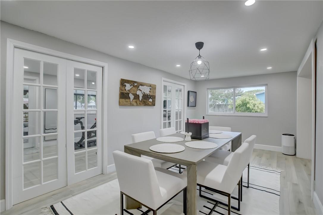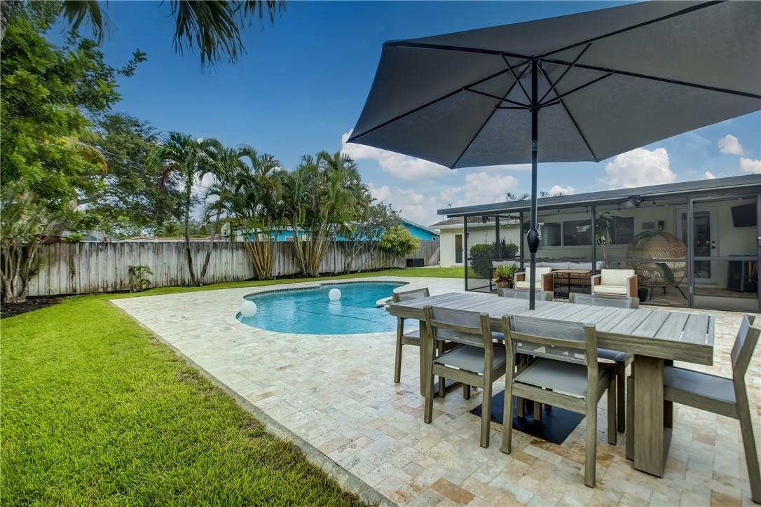 Beautifully updated SFH in Hollywood Hills ready to move in! Open concept living, updated kitchen with SS appliances and tile floors throughout (except 2 guest bedrooms have carpet). Full hurricane protection with impact windows and doors, renovated indoor laundry room, recessed lights, 2015 shingle roof, 2020 HVAC, 2021 tankless hot water heater, 2021 exterior paint, and gorgeous landscaping in front and backyard. Primary suite has walk in closet and cabana bath. Tax roll shows 3 bedrooms but there is an extra bonus room that could be used as a 4th bedroom/play room/fitness room/etc. Circle driveway in front and one car garage and driveway are in the back of the house with access to alley and your fully fenced in yard with POOL! No rental restrictions.