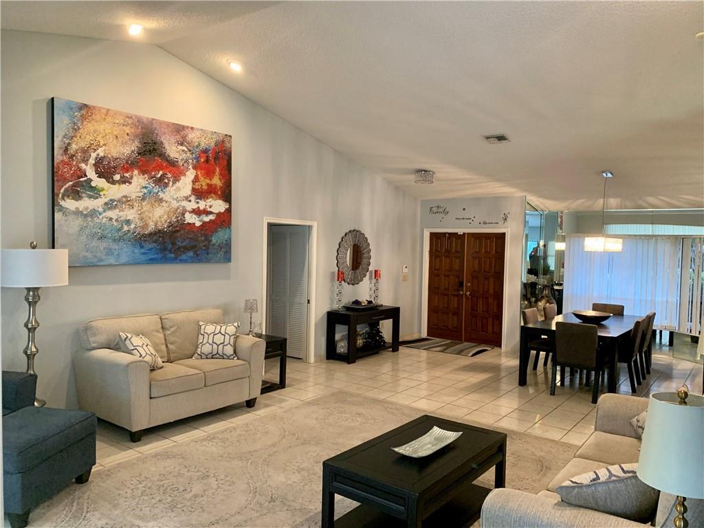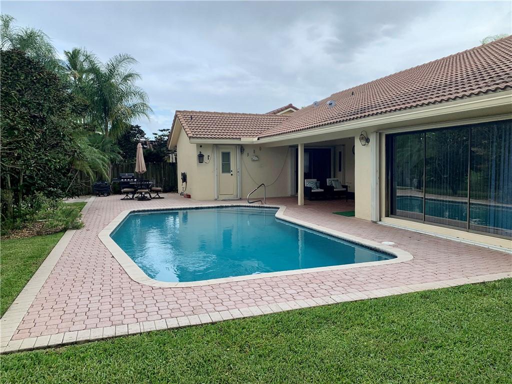 Welcome Home! You'll love this spacious, well-maintained 4 bedroom, 2.5 bathroom home in sought-after Jacaranda Lakes. Entertain guests around the fire pit, just relax on the patio, or float in the pool as you enjoy the calm of the canal view. The private fenced in yard is perfect for the children's play area. Main living areas have tile floors and vaulted ceilings. Huge master with walk-in closets. Renovations include kitchen with new cabinetry and granite counters, updated bathrooms with glass shower doors, and laminate wood floors. Enjoy the peace of mind of a accordion shutters and an alarm system. low HOA fees. Close to major highways, shopping, and dining. Act now; this house won’t last long!