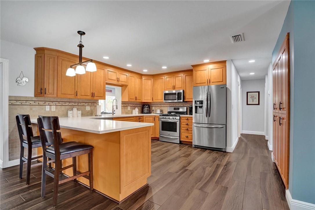 MASSIVE 1/3+ ACRE LOT in the highly desirable Ramblewood neighborhood! Located in a cul-de-sac, this home features HURRICANE IMPACT WINDOWS & DOORS! Wood-look porcelain tile throughout. Kitchen features upgraded cabinets, stainless steel appliances, & GAS POWERED RANGE (propane tank comes with the property). Master bedroom features a large walk-in closet & fully remodeled bathroom w/ 2 sink vanity & separate soaker tub & shower. Guest bedrooms are on the other side of the house & guest bathroom is also beautifully updated! Main roof 2001, flat roof 2022. Gas tankless water heater 4 years old. AC unit 3 years old.