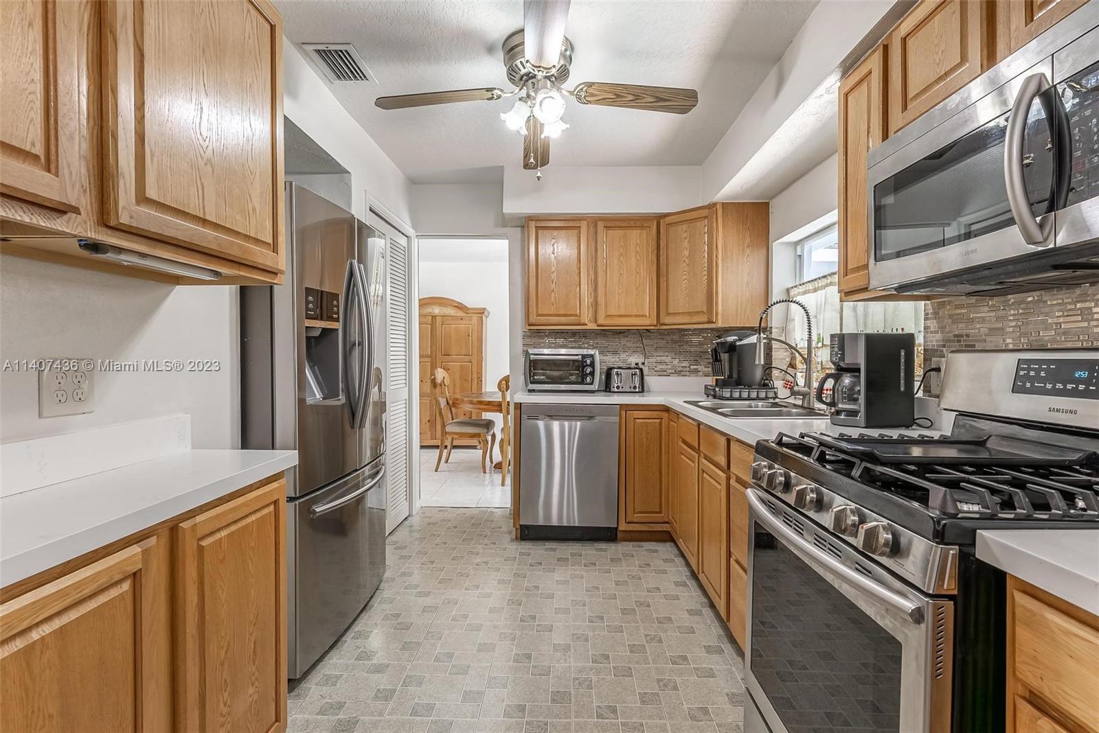 This terrific home has it all!! Three bedrooms, two baths, screened pool/patio, garage, and a large utility shed! Great kitchen with lots of cabinets, new quartz counter tops, gas stove, eat in kitchen, pass through to the pool area, and a family room! Split bedroom plan. Cabana bathroom and French door from dining room and family room to the pool. Fenced back yard. Electrical hookup on side of house for recreational vehicles. The home sits on an oversized corner lot with fruit trees. The owners have taken great care of the property...and it shows! Conveniently located close to lots of shops and restaurants.