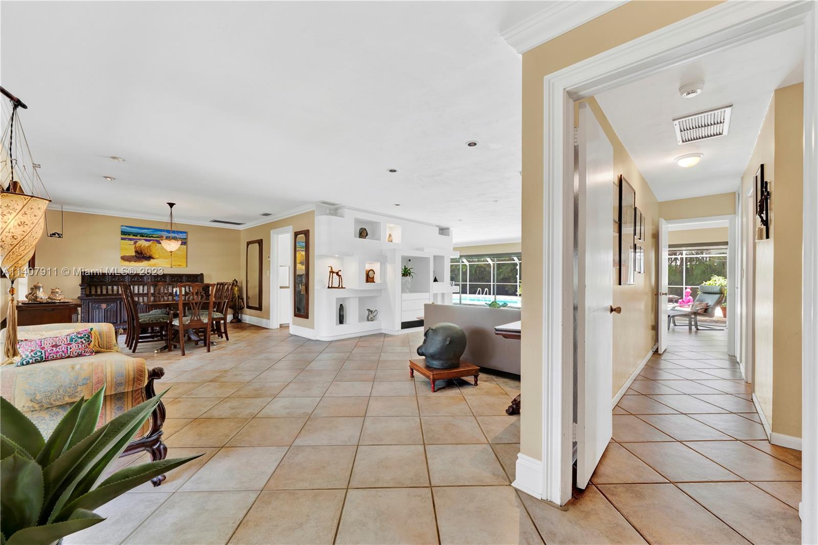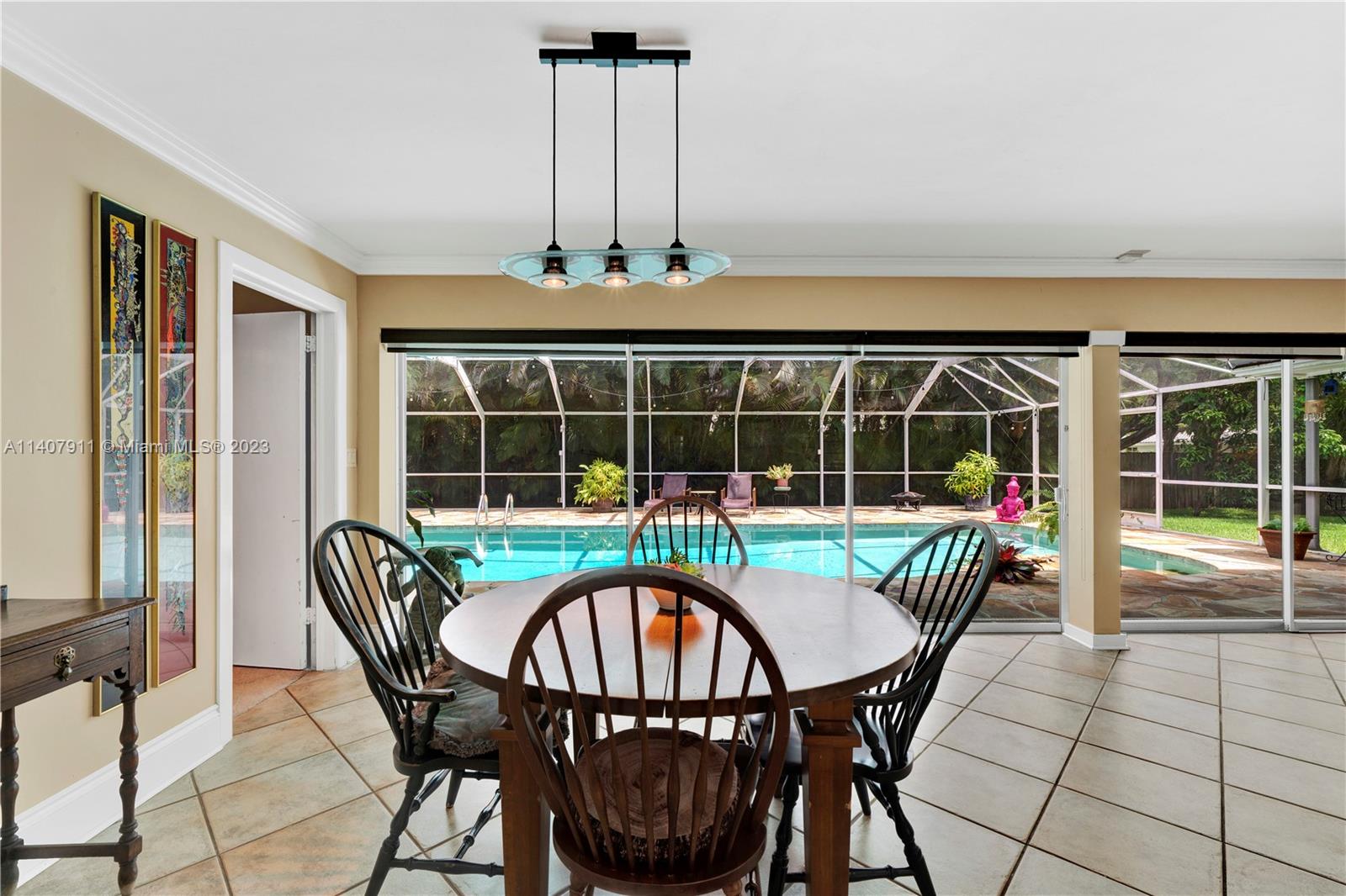 Rarely available, lovingly maintained, and nestled in the sought-after Village of Pinecrest, this corner lot home offers ample space for comfortable living and an idyllic lifestyle. A spacious, open-concept family room, dining room, and eat-in kitchen welcome you to this lovely 4 bedroom plus office/den/3 bath home. Expansive sliding glass doors allow tons of natural light, seamlessly connecting to a large screened pool/patio/oversized yard, creating a serene retreat, and blurring the lines between indoor and outdoor living. With a smart floor plan, fruit trees, 2 car garage, and proximity to top-rated A schools just 2 blocks away, this home combines convenience & charm, with a desirable location. Who is ready to call this fantastic house and neighborhood, home?