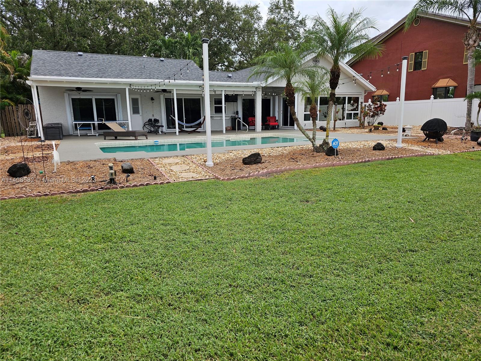 Check out this exquisite Cooper City three bedroom pool home set on an oversized cul-de-sac lot in highly desirable Rock Creek. Top rated K-12 schools nearby. This home boasts high ceilings, impact windows throughout and amazing sunset views. Most recent upgrades include new roof, exterior paint, full guest bathroom remodel, AC, LED ceiling lighting, updated kitchen, water heater, Tesla charger, gorgeous tropical landscaping, AND SO MUCH MORE! Garage has been professionally converted into 2 bedrooms w/ central A/C. Seller will have contractor convert back to 2 car garage at buyer's request. TV and sound system in patio, along with the TV in the kitchen, stay with the house! This home has been beautifully maintained and amazingly upgraded for you and your family to live in comfort!