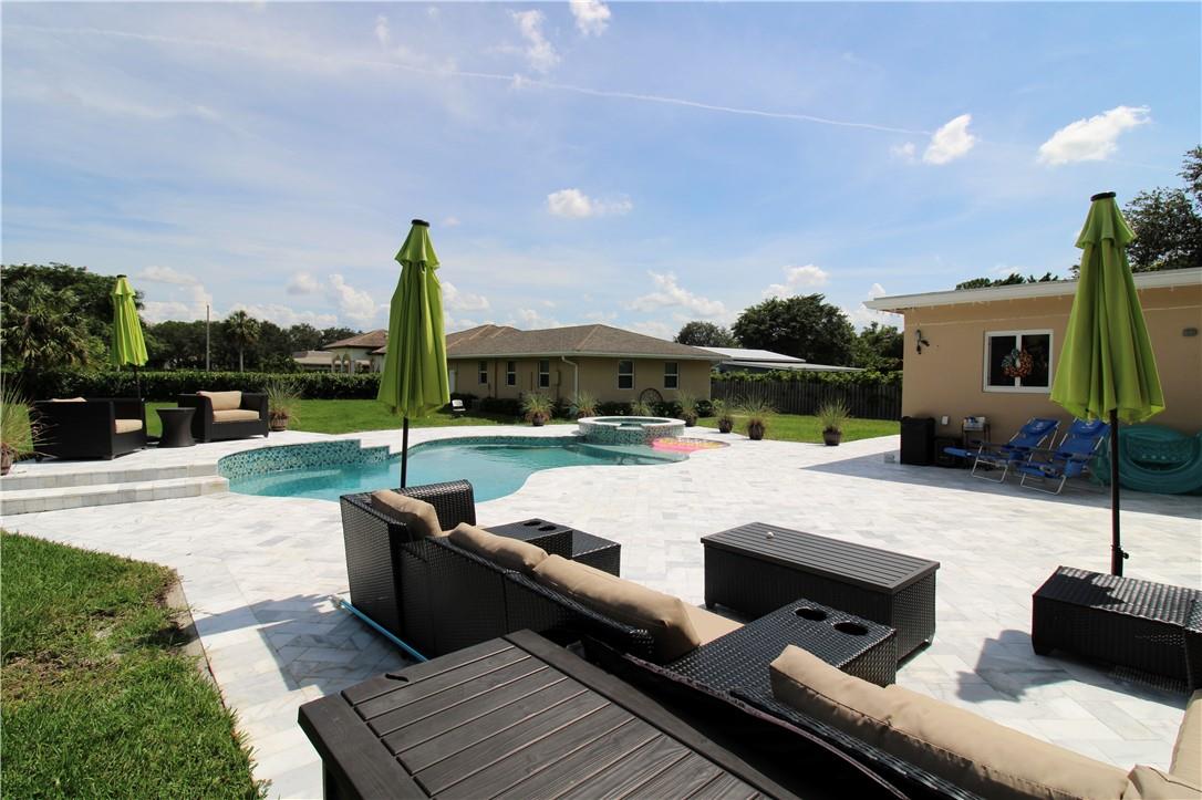 Welcome to your beautiful meticulously cared for ranch home on nearly an acre of land with no HOA. The 4/3 bed-bath count is divided between the main house and guest house. The main house (3beds/2baths) has upgrades and beautiful amenities throughout. The expansive yard in front and back is perfect for children and pets and provides privacy as well. Pool was recently finished just a few years ago. The guest house at the rear of the property is a modern upgraded 1/1 home with full kitchen and washer/dryer-perfect for in-laws, extended stay visitors, family, or as an income property. Don't miss out on the opportunity to make this beautiful home yours. All measurements/property data are believed to be accurate but should be verified by interested parties.