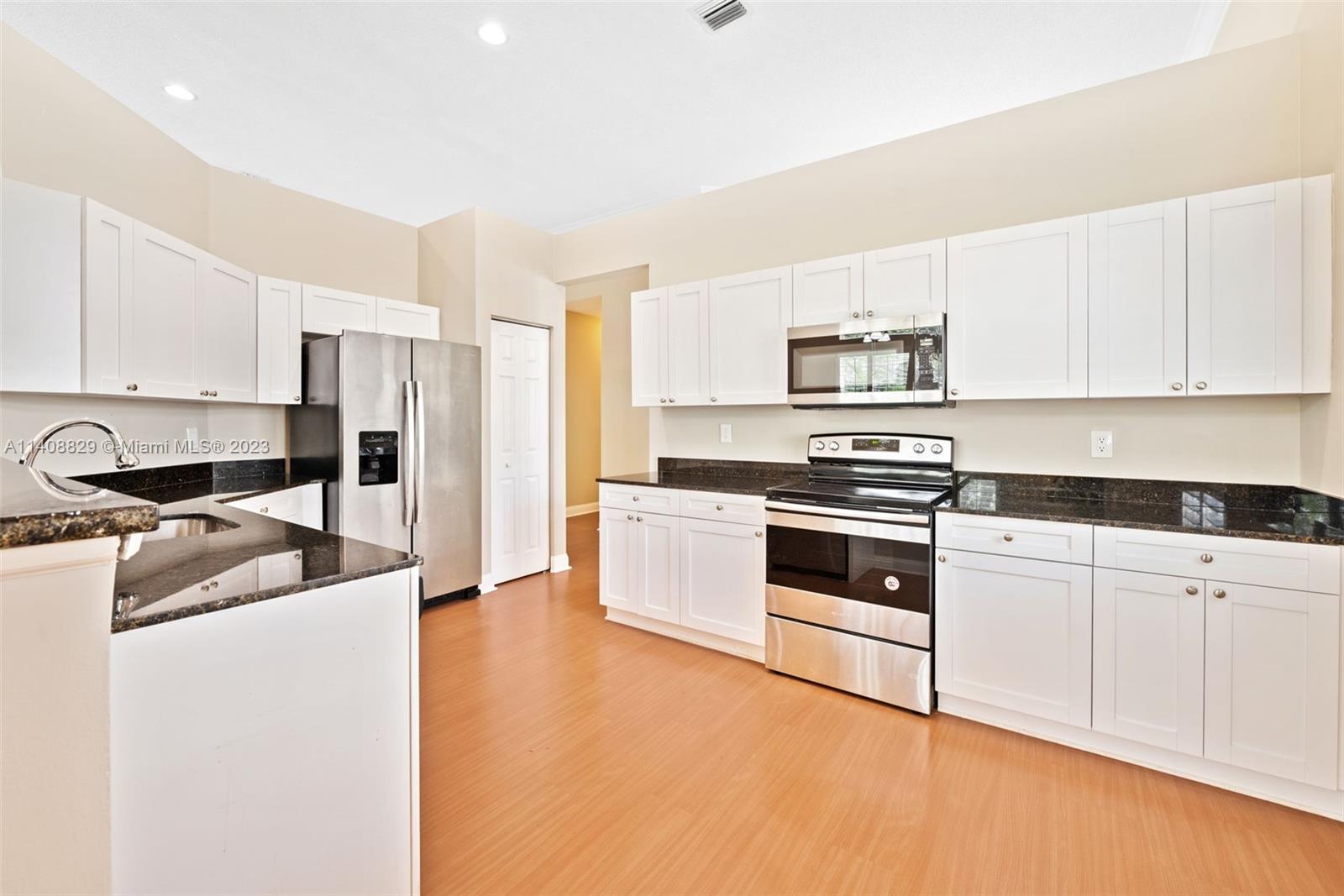 The Island at Weston is waiting for you! This beautiful 4 bedroom and 2.5 bathrooms boasts a new roof installed on May 2023 to help you save on insurance costs. Gated community within minutes of the Weston Town Center, recessed lighting throughout the living area, updated kitchen and bathrooms with granite countertops, stainless steel appliances, and white shaker cabinets add a touch of elegance and functionality to the home. Natural lighting, french doors in the living area, plantation shutters, and a big yard make the perfect combination to enjoy the Florida lifestyle at its best!