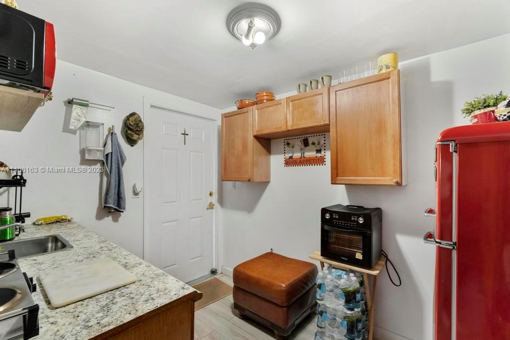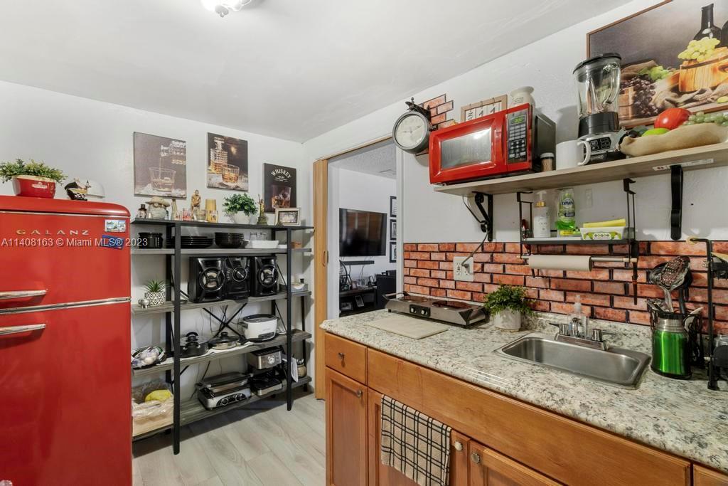 This beautifully renovated home features an open floor layout, ceramic floors throughout the house, a modern kitchen, updated bathrooms, guest quarters, a patio fully equipped to provide family and friends get-togethers South Florida style, and much more. Great neighborhood with 2 grade A schools at walking distance; located near the Hard Rock Casino, shopping centers, and just minutes to the turnpike/highway. Hurry and make this house your home! Note: Undercounter wine cooler is not included in the sale. Only the refrigerator in the kitchen is included in the sale.