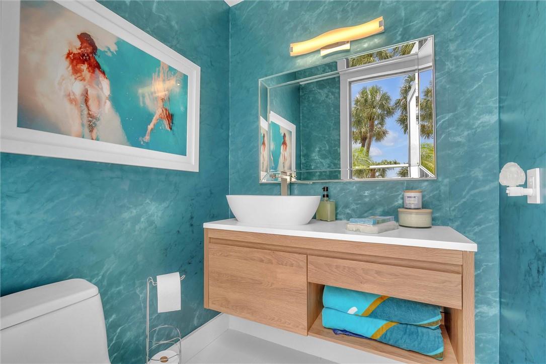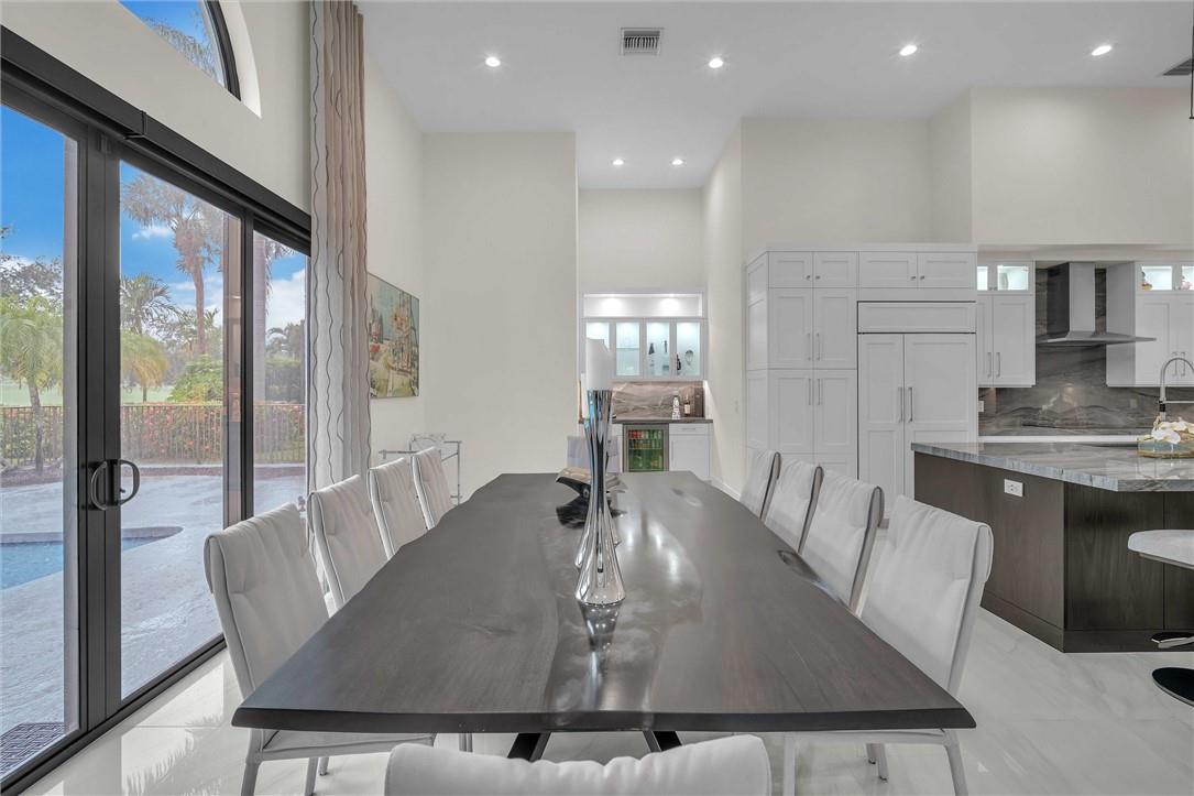 Furnished remodeled 3-bedroom pool home with no steps. Furniture was selected by a professional designer. Impact windows & doors. Large gourmet kitchen. White 2x4 porcelain tiles throughout main living areas. Open floor plan that is great for entertaining. Bar with cooler built-in. Luxurious wine room with refrigerated wine wall. High ceilings throughout Great room. Primary Bedroom is very spacious. Primary bathroom has dual sinks, free standing tub to incredible walk-in shower with amazing decorative tiles. 2.5 bathrooms inside & cabana bathroom outside. Oversized backyard with refinished pool and breathtaking views of the golf course. 2 car garage & side golf cart garage. Roof 12 years old. House is being sold furnished. Artwork, Sculptures, Accessories & Wine are not included in sale.