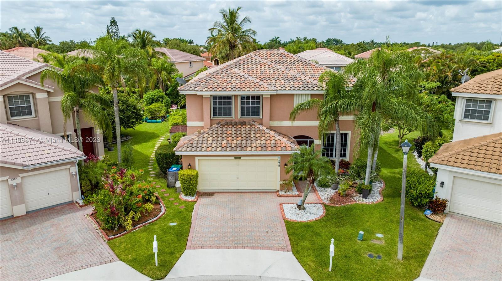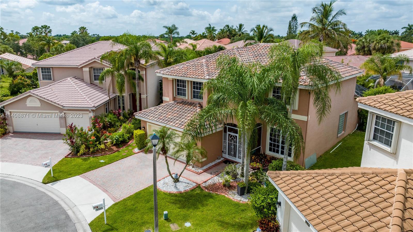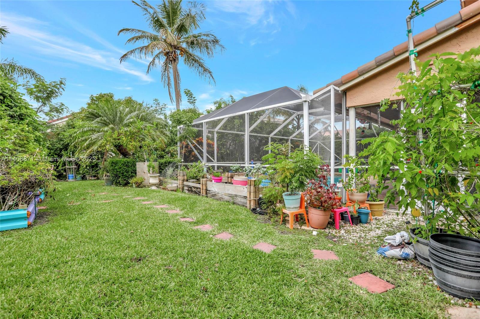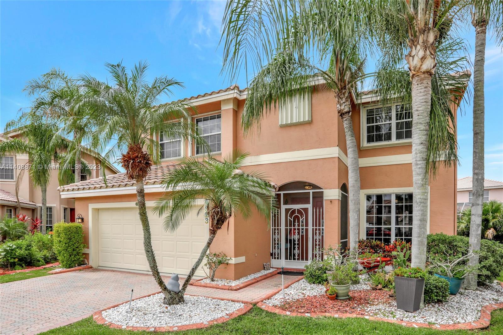 Great opportunity to live in a spacious 2-story home with an amazing oversized culdesac lot for someone who loves outdoor living & is perfect for kids or gardening...Quick closing is available to move in before school starts. This carpet FREE home features tile & woodlike floors throughout, a brand NEW ROOF in November 2022, one of the two air conditioners new, a large screened pool, a summer kitchen, hurricane panels & accordions for the windows & a once of a kind very large side yard. The flexible floor plan offers a living area, dining area, separate family room, and optional 5th bedroom which is currently used as a huge sitting room off the primary suite. Enjoy this gated community with tennis and a community pool with a new front gate & new playground equipment soon to be installed.