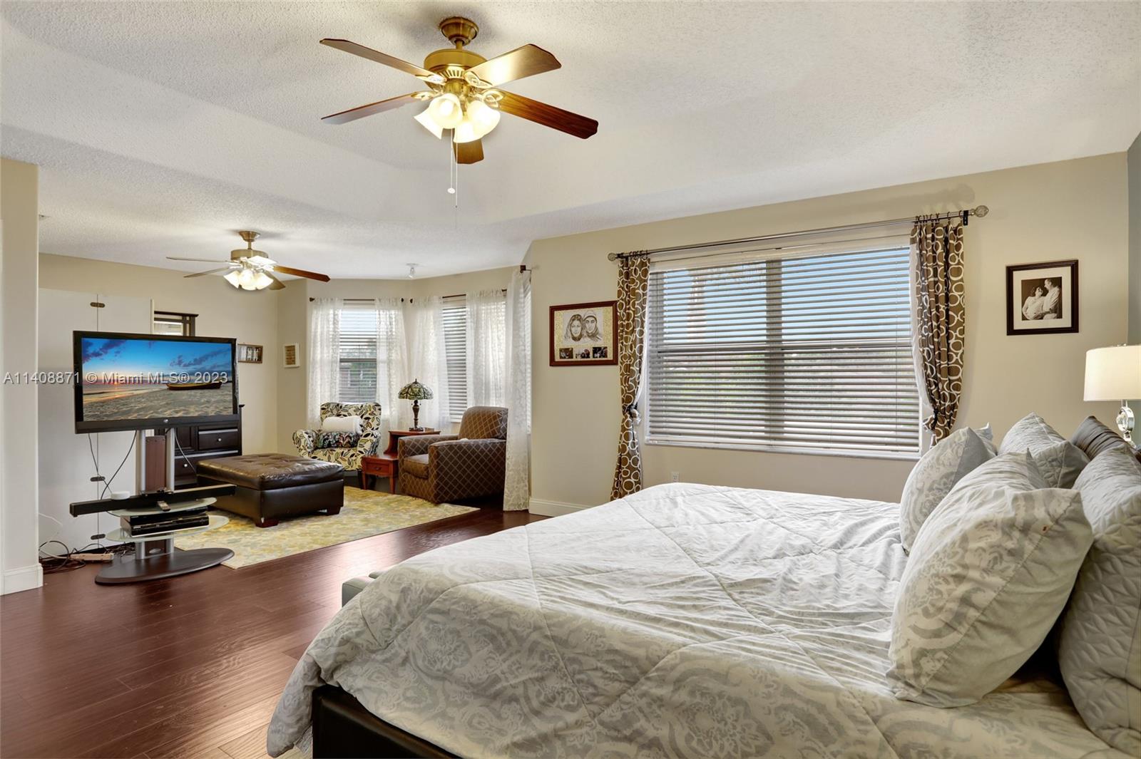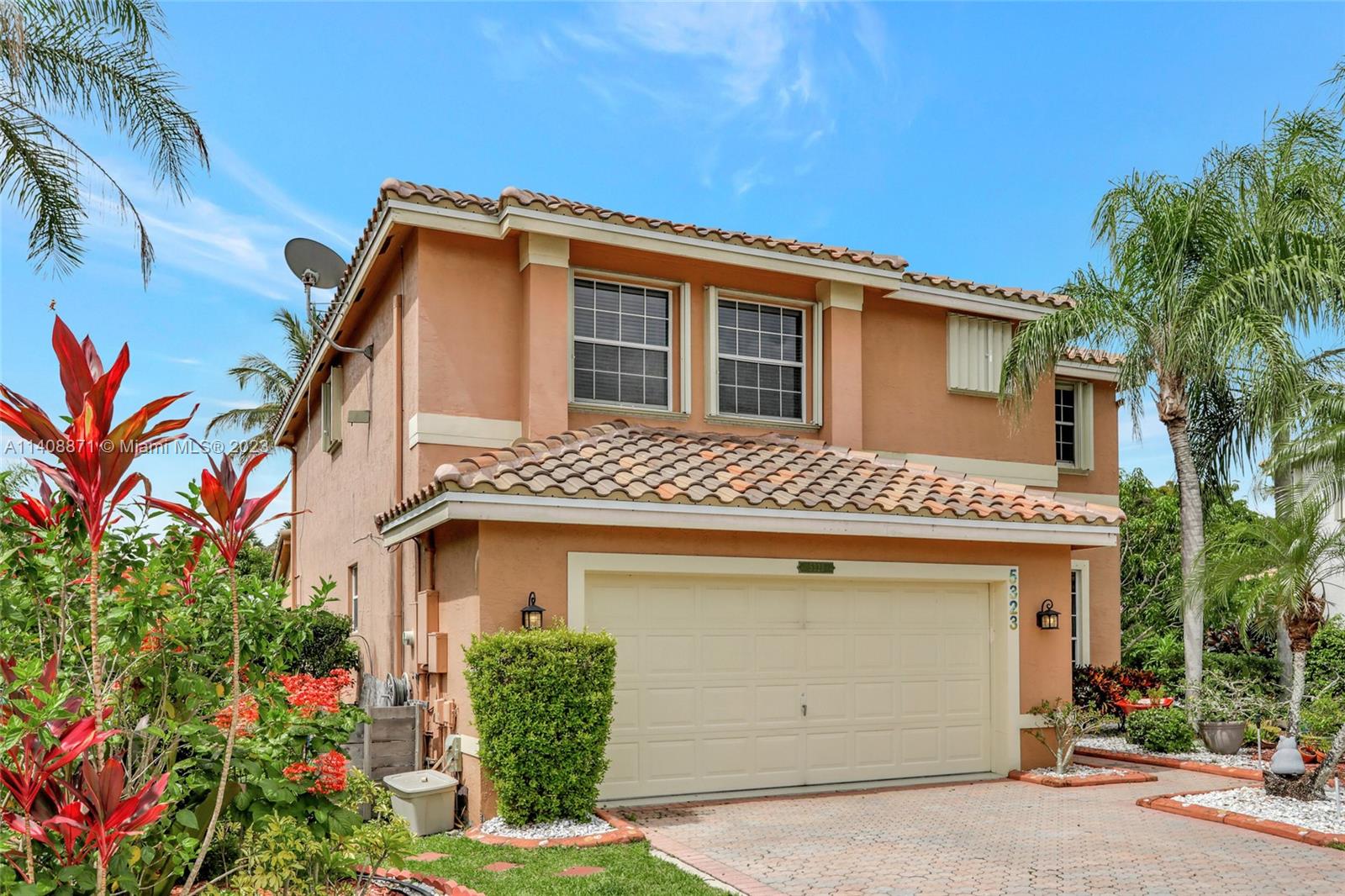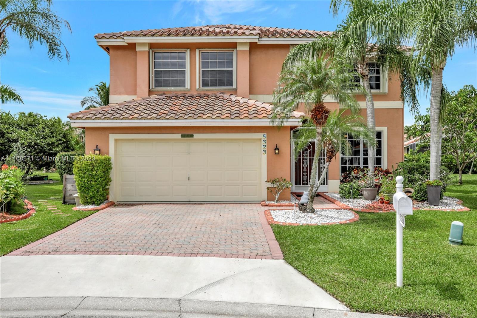 Great opportunity to live in a spacious 2-story home with an amazing oversized culdesac lot for someone who loves outdoor living & is perfect for kids or gardening...Quick closing is available to move in before school starts. This carpet FREE home features tile & woodlike floors throughout, a brand NEW ROOF in November 2022, one of the two air conditioners new, a large screened pool, a summer kitchen, hurricane panels & accordions for the windows & a once of a kind very large side yard. The flexible floor plan offers a living area, dining area, separate family room, and optional 5th bedroom which is currently used as a huge sitting room off the primary suite. Enjoy this gated community with tennis and a community pool with a new front gate & new playground equipment soon to be installed.