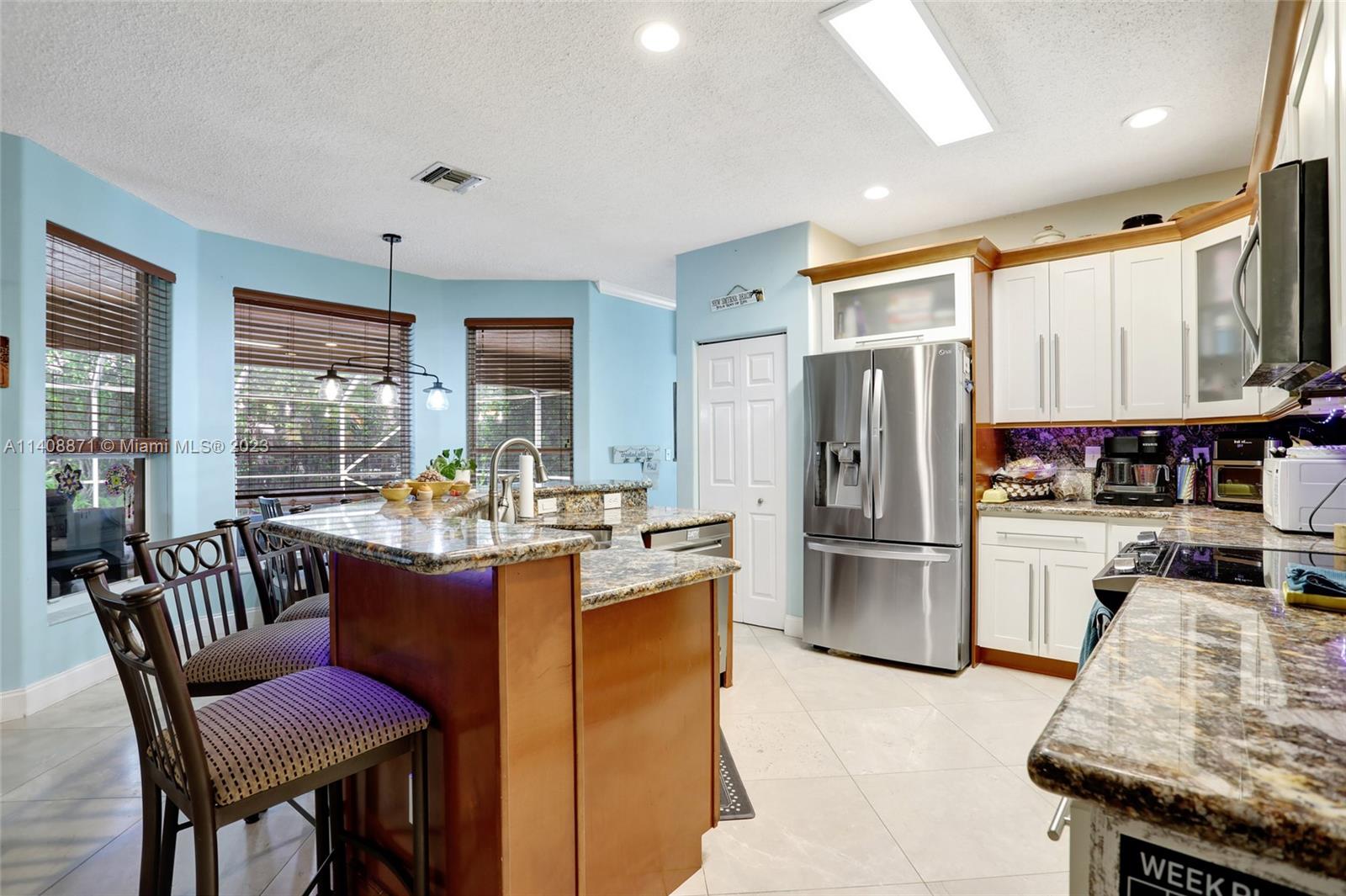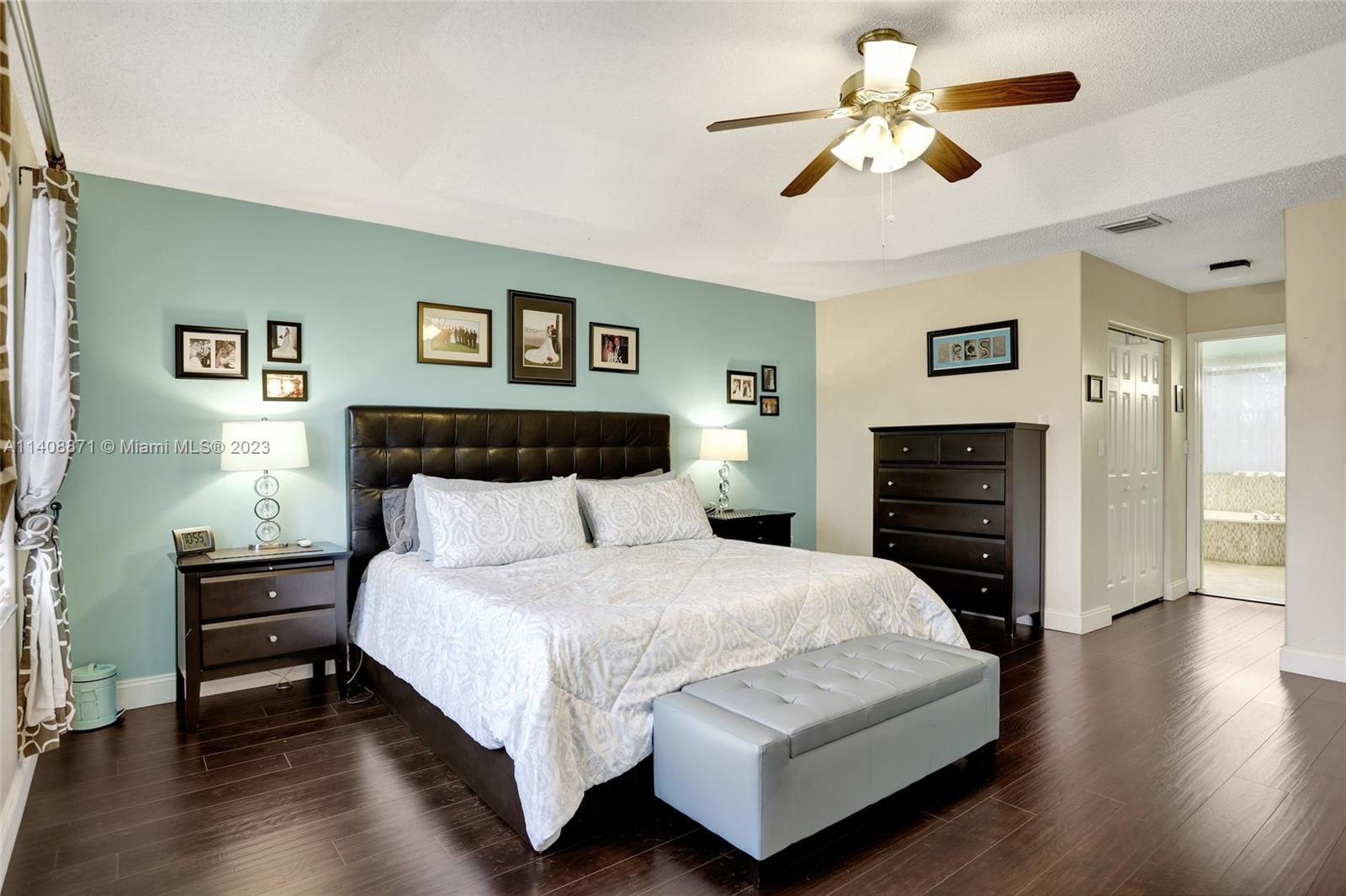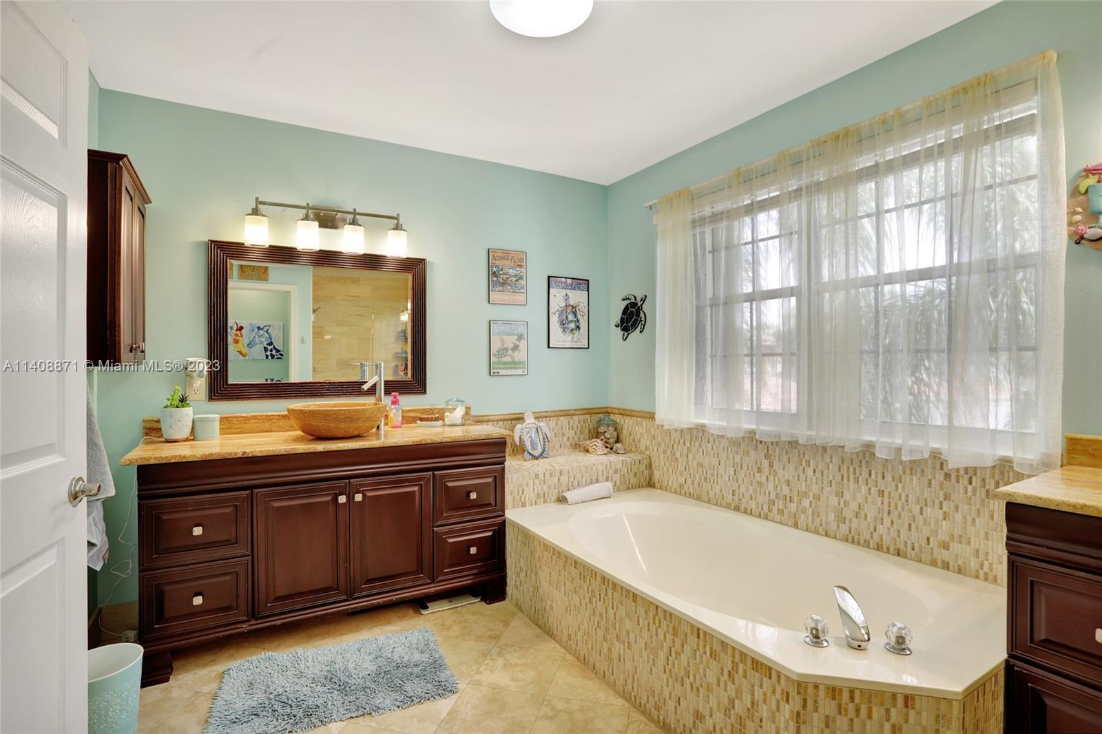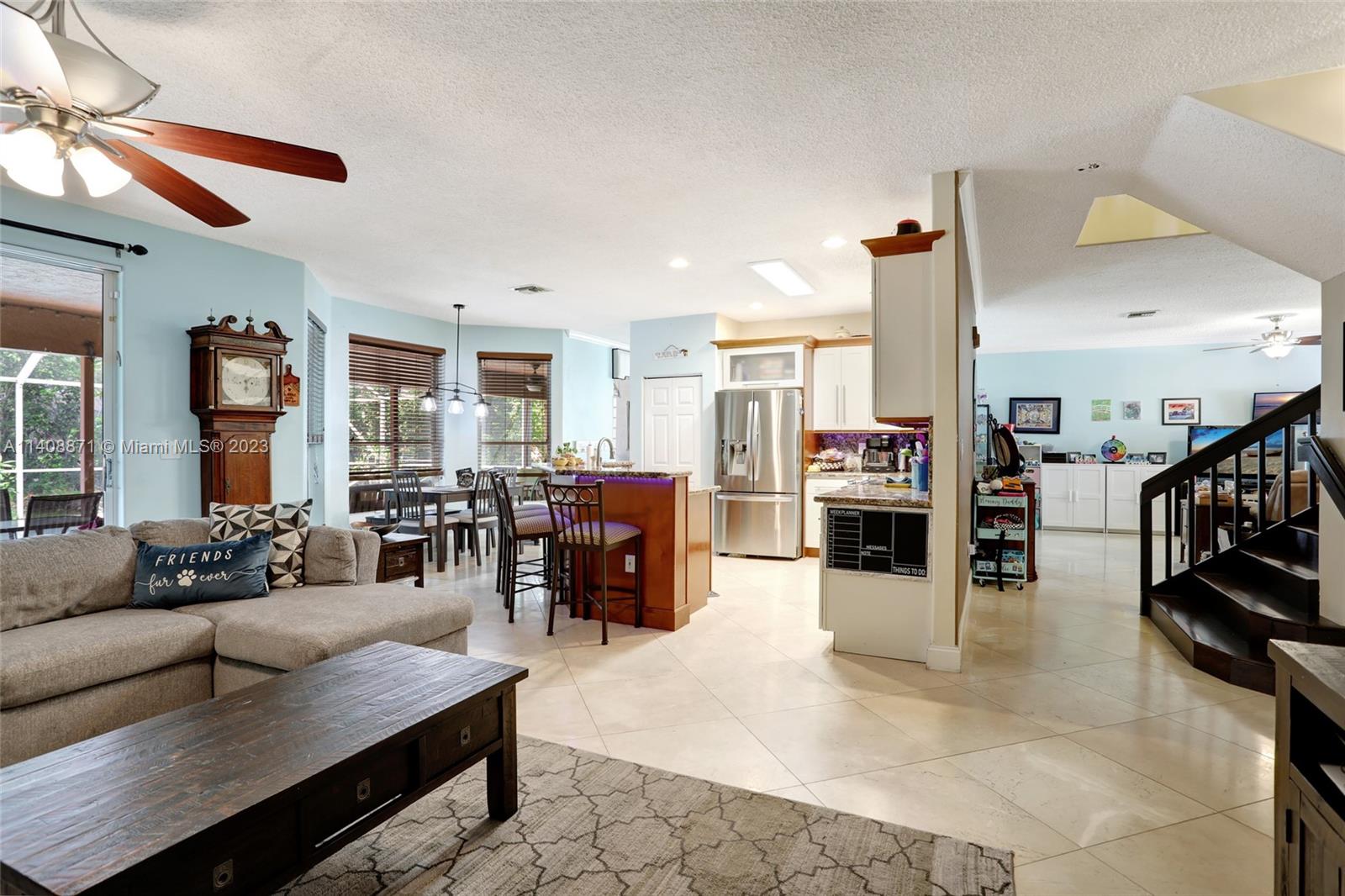 Great opportunity to live in a spacious 2-story home with an amazing oversized culdesac lot for someone who loves outdoor living & is perfect for kids or gardening...Quick closing is available to move in before school starts. This carpet FREE home features tile & woodlike floors throughout, a brand NEW ROOF in November 2022, one of the two air conditioners new, a large screened pool, a summer kitchen, hurricane panels & accordions for the windows & a once of a kind very large side yard. The flexible floor plan offers a living area, dining area, separate family room, and optional 5th bedroom which is currently used as a huge sitting room off the primary suite. Enjoy this gated community with tennis and a community pool with a new front gate & new playground equipment soon to be installed.