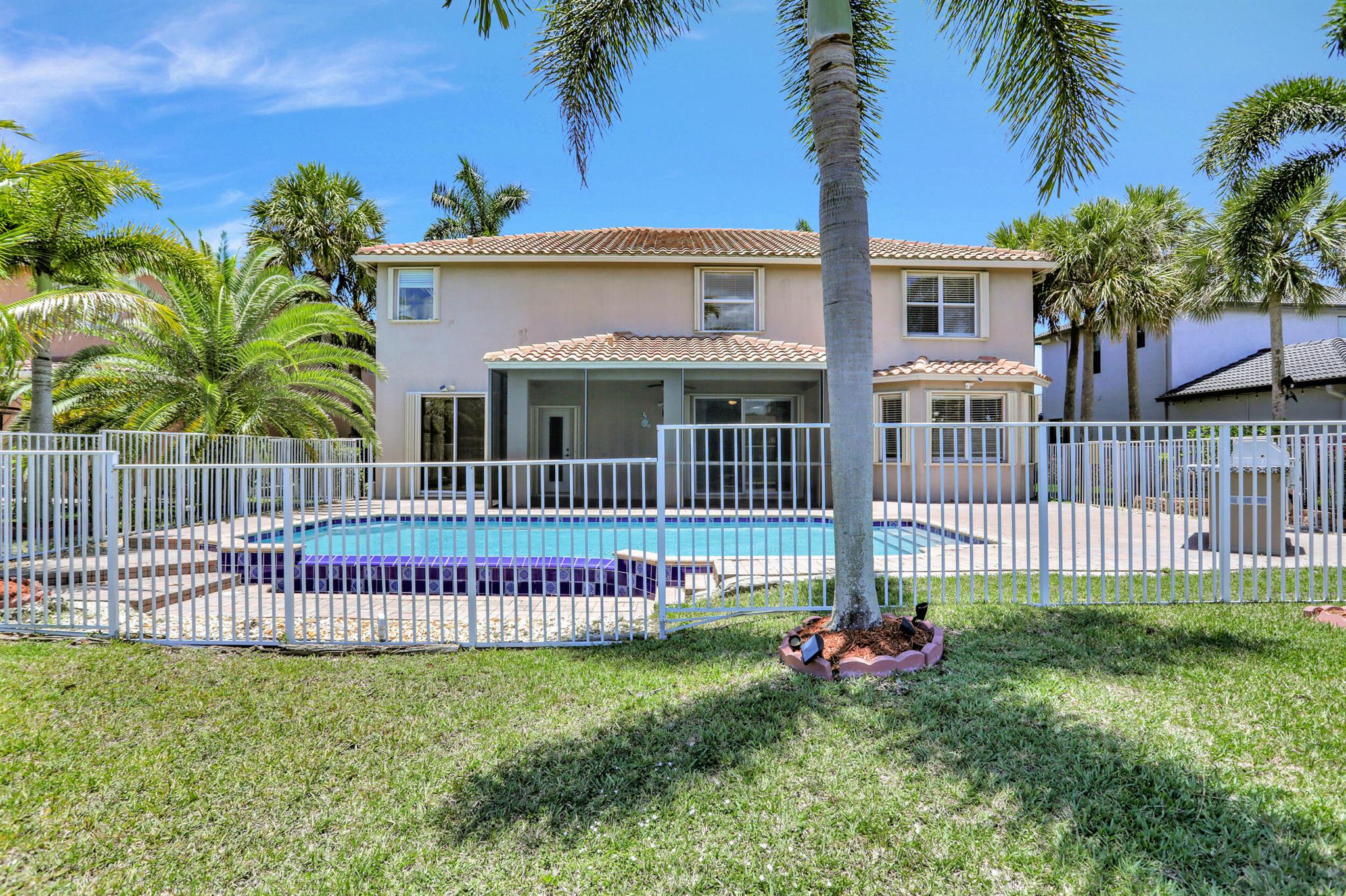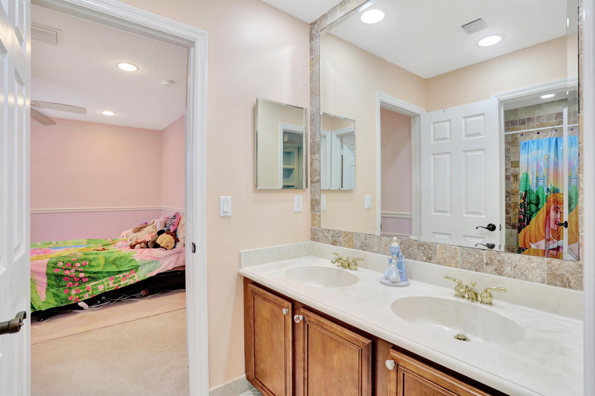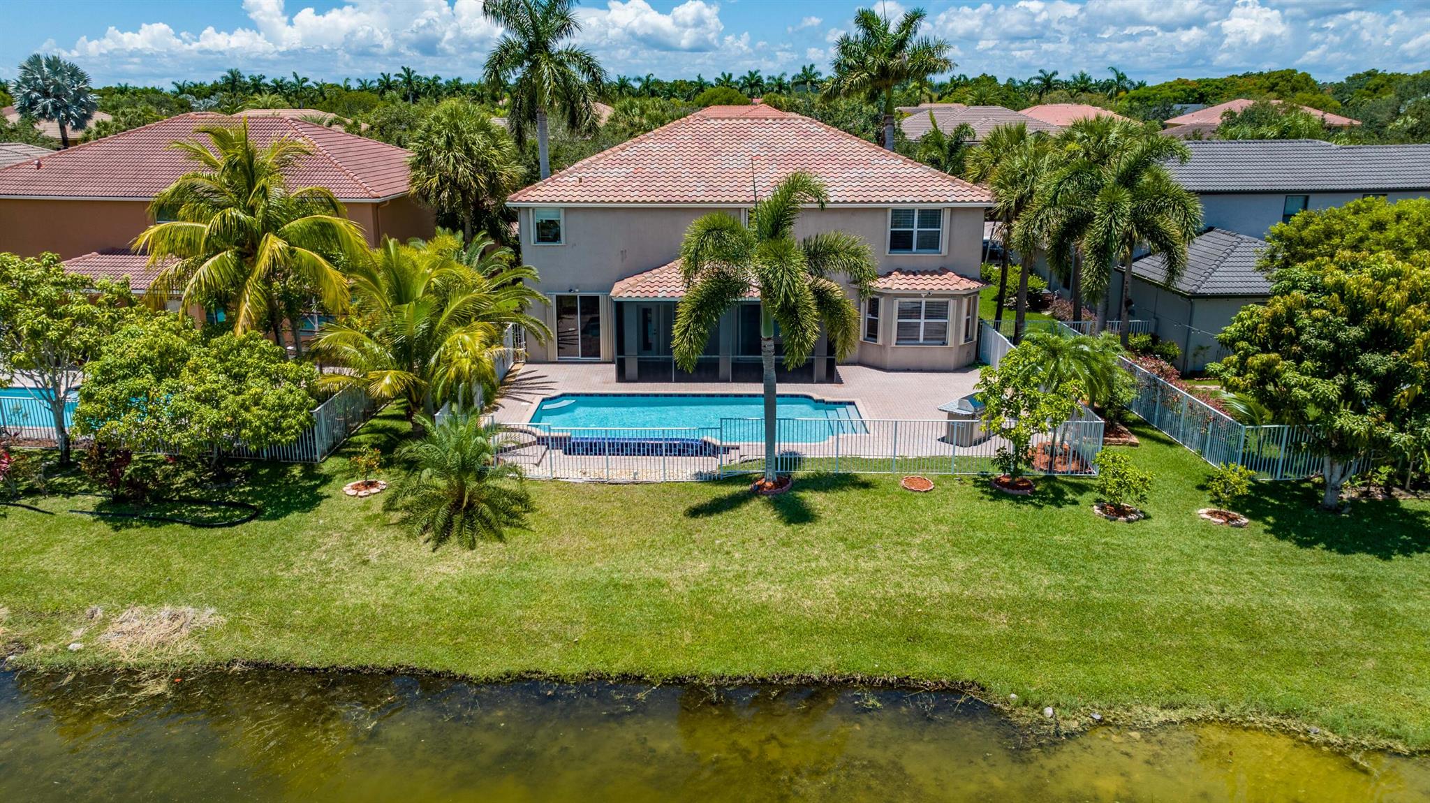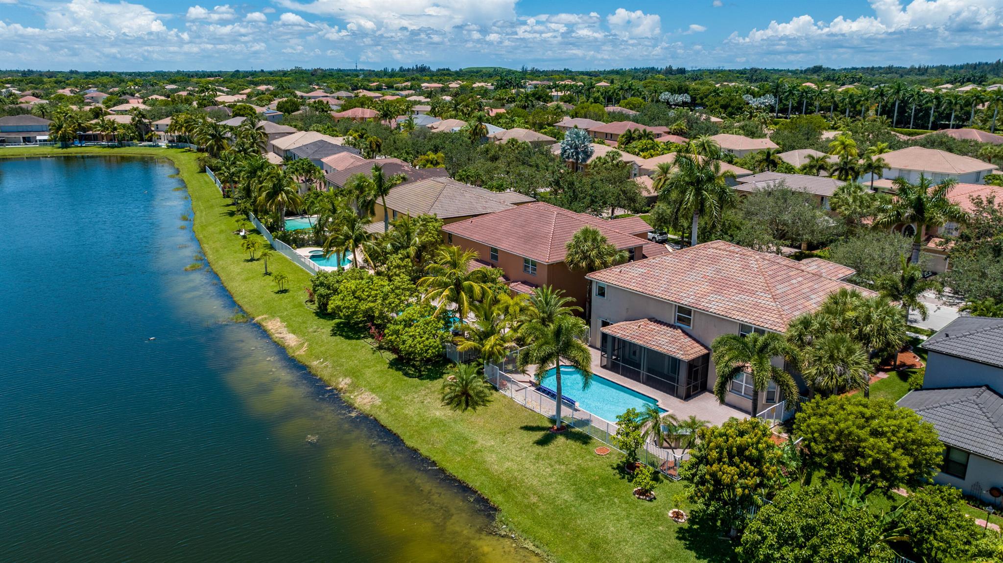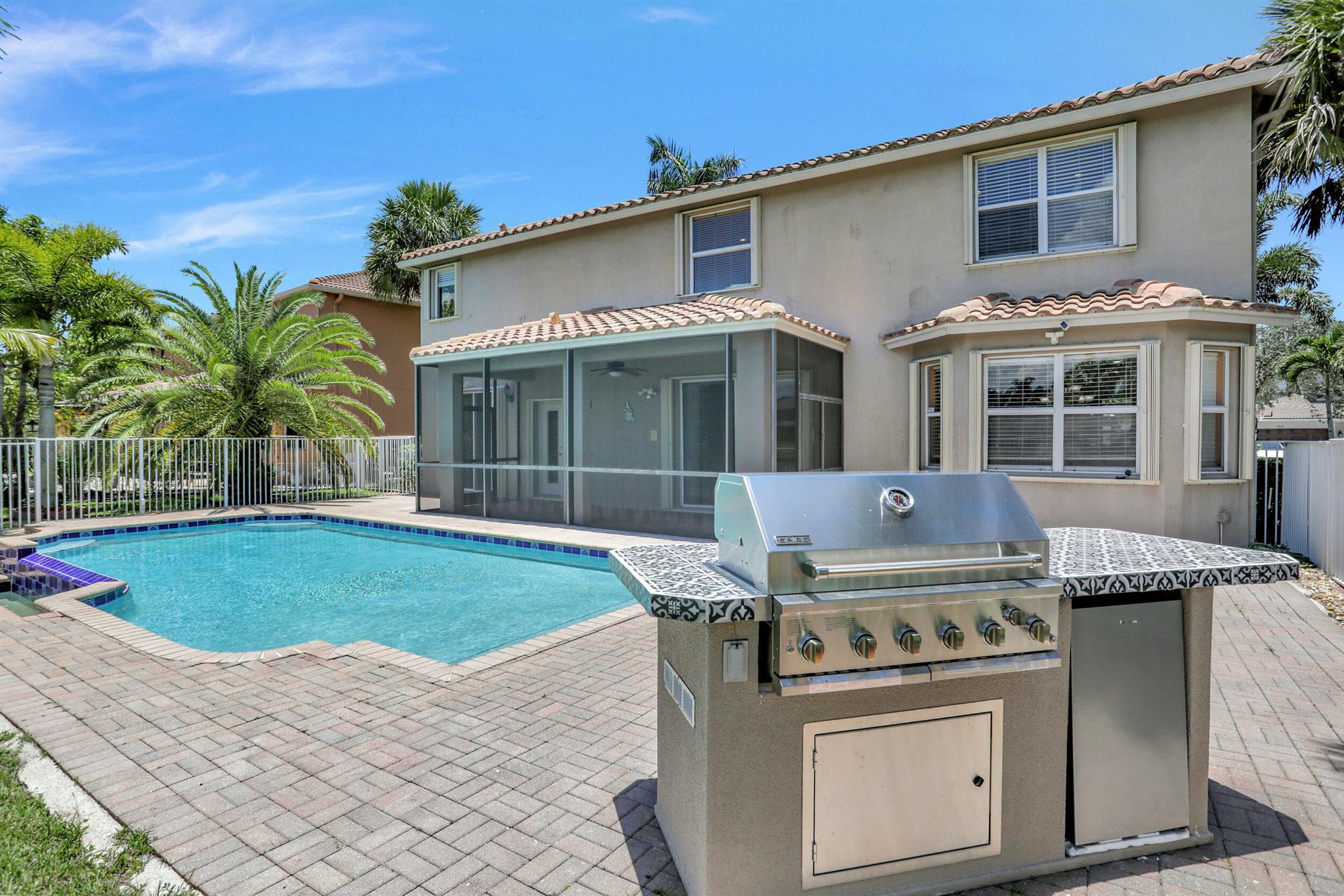 Take this opportunity on this amazing property when you enter you will find the open feeling layout along with the voluminous ceilings and porcelain tile throughout. The renovated kitchen w all new black stainless appliances opens to the breakfast and family area with built in large window bench that over looks the patio and lake. Family room with built in shelves, formal dining room & living room. Home has 5 BR + Loft w built in office area w/desk and built in bookshelves..The master (on 2nd fl) has a huge sitting area with two walking California style closets, a redone Master bathroom with tub/jacuzzi, There is a BR on first floor w it's on suite full bath, walk in closet and sliding glass door that opens to patio & lake. Upstairs is Jack & Jill type BRs (one w/built in shelves, and a