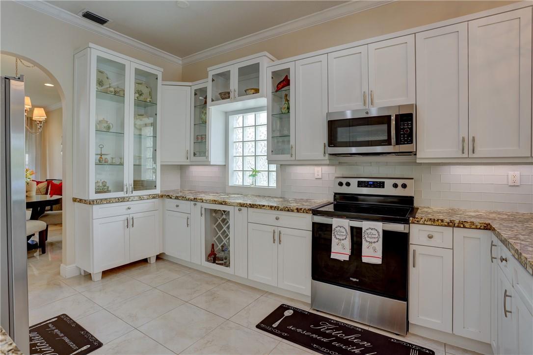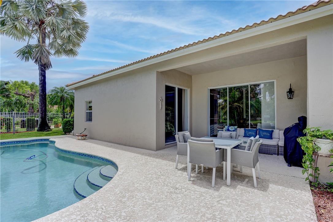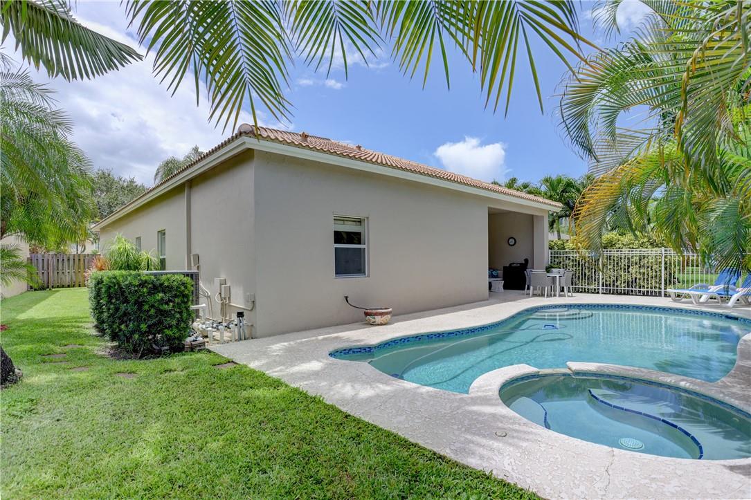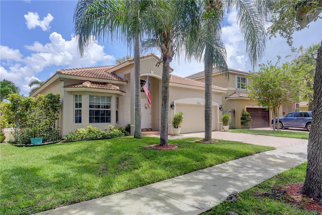Meticulous modern home with salt water pool and Canal awaits your family. Relax in the backyard with pool overlooking the Fresh Water Canal which gives complete privacy. The landscaping is breath taking. Located in the prestigious community of Emerald Estates featuring 24 hours guarded entrance, fitness center and community pool. This home shows like a model. Enjoy this one story, 3/2 with the 4th bedroom used as a sitting area/office in the master bedroom. The kitchen showcases new stainless-steel appliances and granite; crown molding throughout and beautiful light fixtures. *New Roof 2022, A/C unit 2022, exterior painted 2022. Hurricane shutters and much more!!! Residents enjoy Emerald Estates Park and A+ schools. Some furniture negotiable. Come and see today. This won't last.
