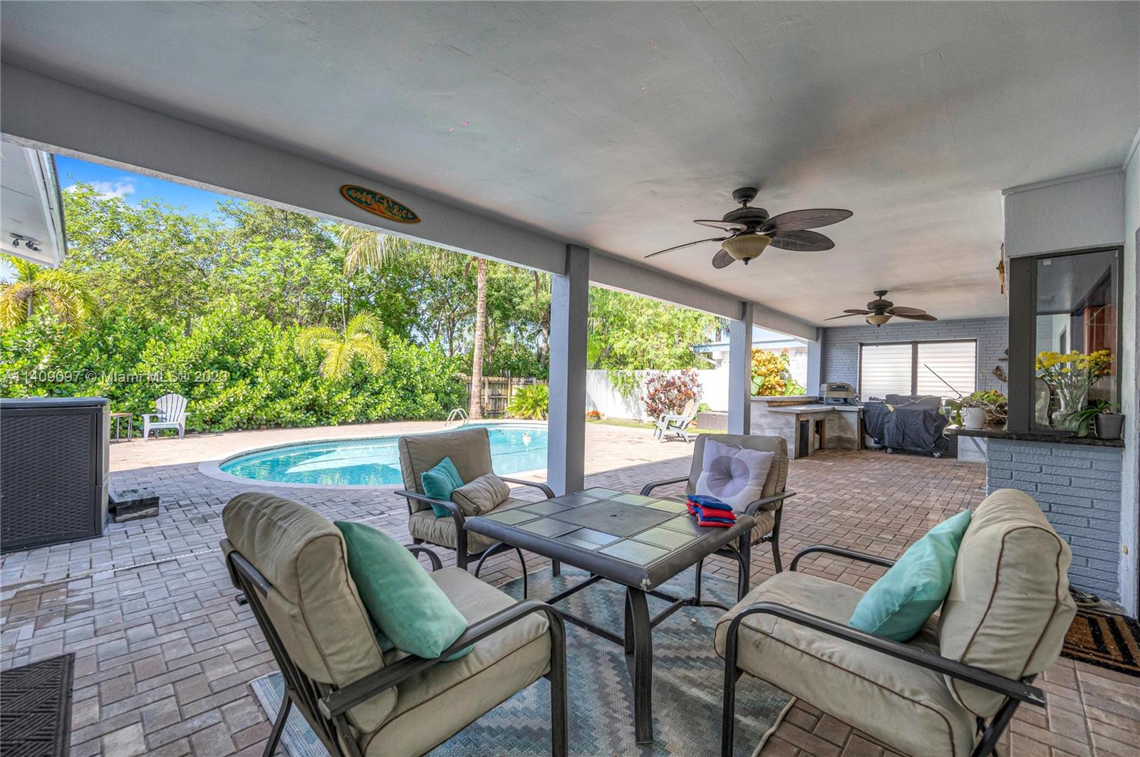 Extremely Well Maintained 3/2 in Quiet, Hollywood Neighborhood. Built-Out Garage Bringing Total Under Air to over 2300sf. New Roof, Impact Windows and other Hurricane Protection throughout the Home, Pool Area Remodeled with New Pavers, Stainless Steel Appliances, Beautiful Wood Laminate Floors in the Bedrooms, Master Bath Upgraded, Pass Through to Pool from Kitchen Great for Entertaining, Patio with Outdoor Sink and Refrigerator and Perfect Place for BBQ. Newer AC, Refrigerator, Dishwasher and Washer. Close to 95, Restaurants, Houses of Worship, and Shopping. Good Schools.