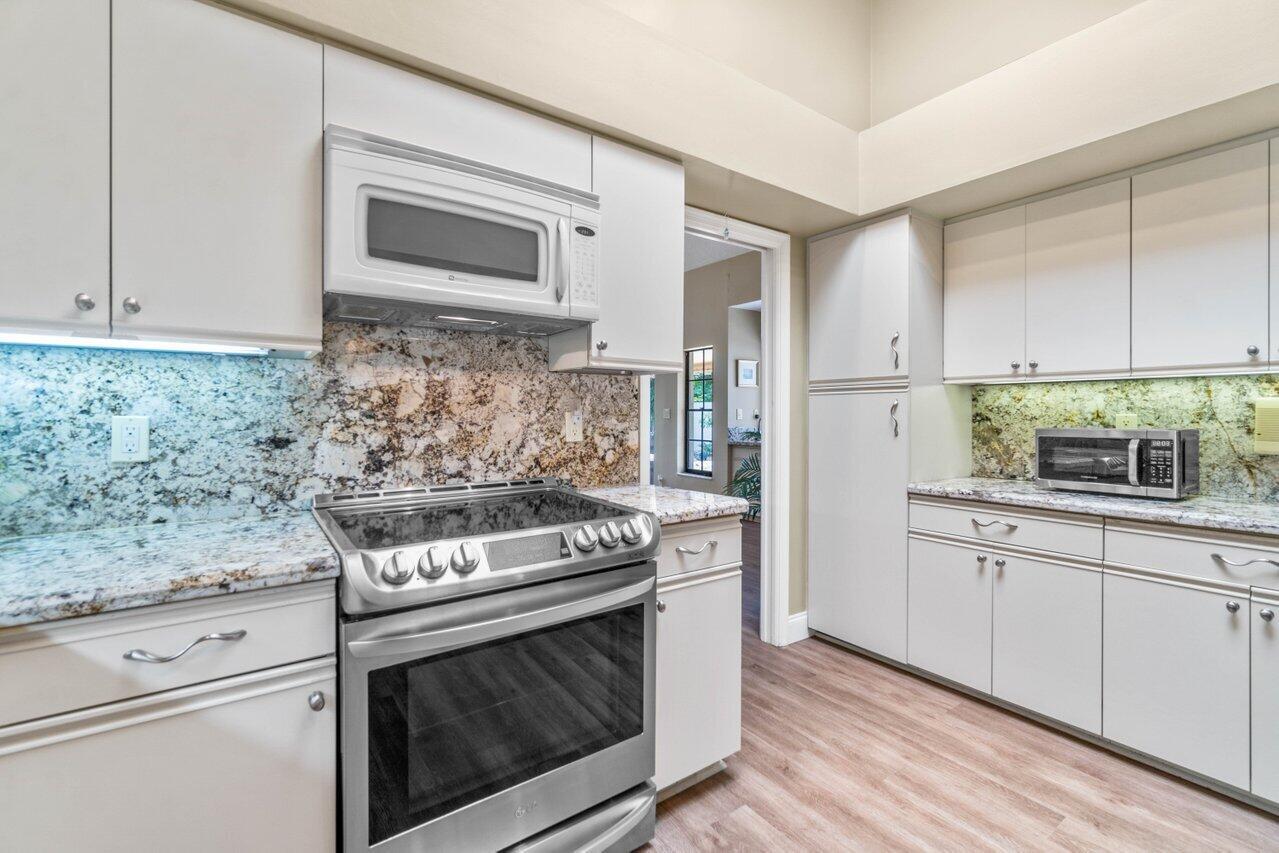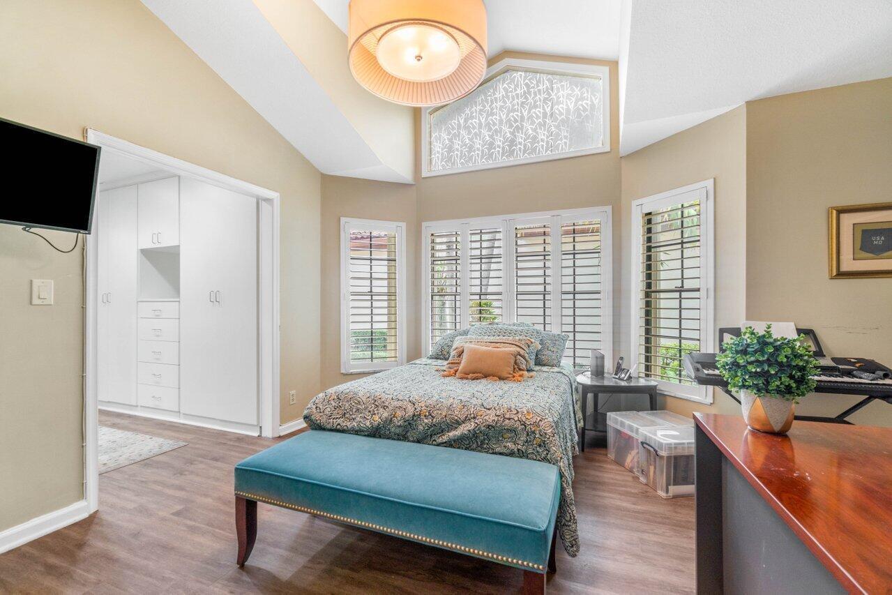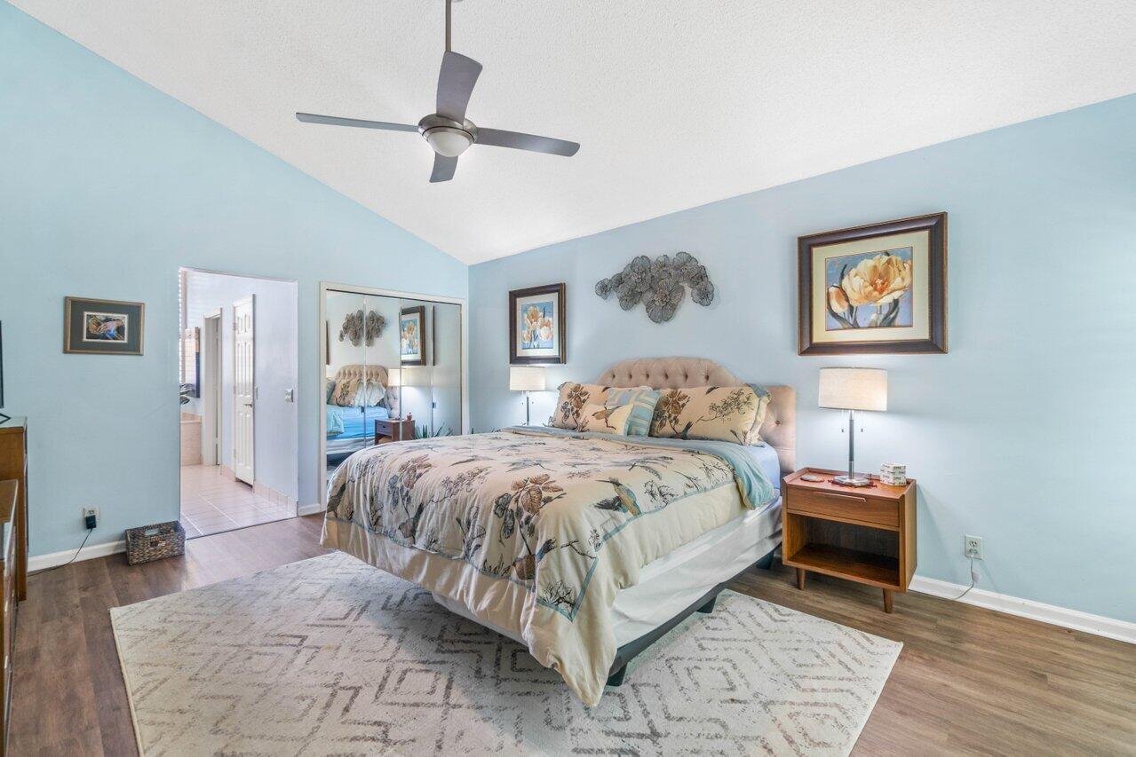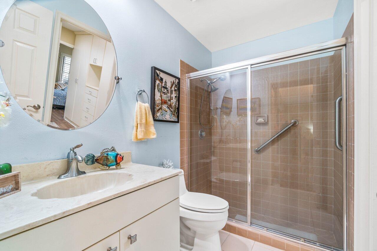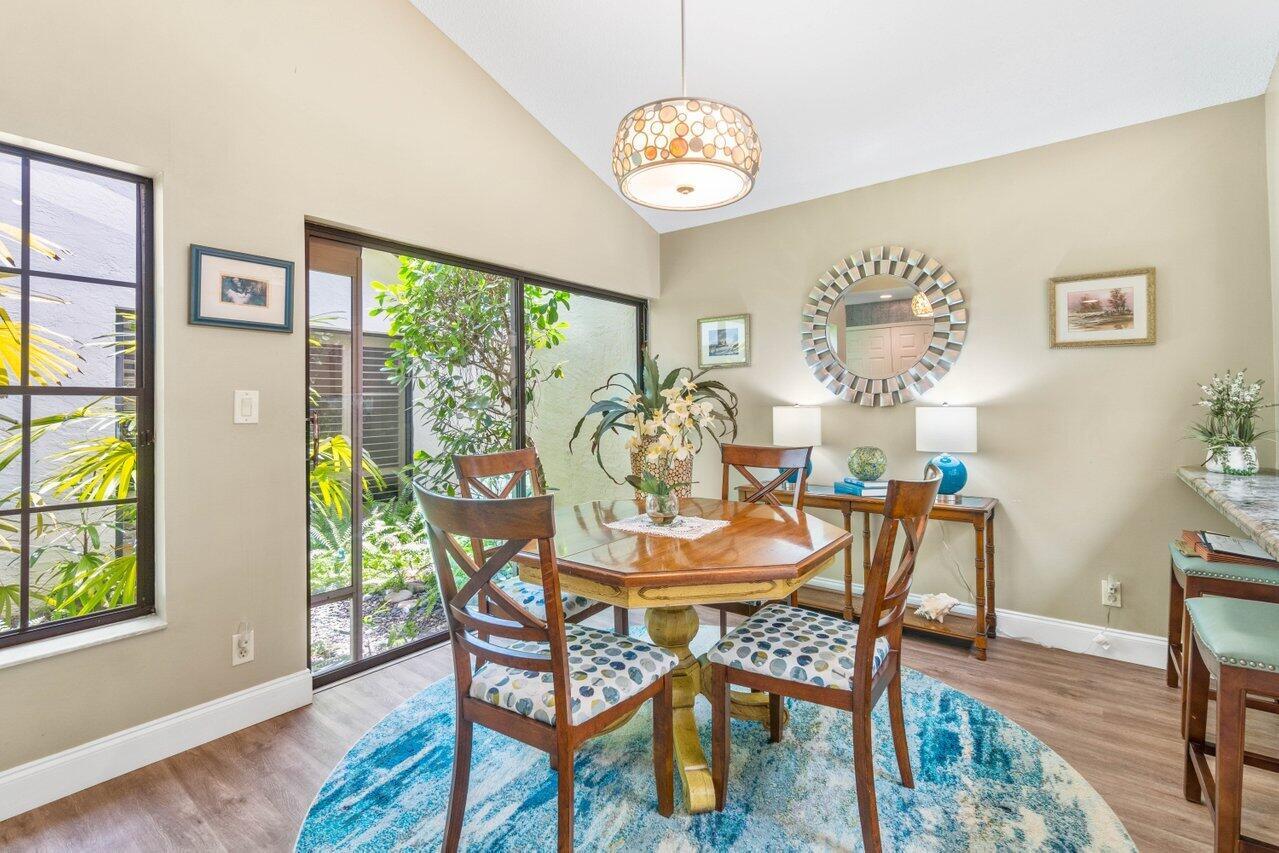 A must see! Beautiful lakefront Antigua model offers two bedrooms plus flexible den/office space. Tropical private oversized backyard oasis perfect for outdoor entertaining, dining alfresco or relaxing in your tropical waterfall jetted splash/plunge pool. Bright open floorplan with vaulted ceilings, fireplace & wet bar. Bright kitchen w/skylight, cream granite countertops and stainless appliances. Primary suite offers vaulted ceilings, views of tranquil atrium, walk in closet, spacious bath w/dual sinks, separate tub & shower. Generous guest en-suite. Oversized 2CG with additional storage.