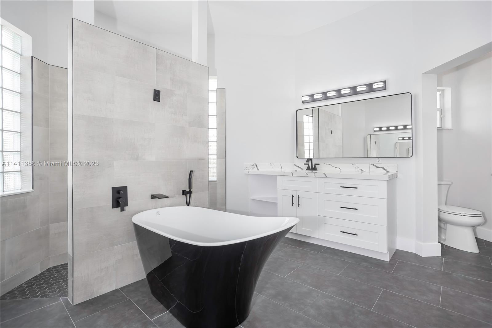 LOOK NO FURTHER! UPDATED, ONE STORY 5 BEDROOM 3 BATH HOME WITH A POOL ON THE LAKE! GREAT FLOW WITH PRIMARY & ONE BEDROOM SEPERATE FROM 3 OTHER ROOMS. LARGE FORMAL LIVING AND DINING WITH LARGE OPEN KITCHEN TO THE FAMILY ROOM. BRAND NEW KITCHEN FEATURING NEW STAINLESS STEAL APPLIANCES, NEW MODERN SOFT CLOSING CABINETRY, GORGEOUS QUARTZ COUNTER TOPS WITH WATERFALL FEAUTURE OFFERS PLENTY OF COOKING SPACE AND ENTERTAINMENT! FRESHLY PAINTED & NEW LIGHT FIXTURES. ALL NEW BATHROOMS, PRIMARY FEAURUES TWO SINKS AND VANITY AREA, SOAKER TUB, AND LARGE NEW SHOWER. NEW ELECTRICAL PANEL. ALL NEW LAMINATE FLOORING IN ALL BEDROOMS. 2019- ROOF, A/C, AND EXTERIOR PAINT. ALL ACCORDIAN SHUTTERS. GATED COMMUNITY OF SUNSET POINT IN SILVER LAKES. CIRCLE DRIVE WITH WIDE 2-CAR GARAGE.
